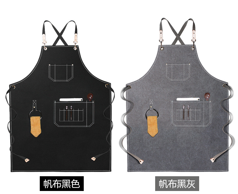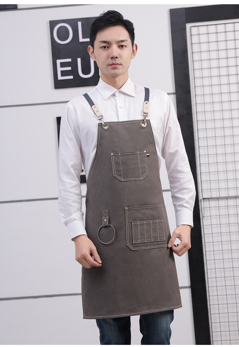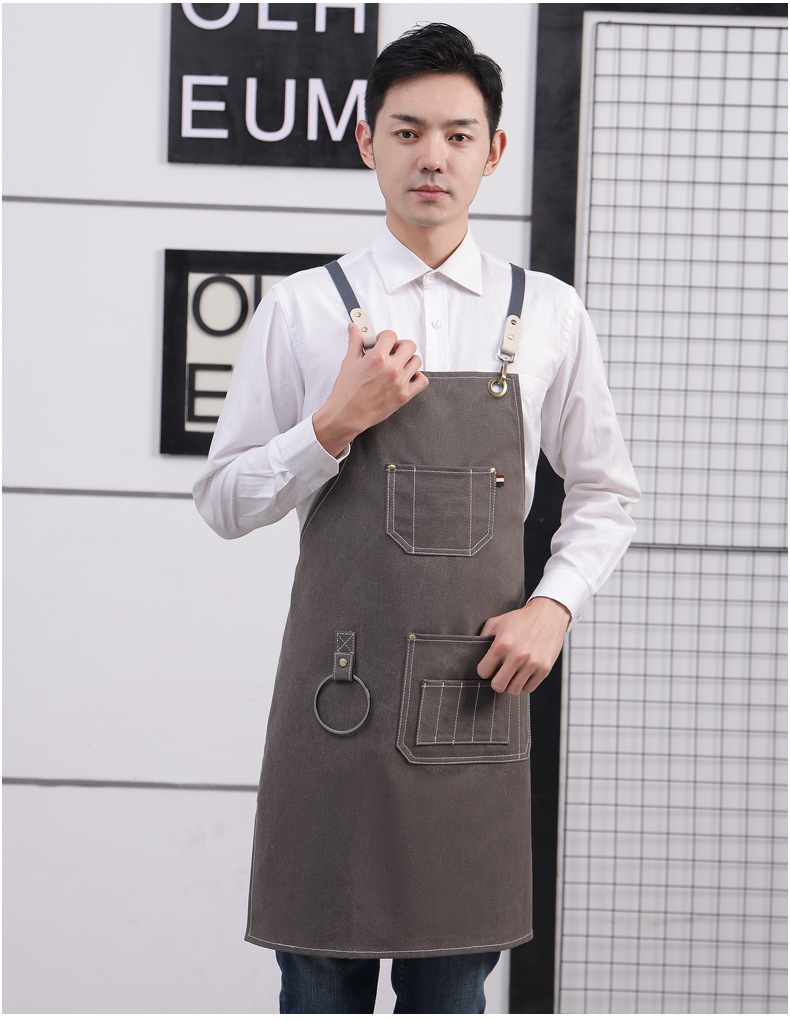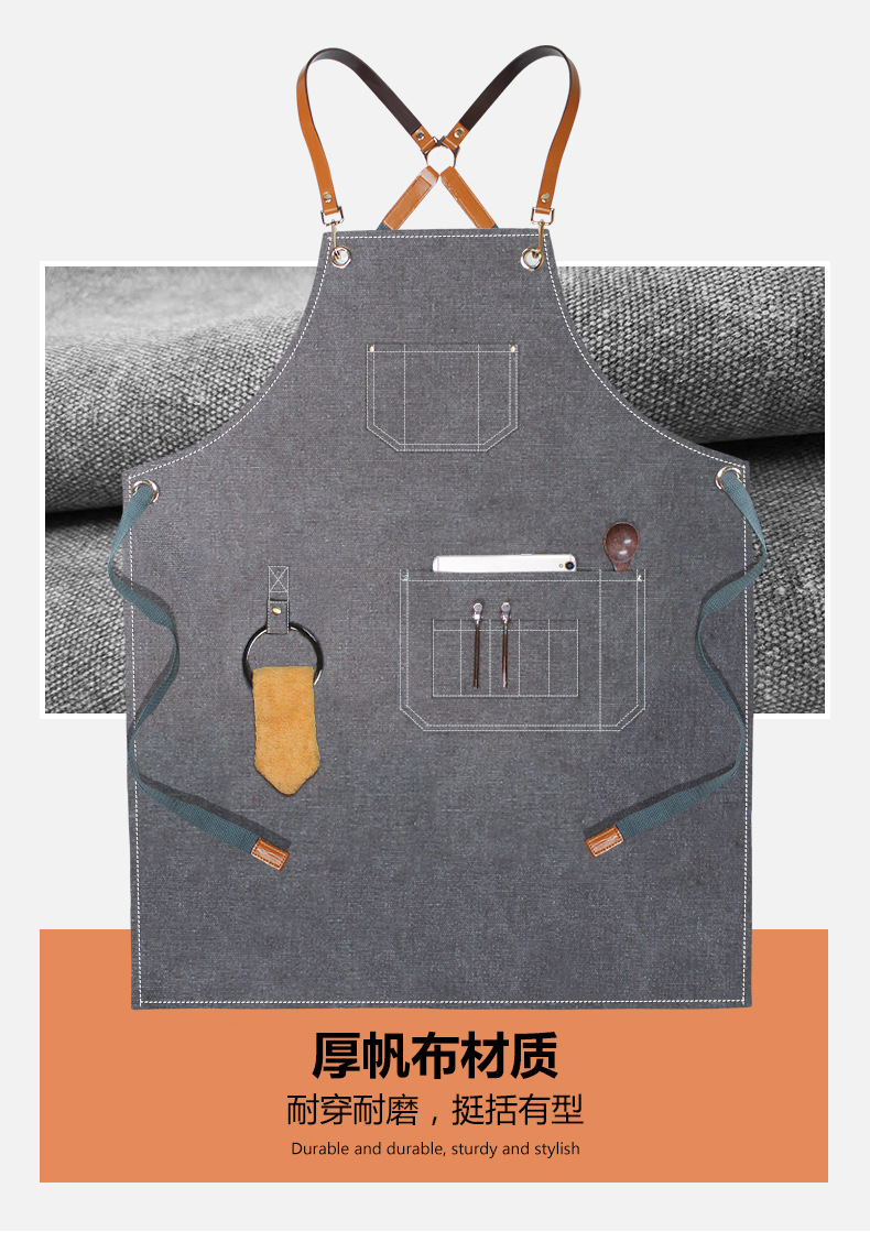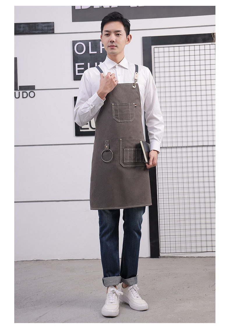 Comercio exterior de lona gruesa delantal logotipo personalizado moda coreana barista ropa de trabajo peluquero delantal fábrica al por mayor