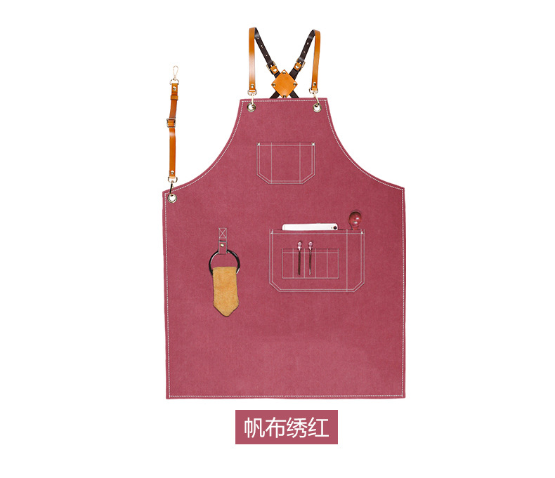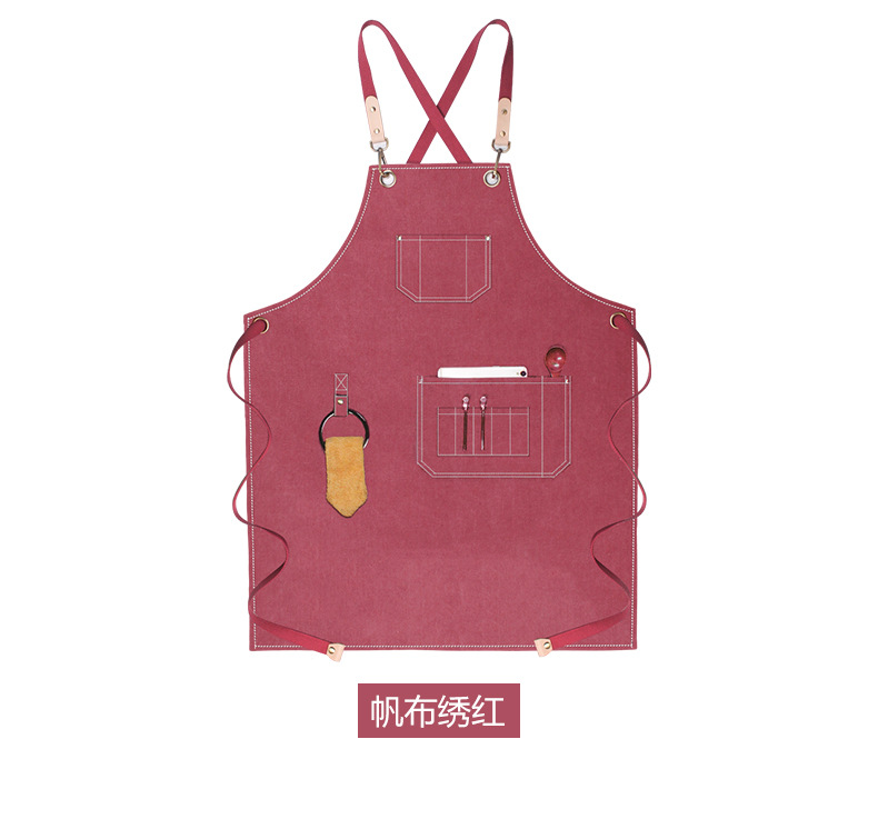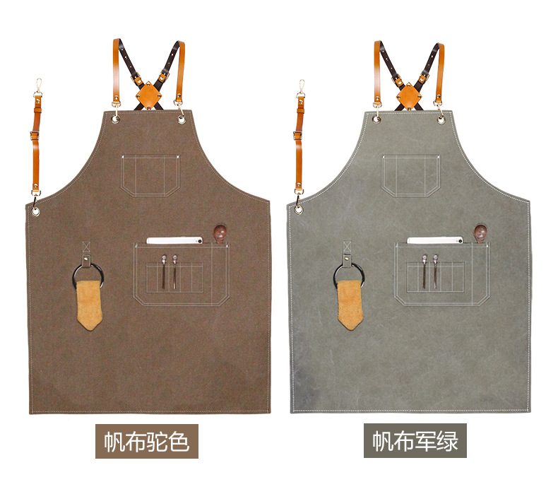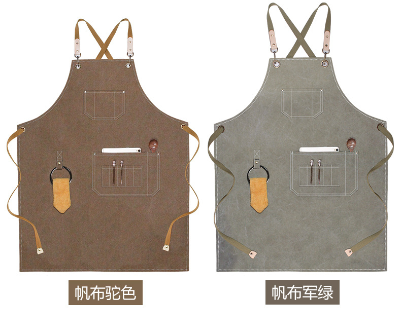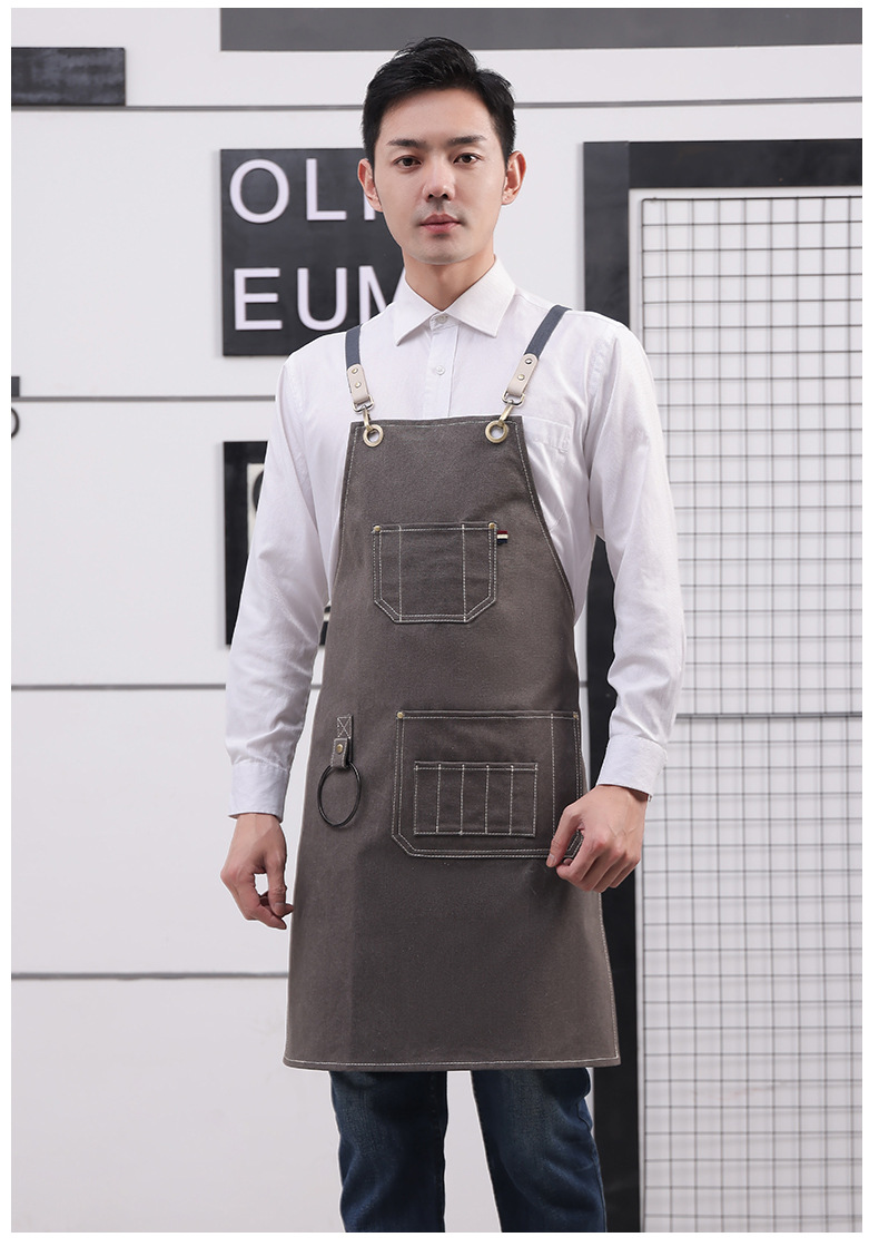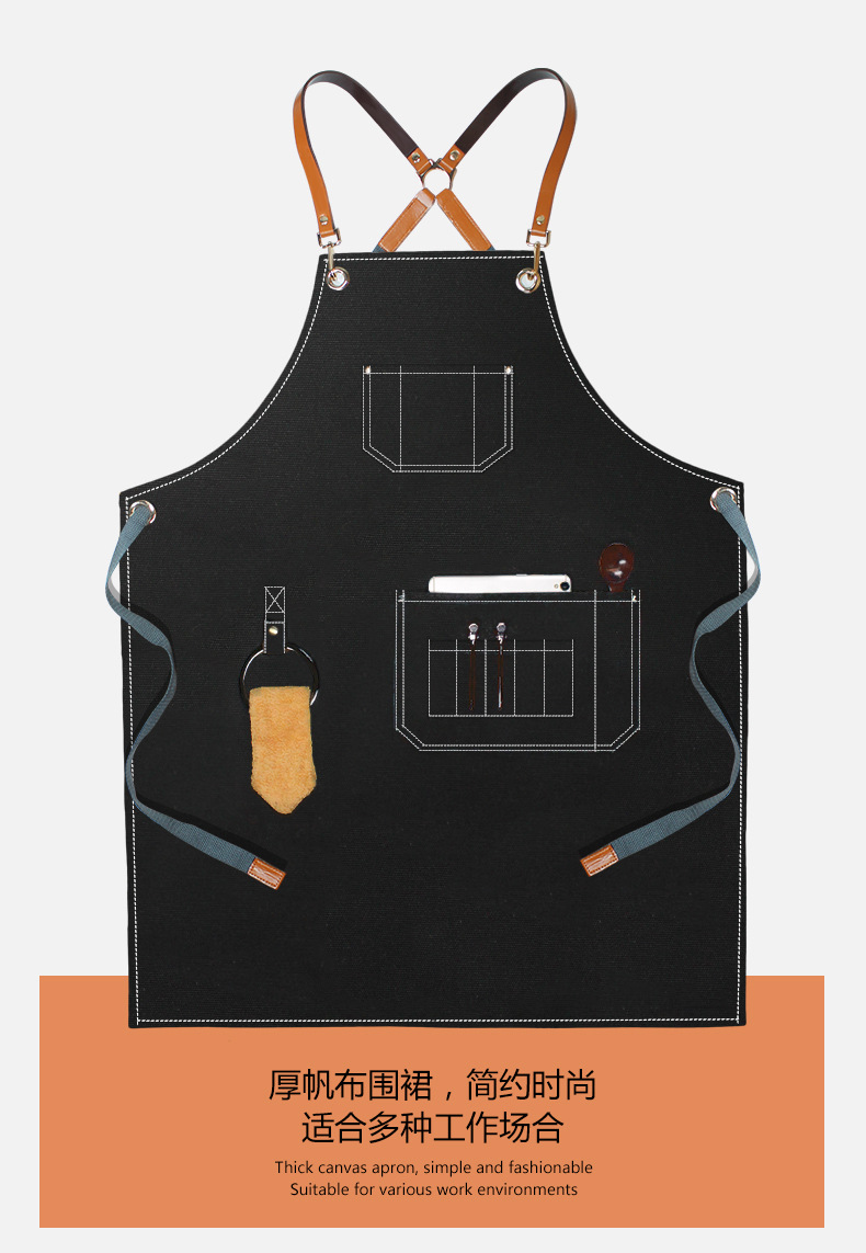 Comercio exterior de lona gruesa delantal logotipo personalizado moda coreana barista ropa de trabajo peluquero delantal fábrica al por mayor