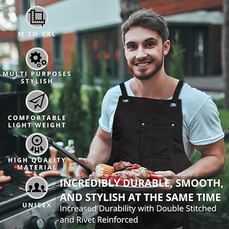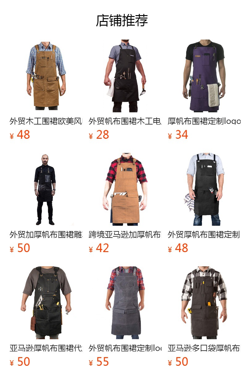 Amazon estilo europeo y americano de lona gruesa delantal logotipo personalizado barbacoa hornear carpintería trajes delantal fábrica al por mayor