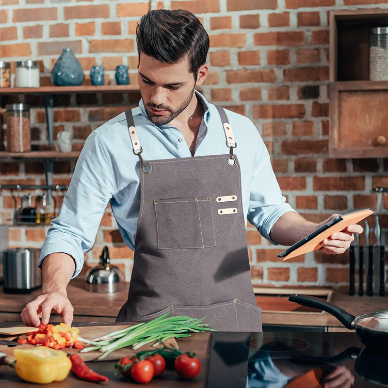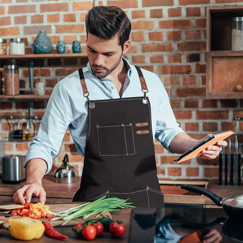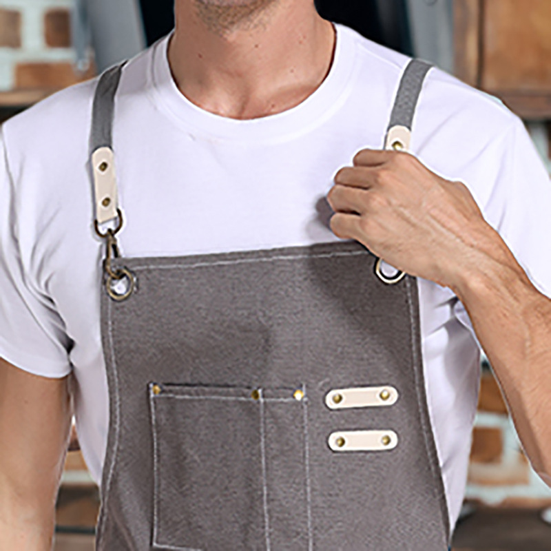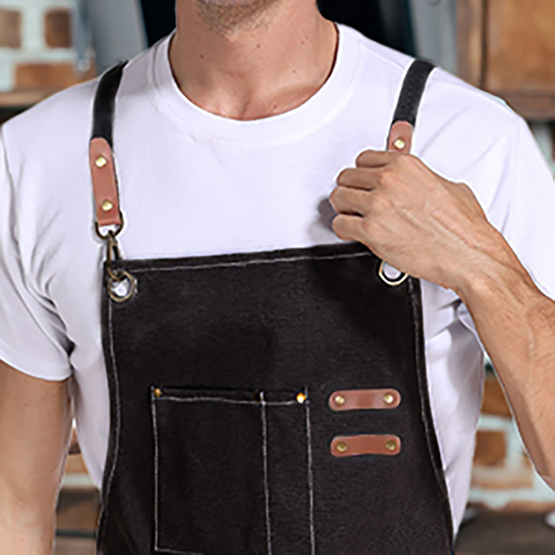 Cross-border Amazon lienzo grueso delantal logotipo personalizado leche tienda de té cafetería ropa de trabajo arte estudiante delantal al por mayor