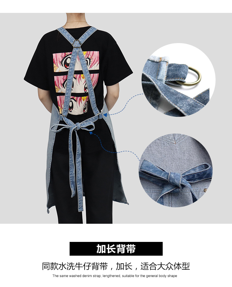 Amazon transfronterizo de mezclilla lavada delantal de algodón puro Restaurante Camarero peluquería ropa de trabajo cocina delantal doméstico