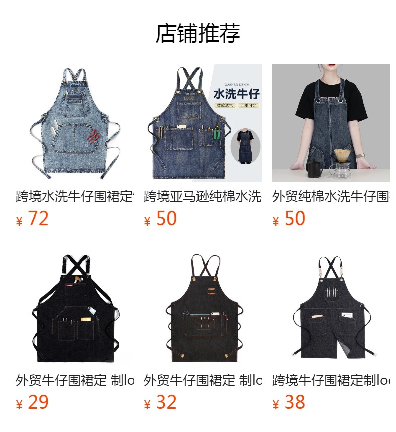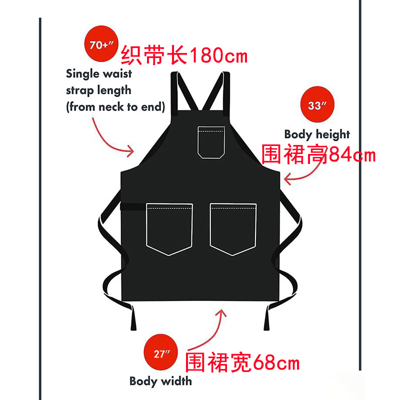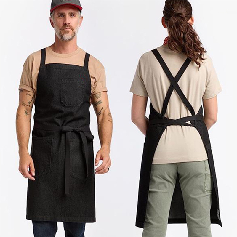 Cross-border Amazon lavado Denim delantal moderno simple correa cruzada Barber guardapolvos barista delantal