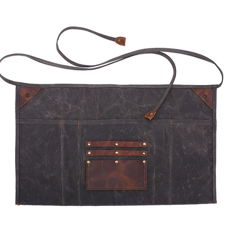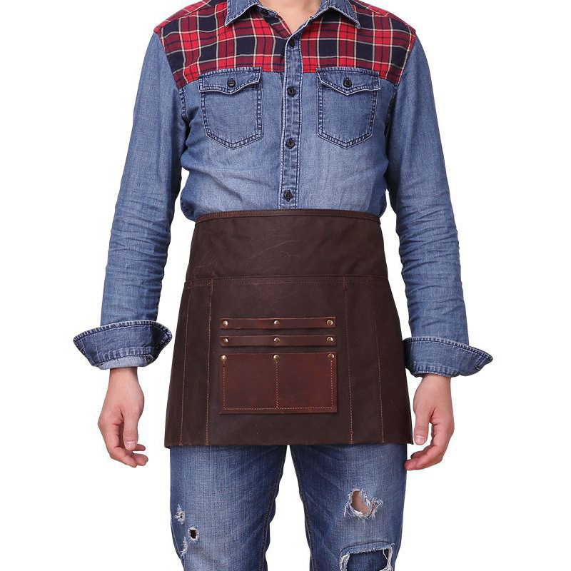 Amazon transfronterizo de lona encerada delantal de la vendimia de cuero de LA PU bolsillo electricista carpintería ropa de trabajo delantal impermeable al por mayor