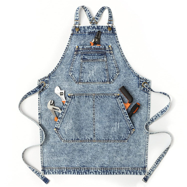 Delantal de mezclilla lavado transfronterizo logotipo personalizado Barber pintura ropa de trabajo electricista carpintería delantal fábrica al por mayor