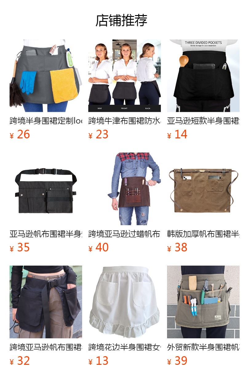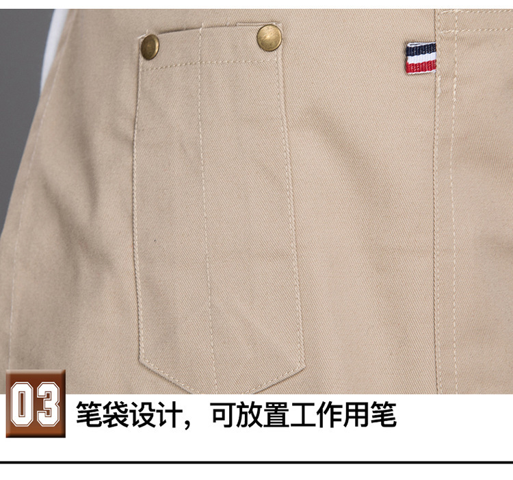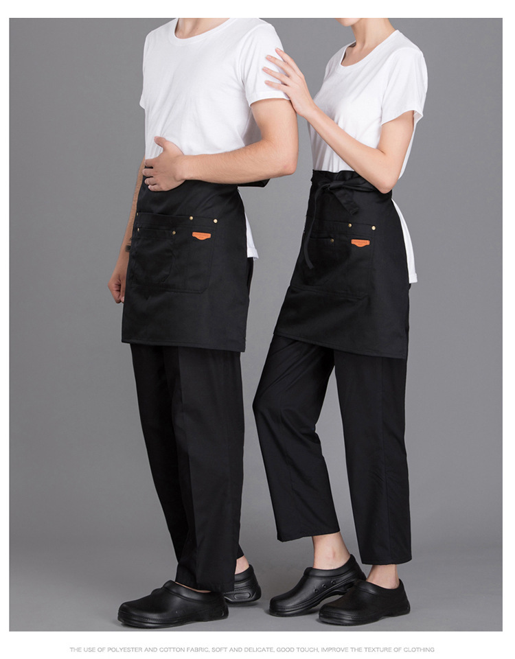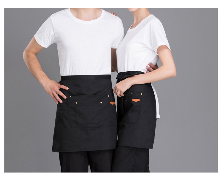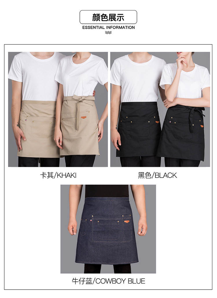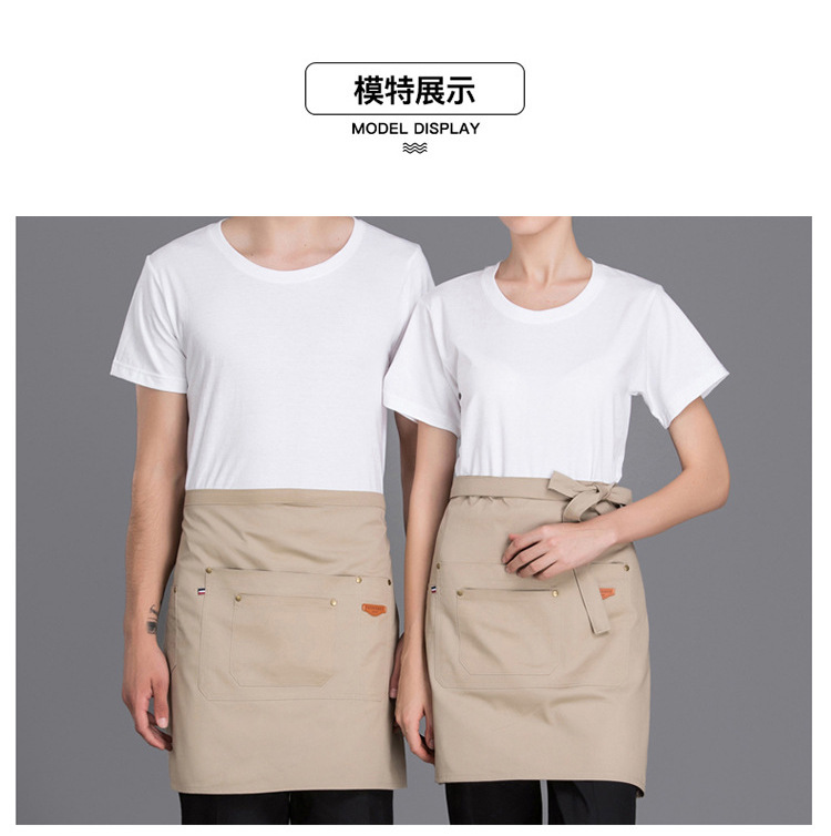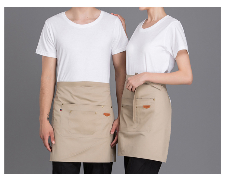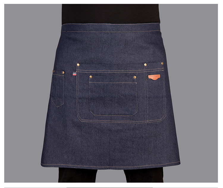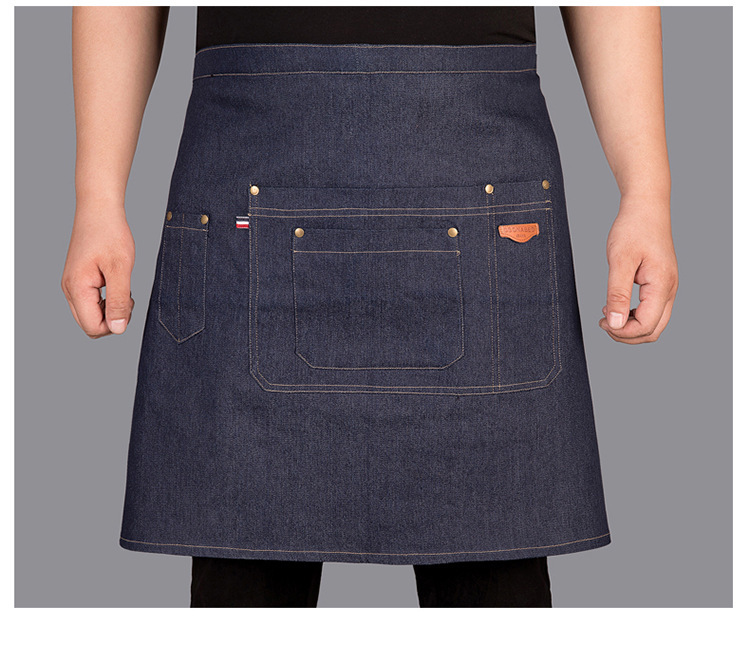 Delantal corto de algodón Amazon para mujer, estilo moderno, ropa de trabajo para panadería/cafetería, delantal de mezclilla para cocina casera