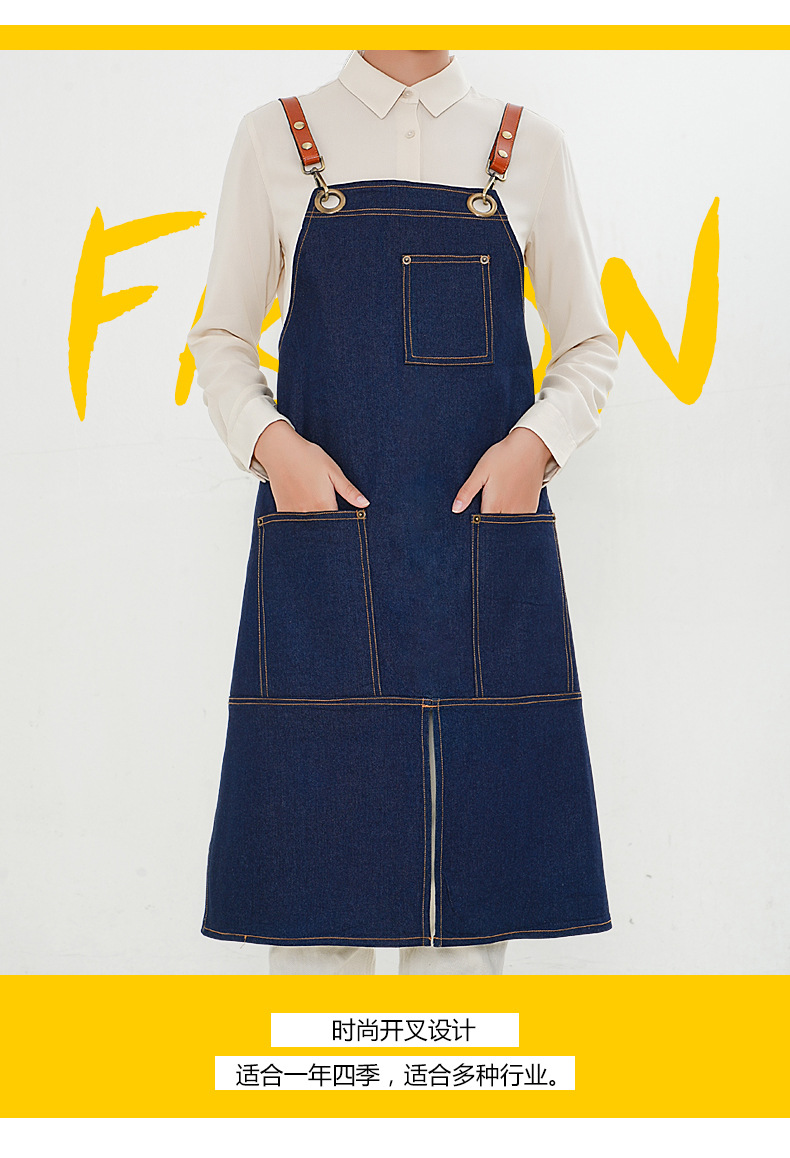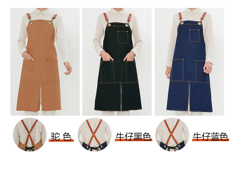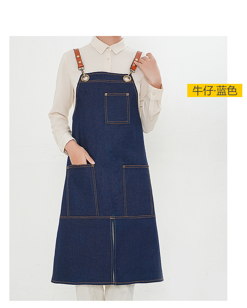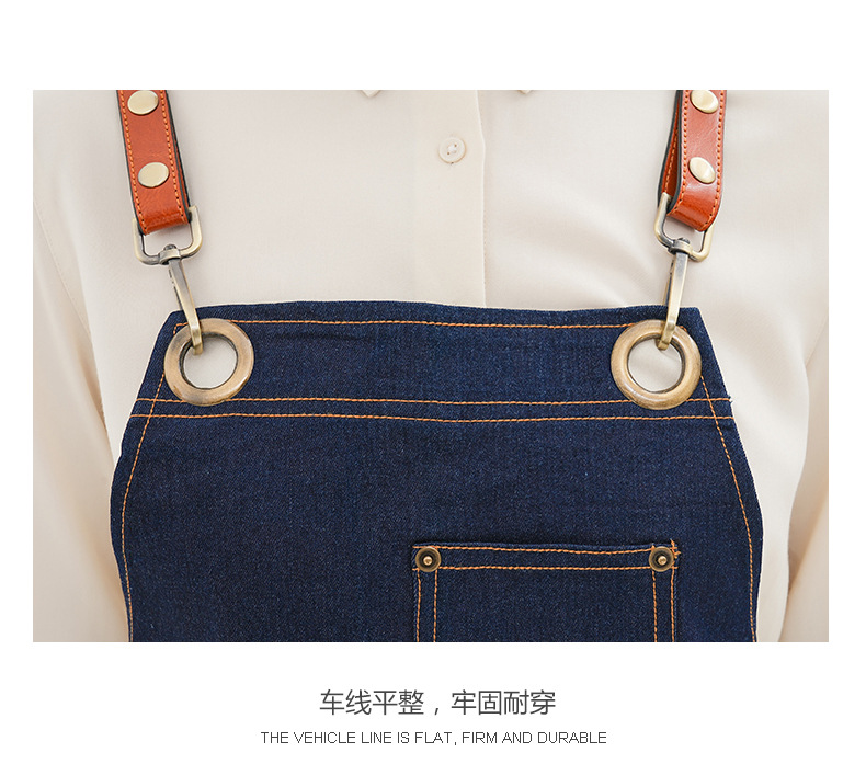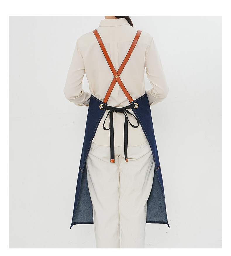 Delantal de mezclilla nuevo transfronterizo con correas ajustables, delantal de jardinería hecho a mano, ropa de trabajo para barista, delantal de cocina para el hogar