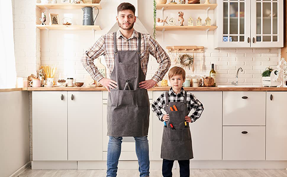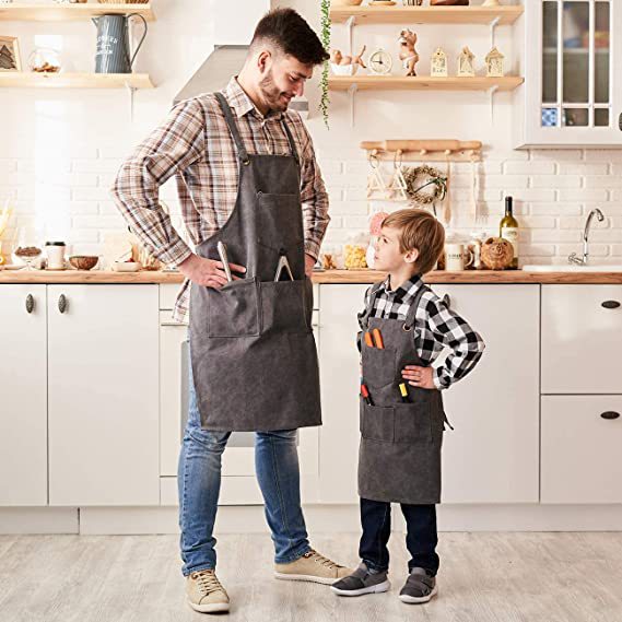 Amazon nuevo delantal de lona engrosada ropa de trabajo de peluquería femenina padre-niño arte caligrafía carpintería delantal al por mayor