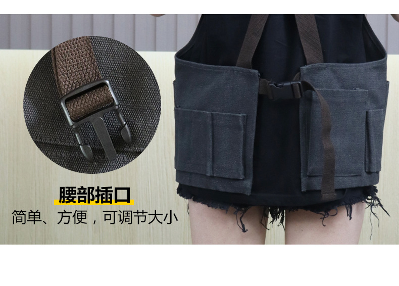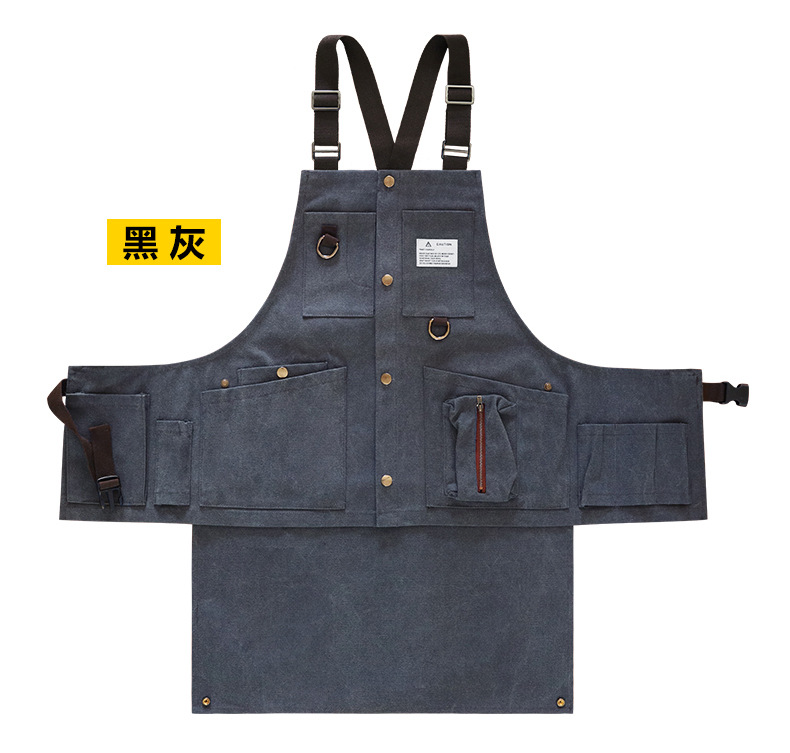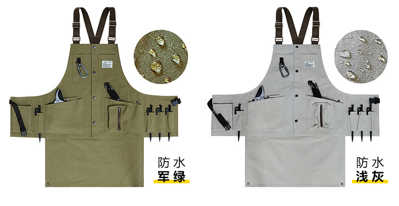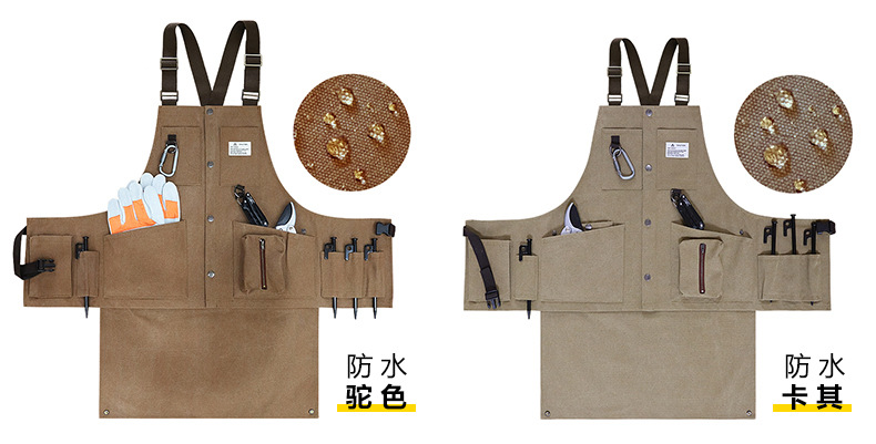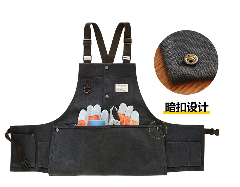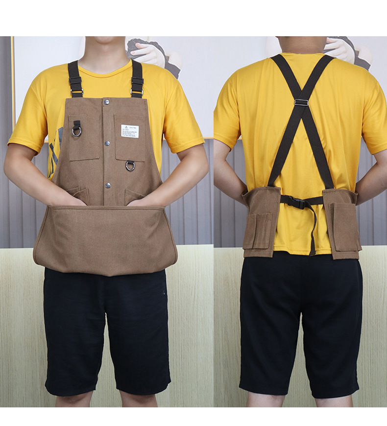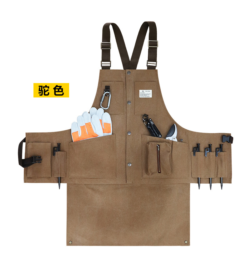Cruz-frontera engrosada delantal de lona resistente al desgaste-Herramientas de Bolsillo grande ropa de trabajo de madera multi-funcional delantal por mayor