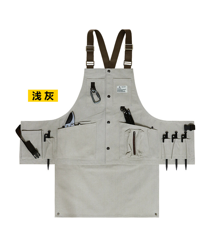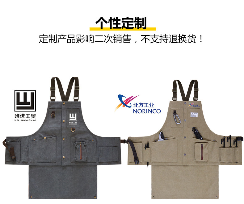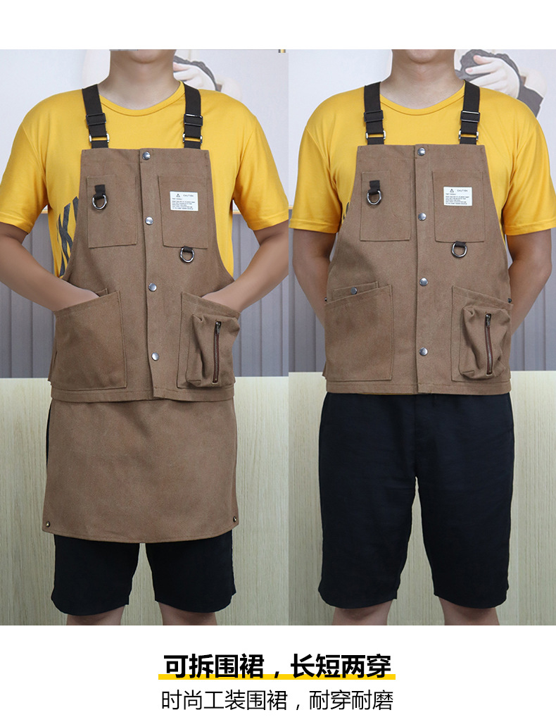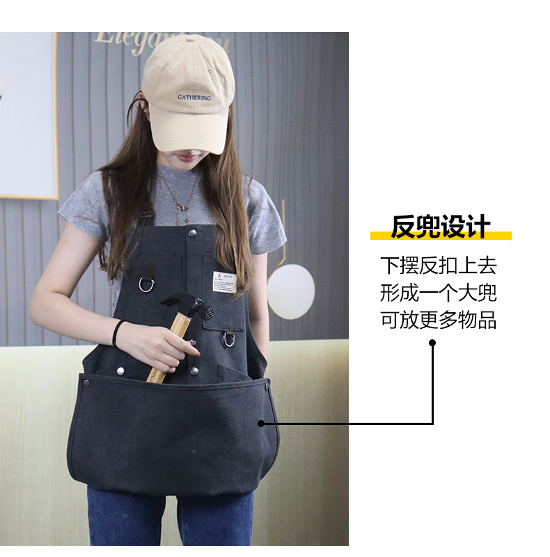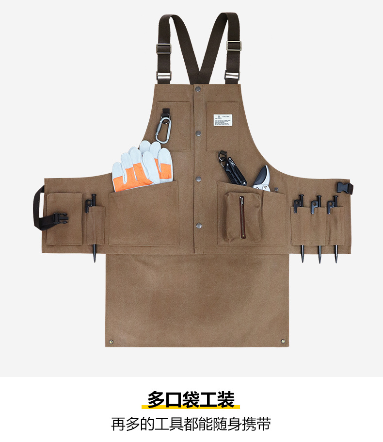 Cruz-frontera engrosada delantal de lona resistente al desgaste-Herramientas de Bolsillo grande ropa de trabajo de madera multi-funcional delantal por mayor