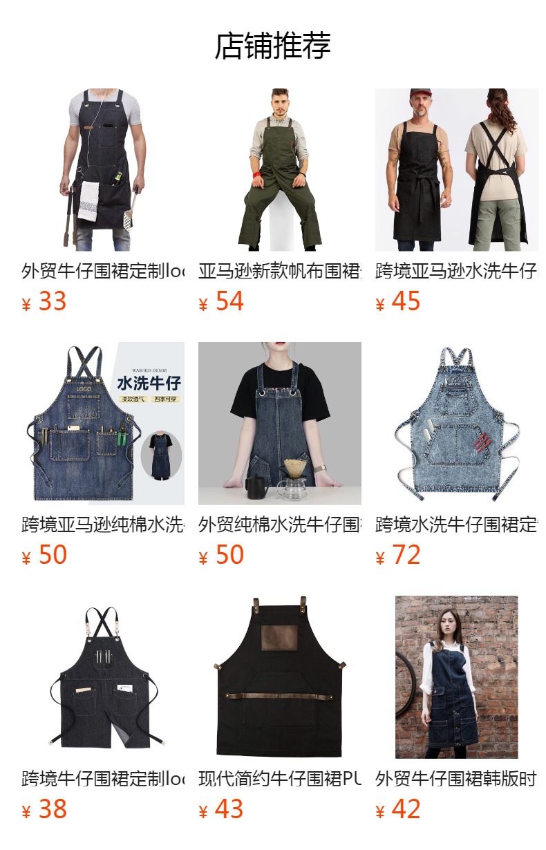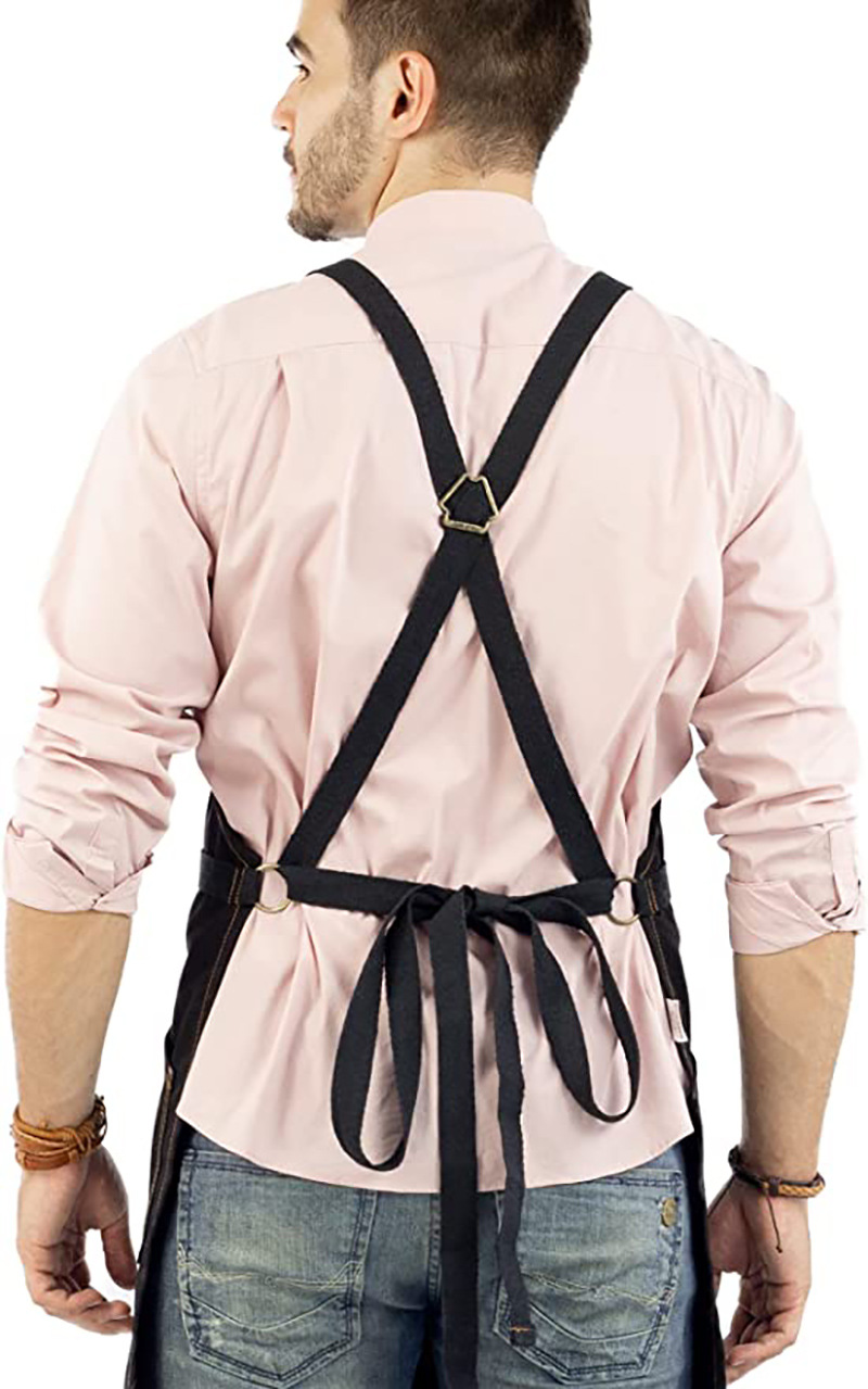 Amazon estilo coreano Denim delantal logotipo personalizado barista hornear leche tienda de té manicura ropa de trabajo delantal de lona