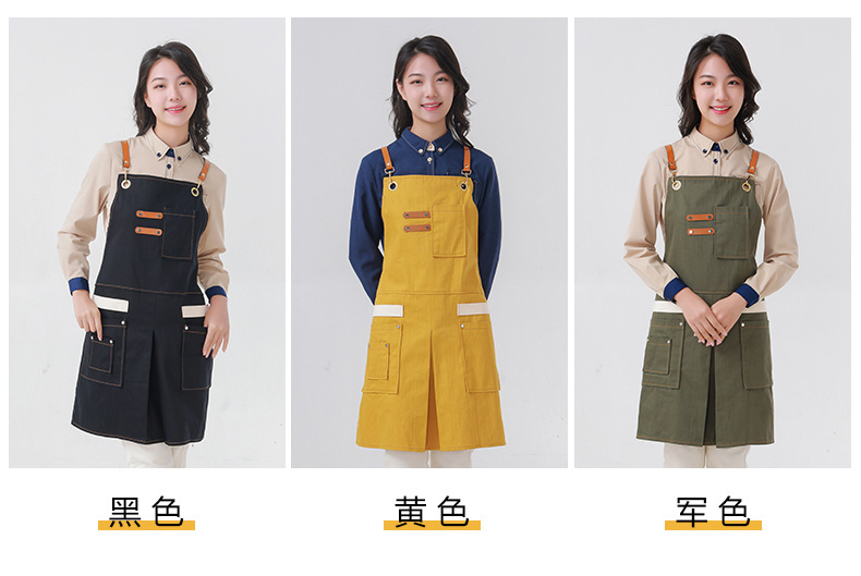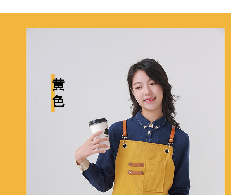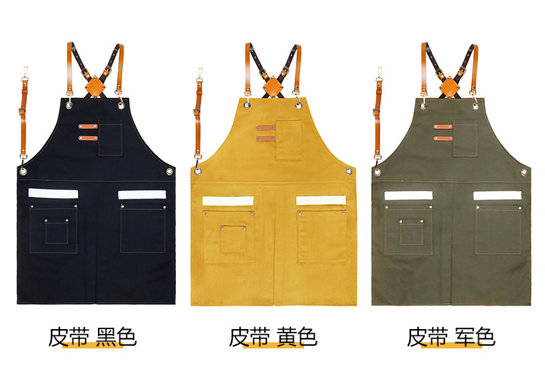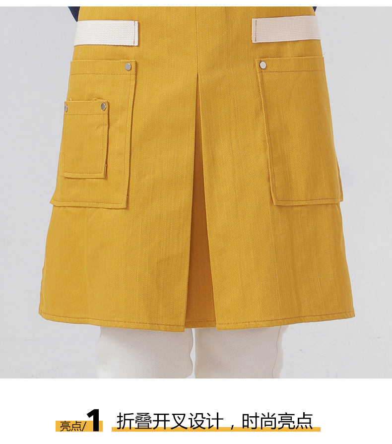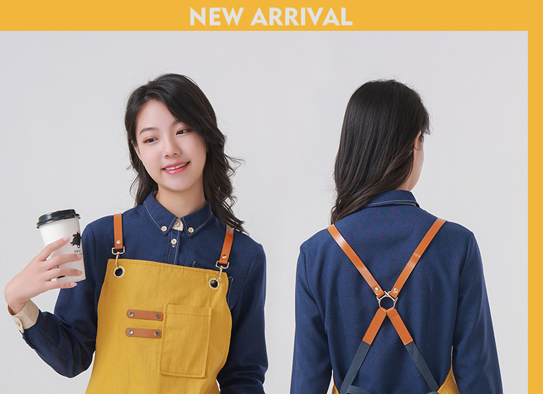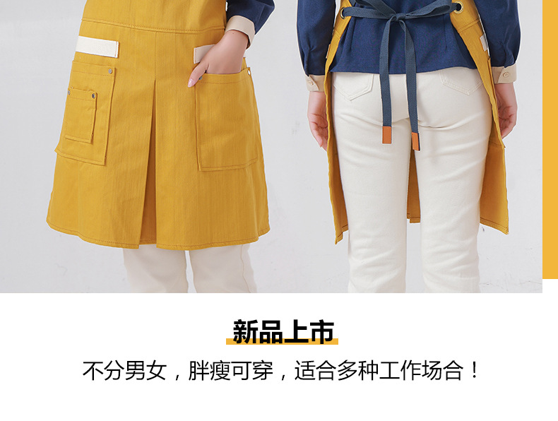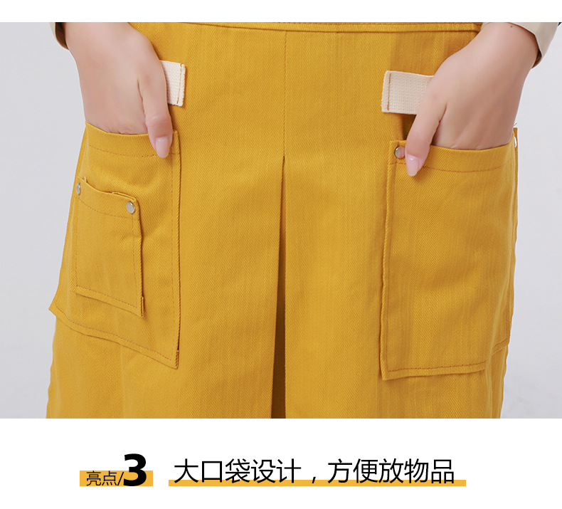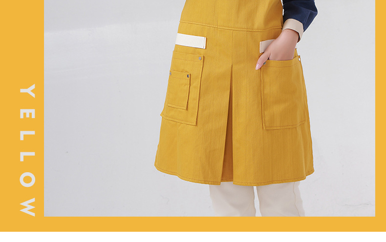 Delantal transfronterizo de algodón de sarga de Amazon, delantal de trabajo amarillo suave con abertura plegable y logotipo personalizado, venta al por mayor