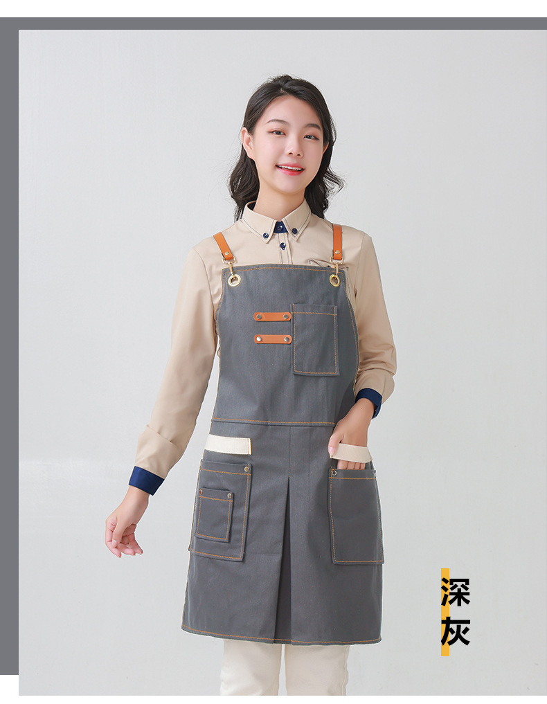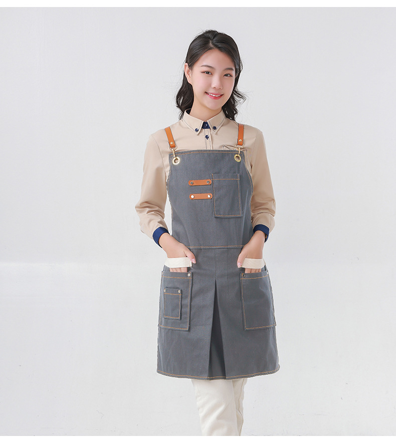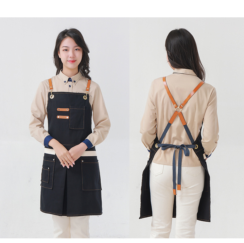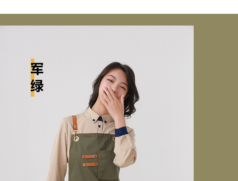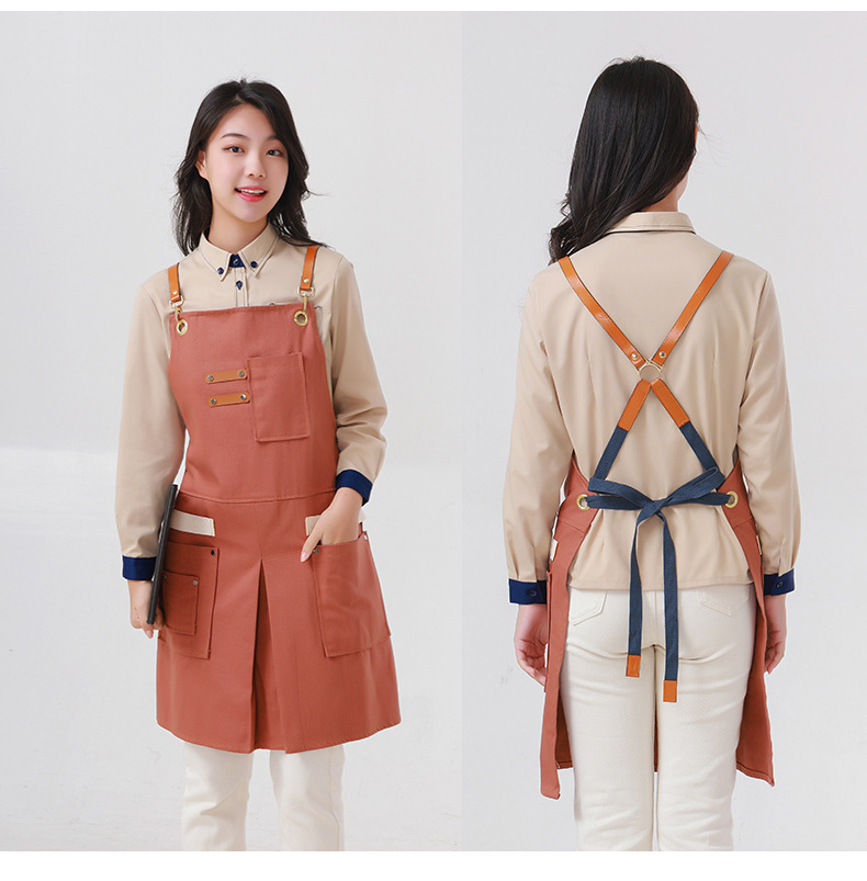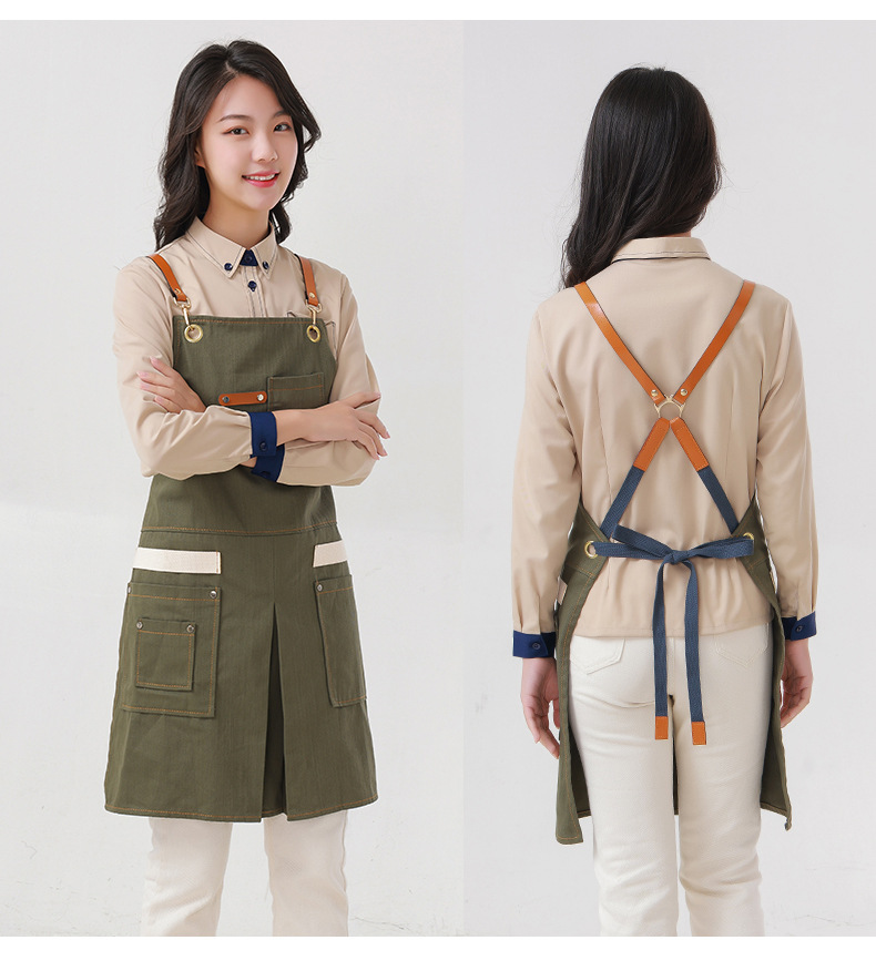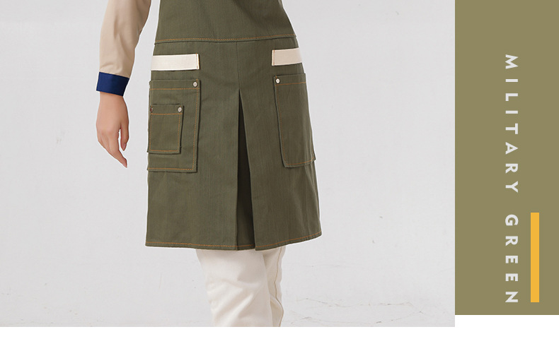 Delantal transfronterizo de algodón de sarga de Amazon, delantal de trabajo amarillo suave con abertura plegable y logotipo personalizado, venta al por mayor