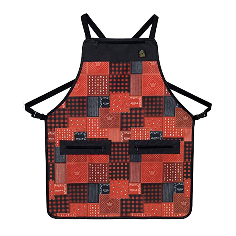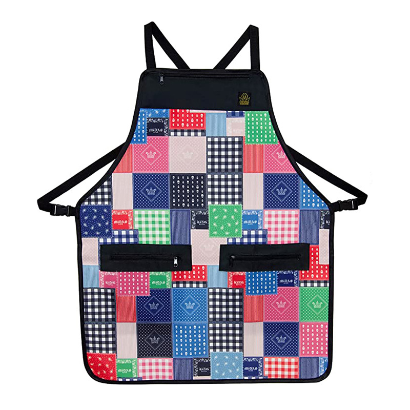 Lienzo delantal patrón de impresión multi-color opcional cremallera gran bolsillo almacenamiento carpintería multifuncional delantal al por mayor