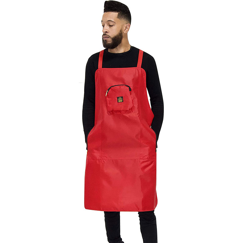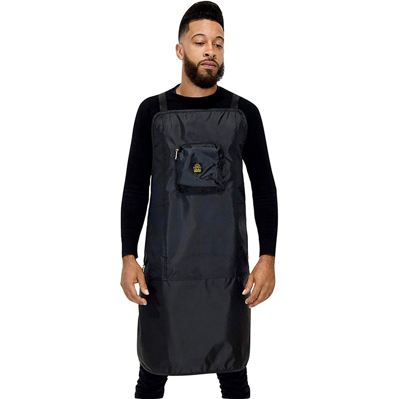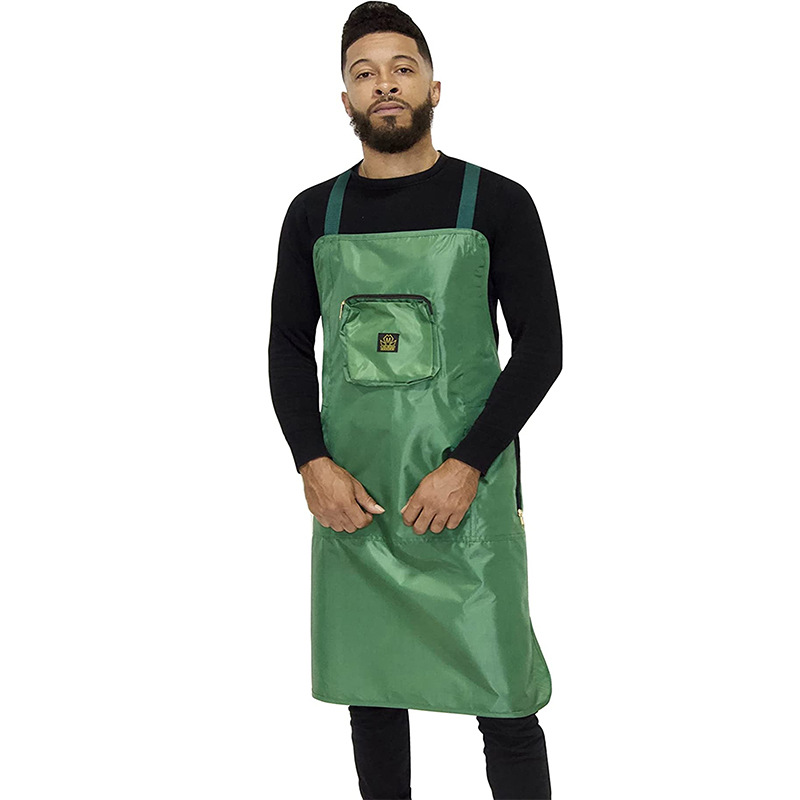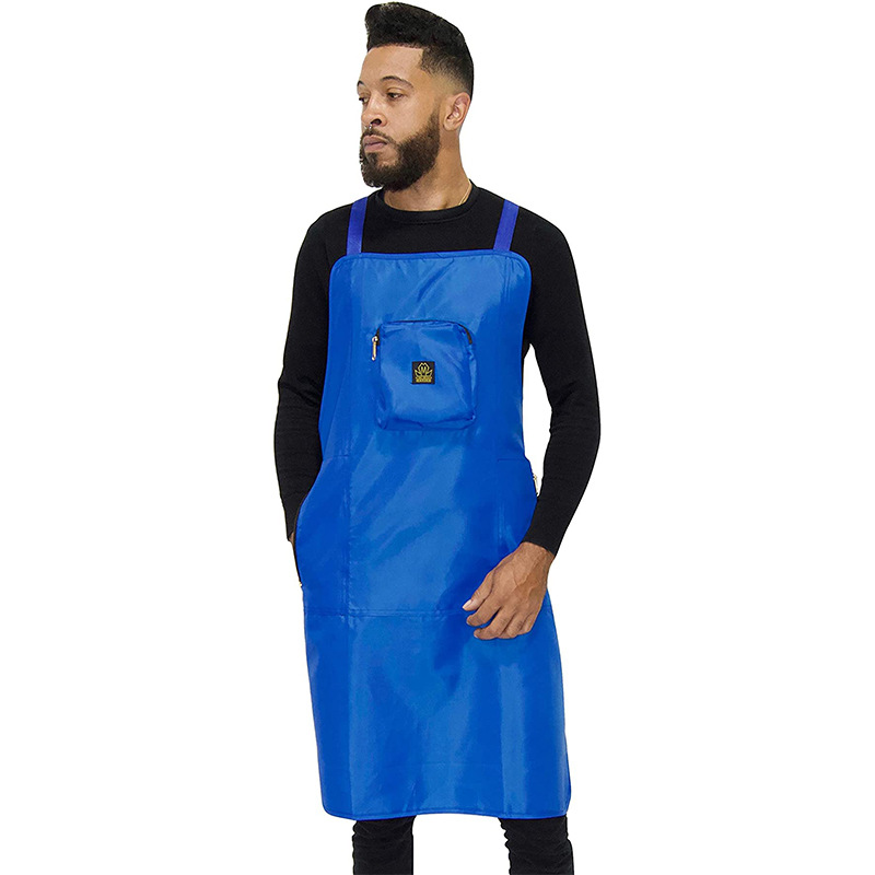 Delantal de tela Oxford transfronterizo, estilo con cremallera impermeable, bolsillos grandes, tirantes cruzados, delantal para pintura y barbería, venta al por mayor del fabricante