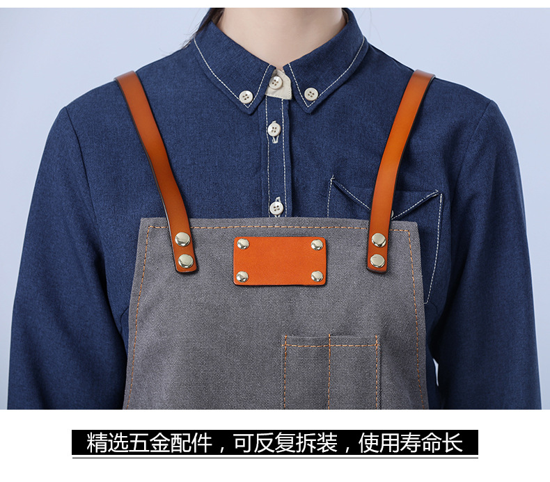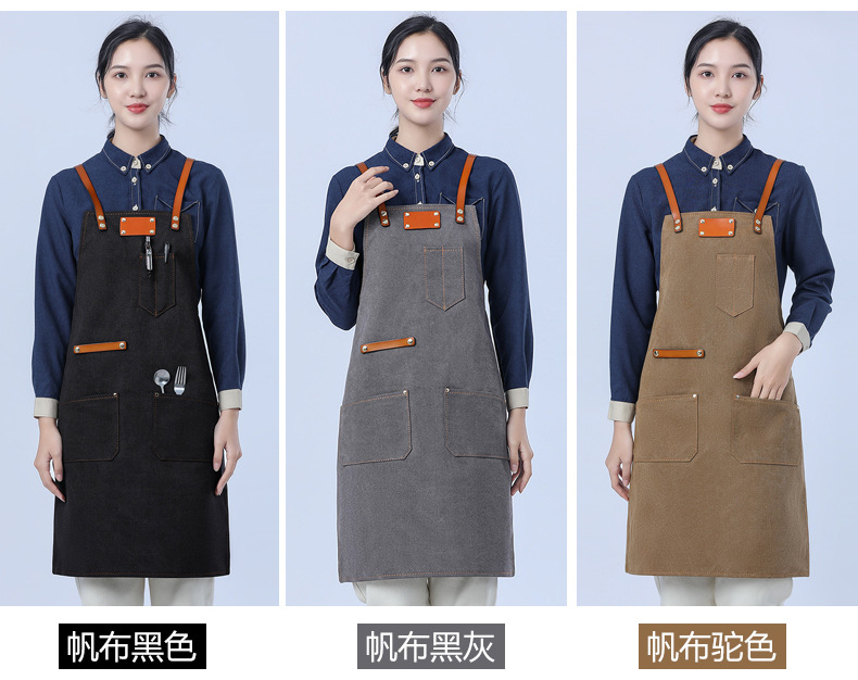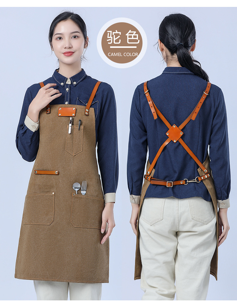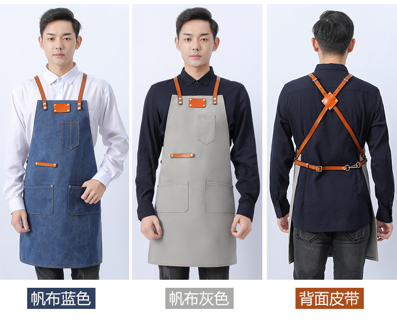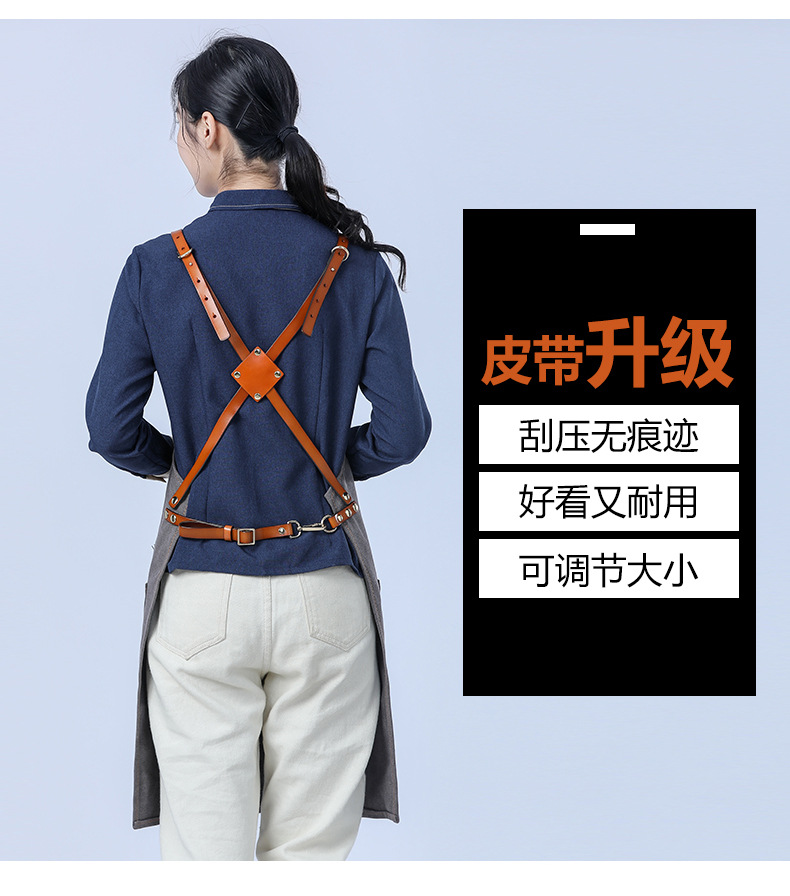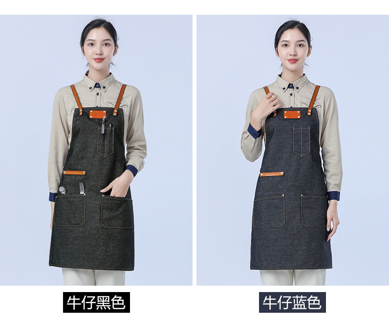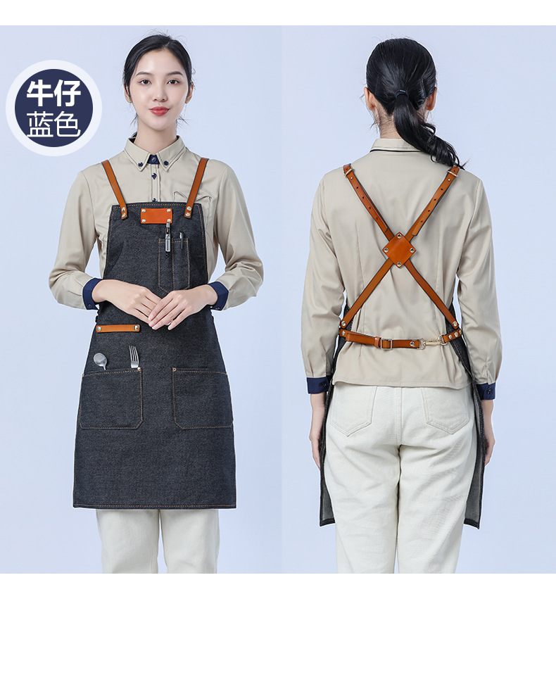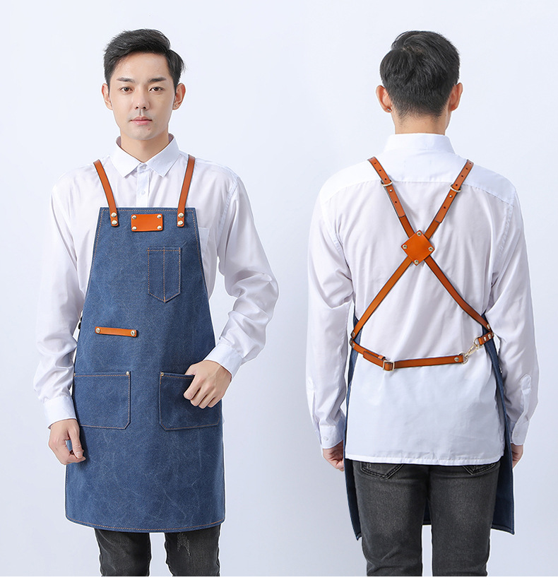 Delantal de lona gruesa estilo coreano nuevo suave pu cuero Cruz Correa barista ropa de trabajo Denim delantal al por mayor