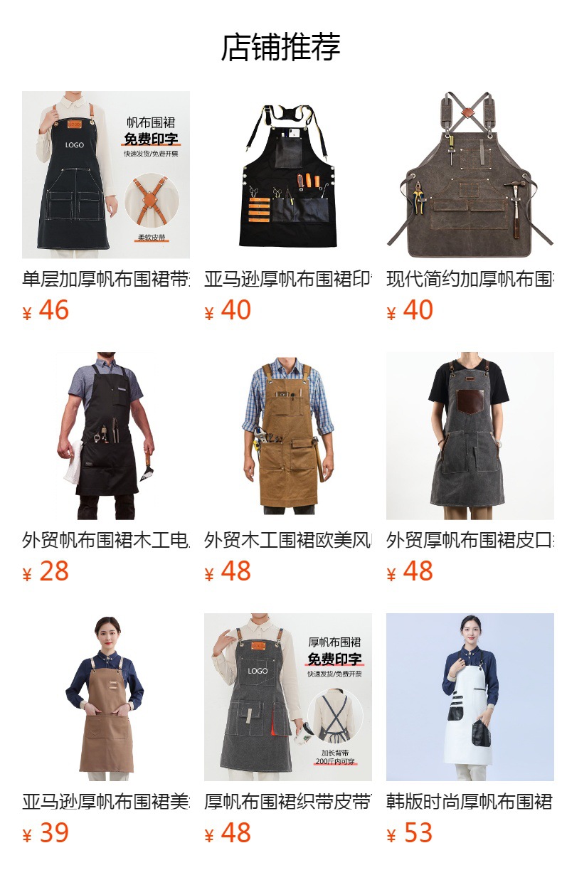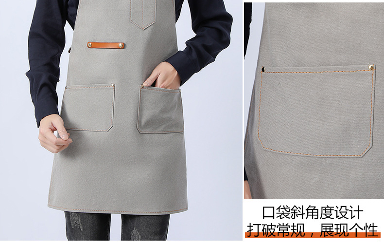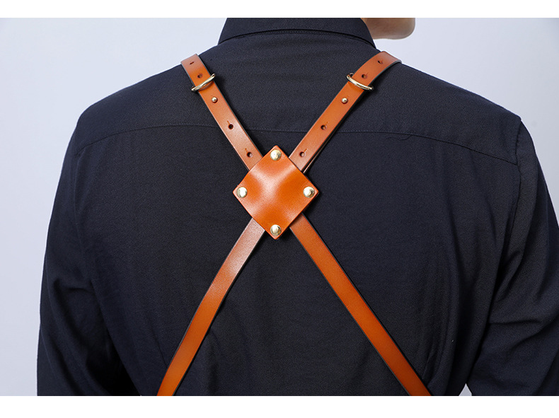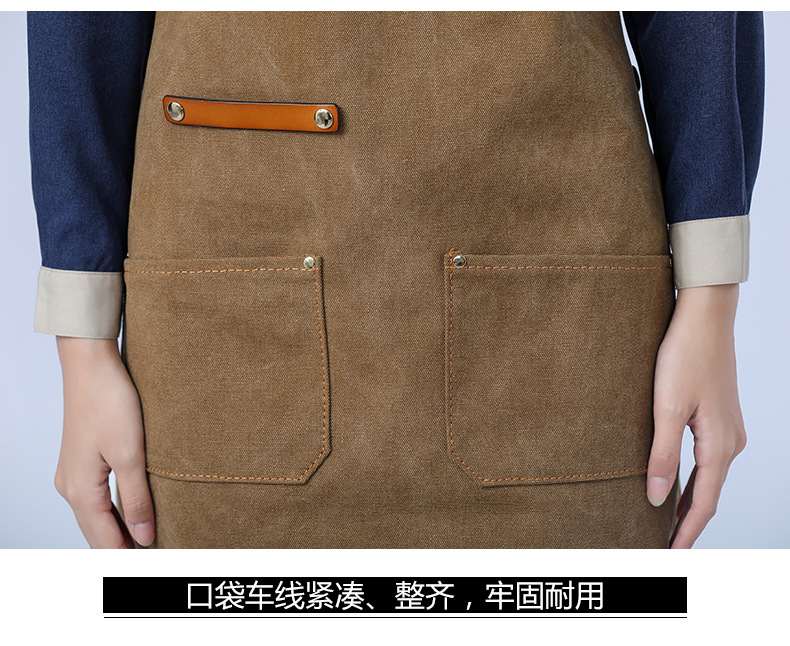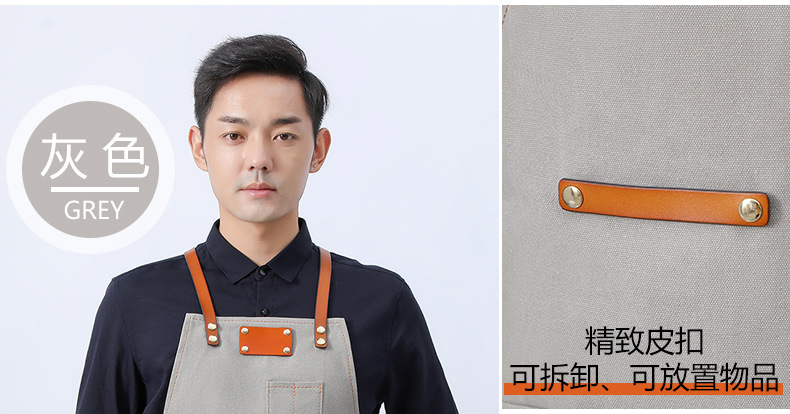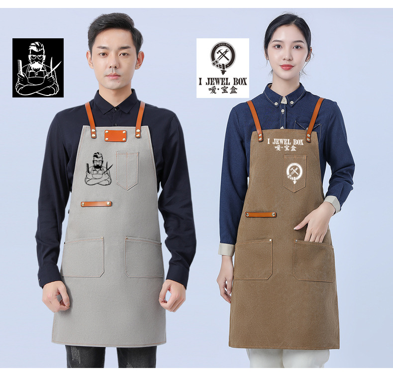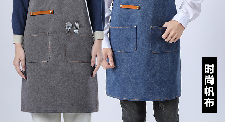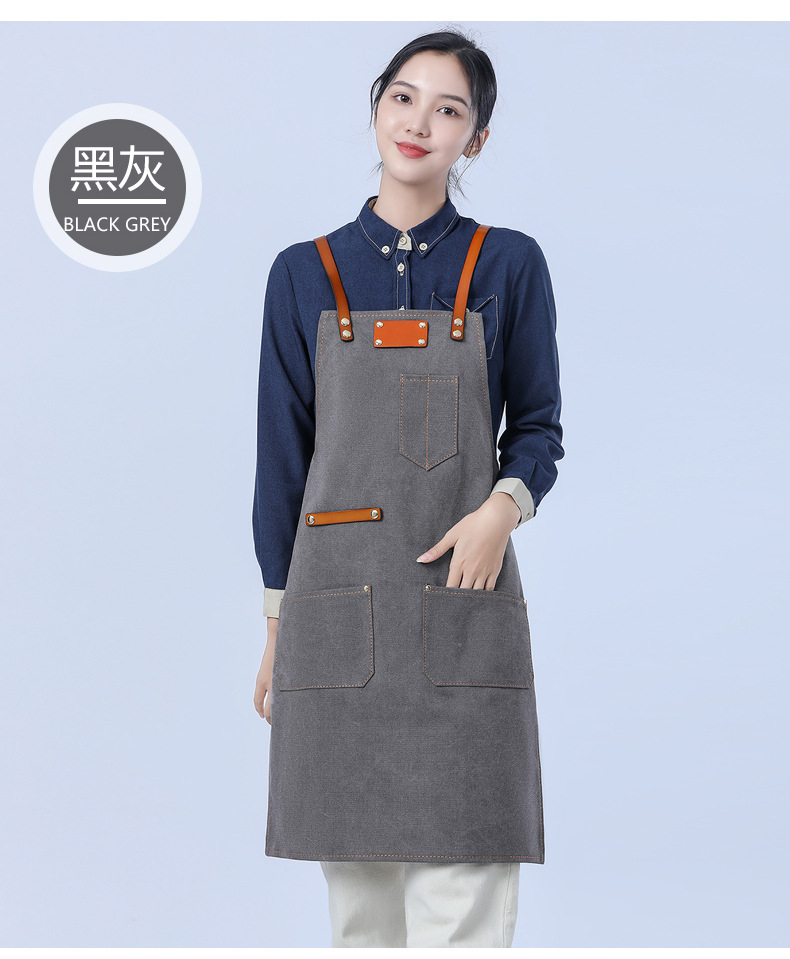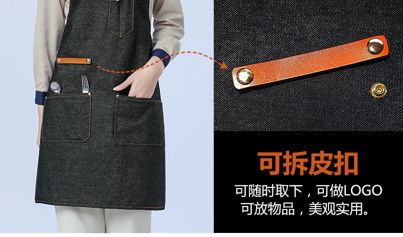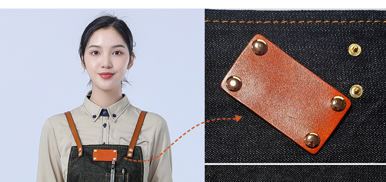 Delantal de lona gruesa estilo coreano nuevo suave pu cuero Cruz Correa barista ropa de trabajo Denim delantal al por mayor