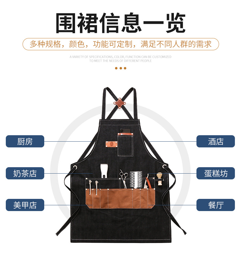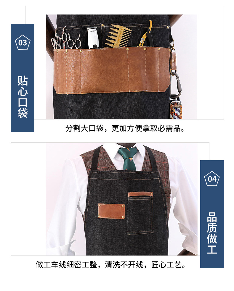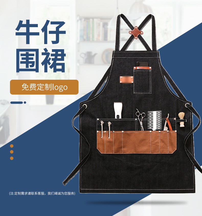 Comercio exterior Denim delantal bolsillo de cuero herramienta delantal mecánico peluquero trajes delantal sin mangas fábrica al por mayor