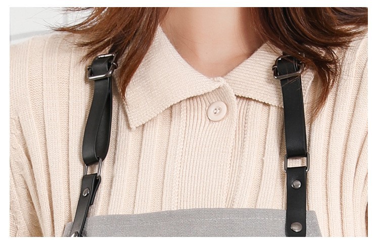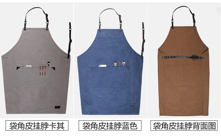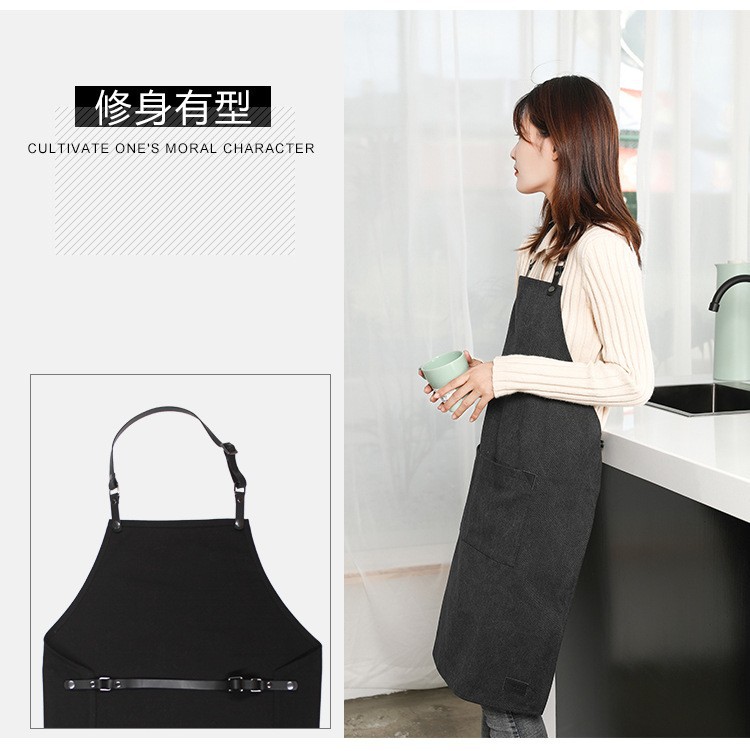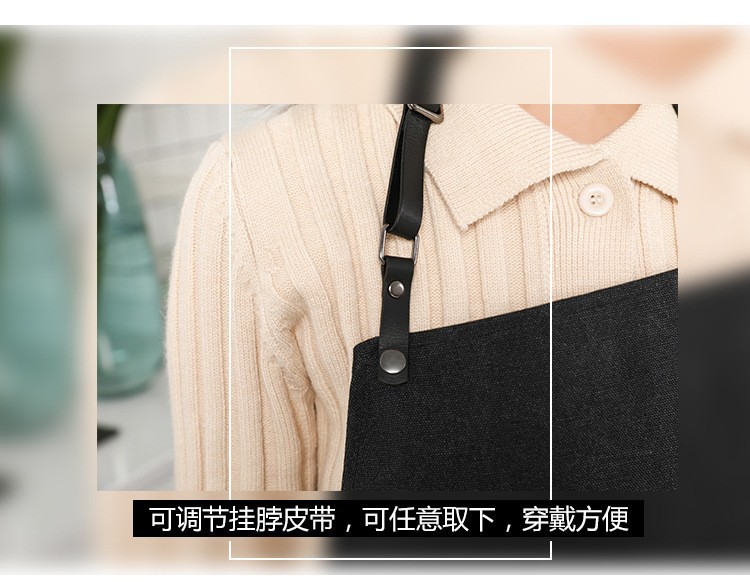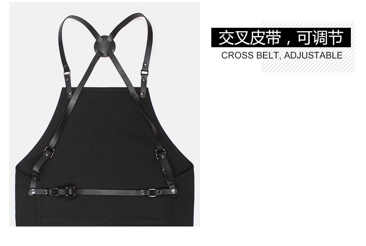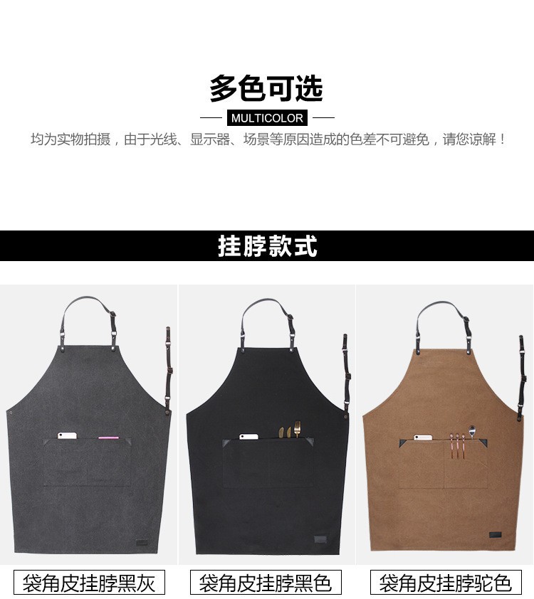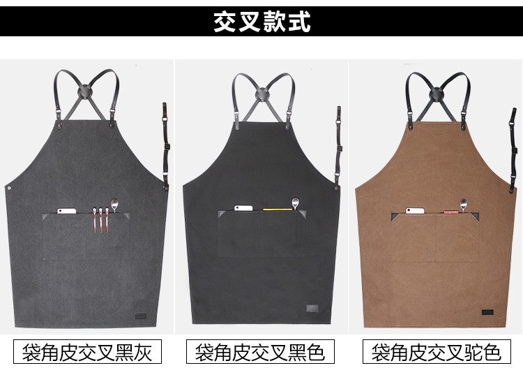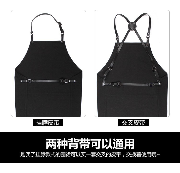 Comercio exterior delantal de lona gruesa peluquería cafetería panadería ropa de trabajo PU cuero correa ajustable delantal al por mayor
