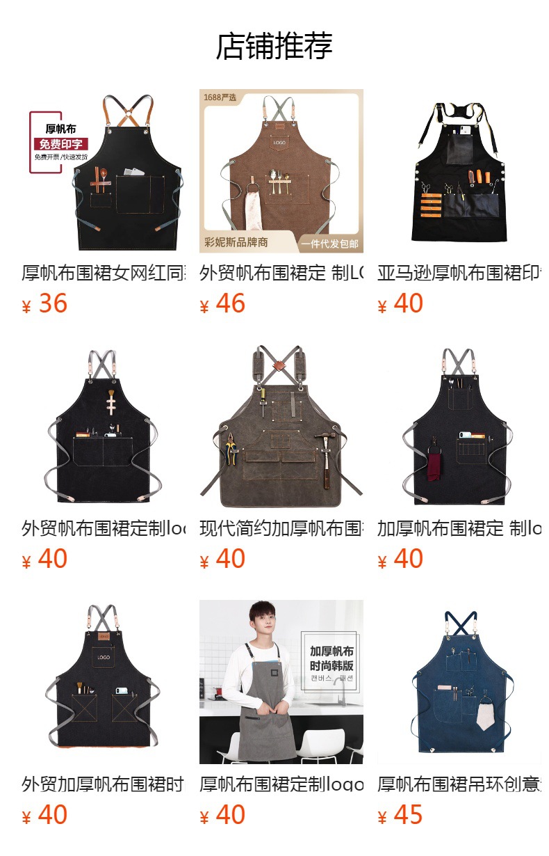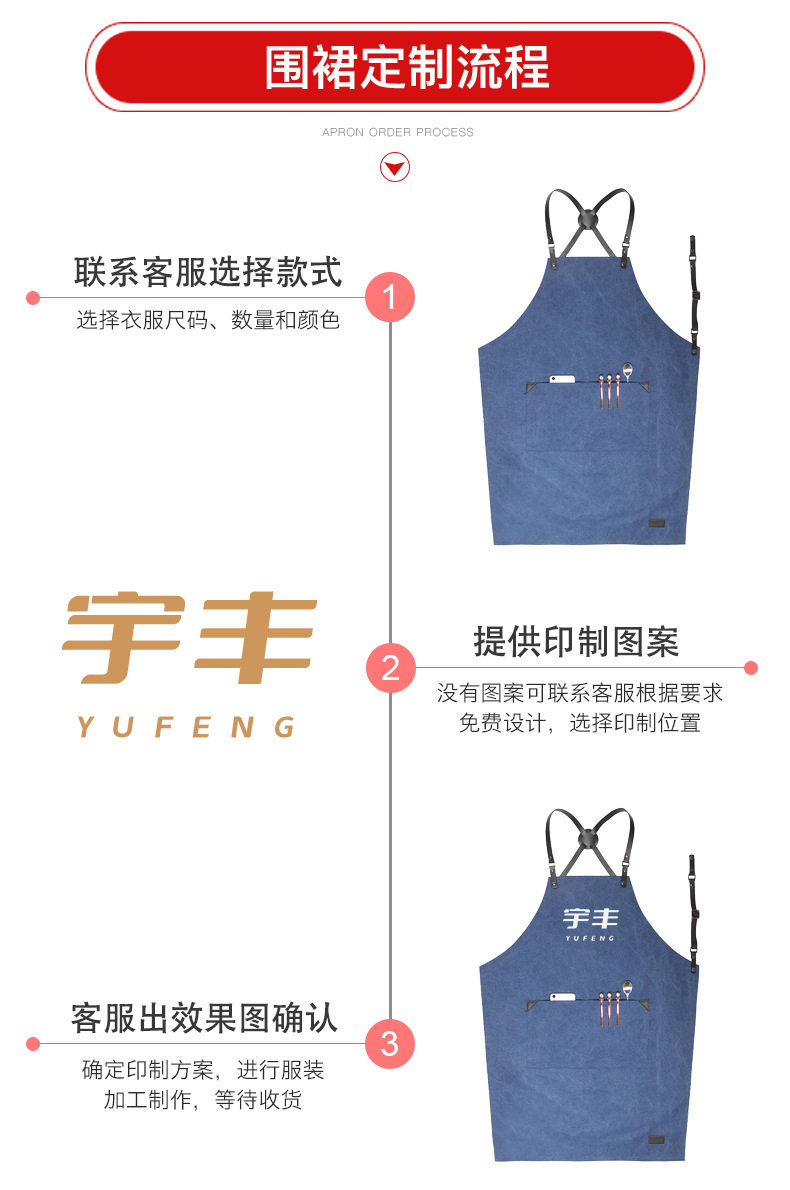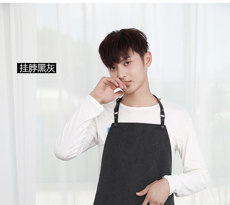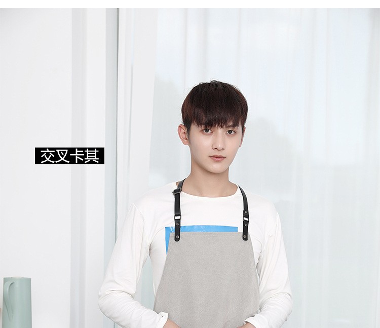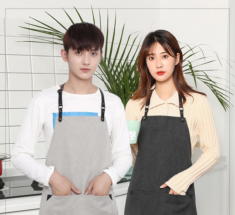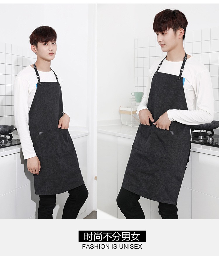 Comercio exterior delantal de lona gruesa peluquería cafetería panadería ropa de trabajo PU cuero correa ajustable delantal al por mayor