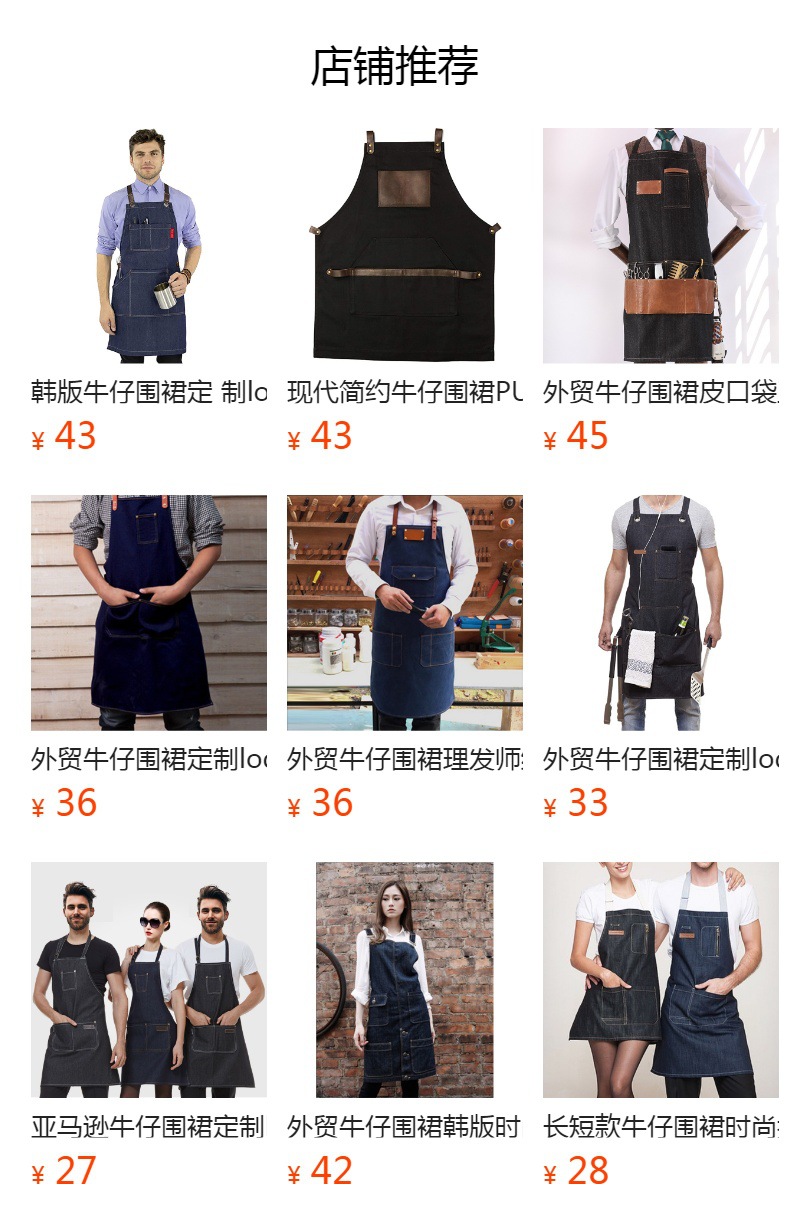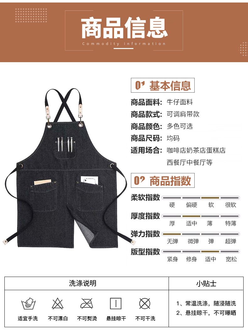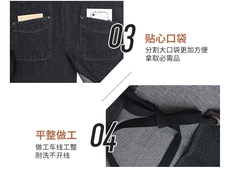 Delantal de mezclilla transfronterizo logotipo personalizado Barber ropa de trabajo jardinería floristería hogar cocina delantal al por mayor personalizado