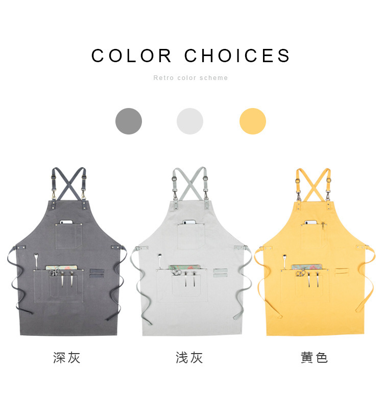 Lienzo delantal logotipo personalizado restaurante artista floral peluquería cafetería trajes delantal al por mayor personalizado