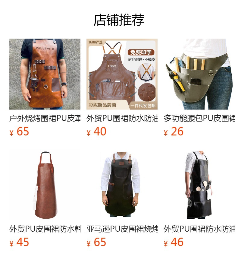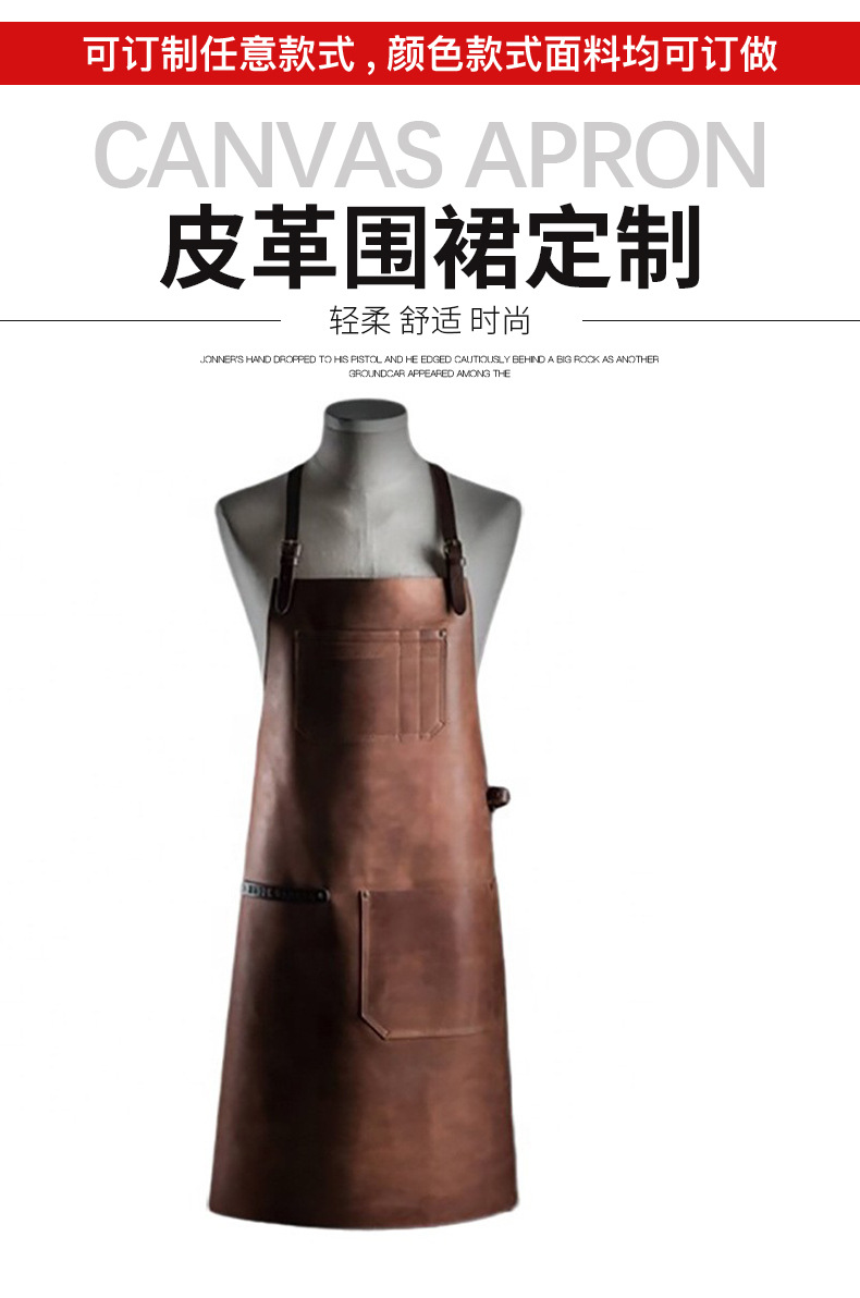 Delantal de cuero de la PU transfronterizo logotipo personalizado halter ajustable peluquero ropa de trabajo panadería cocina delantal doméstico