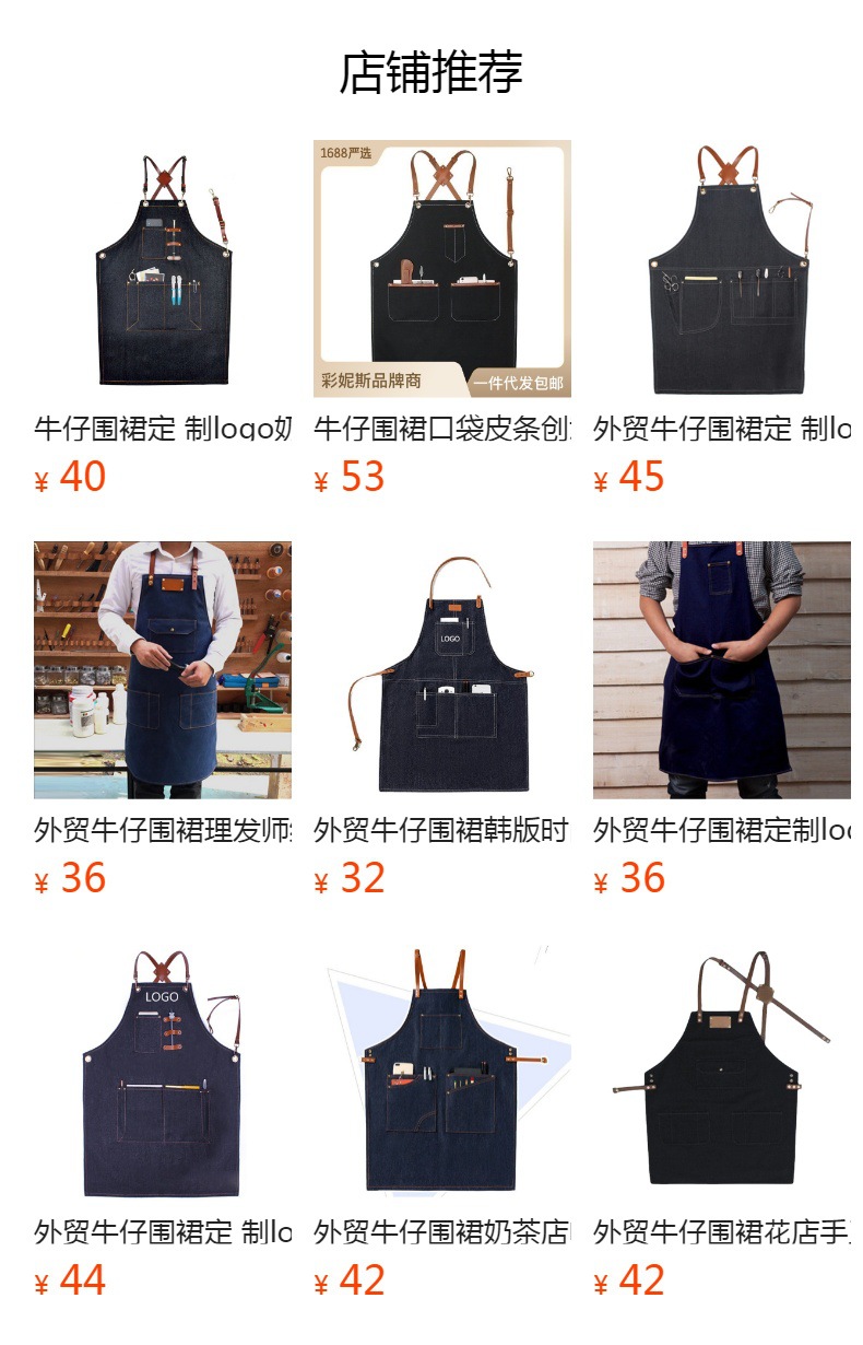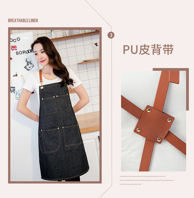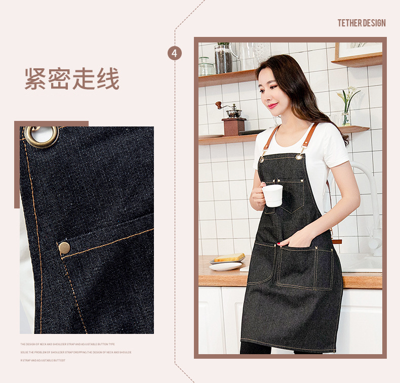 Amazon Denim delantal Cafetería Restaurante floricultura artista coreano moda Correa peluquero delantal fábrica al por mayor