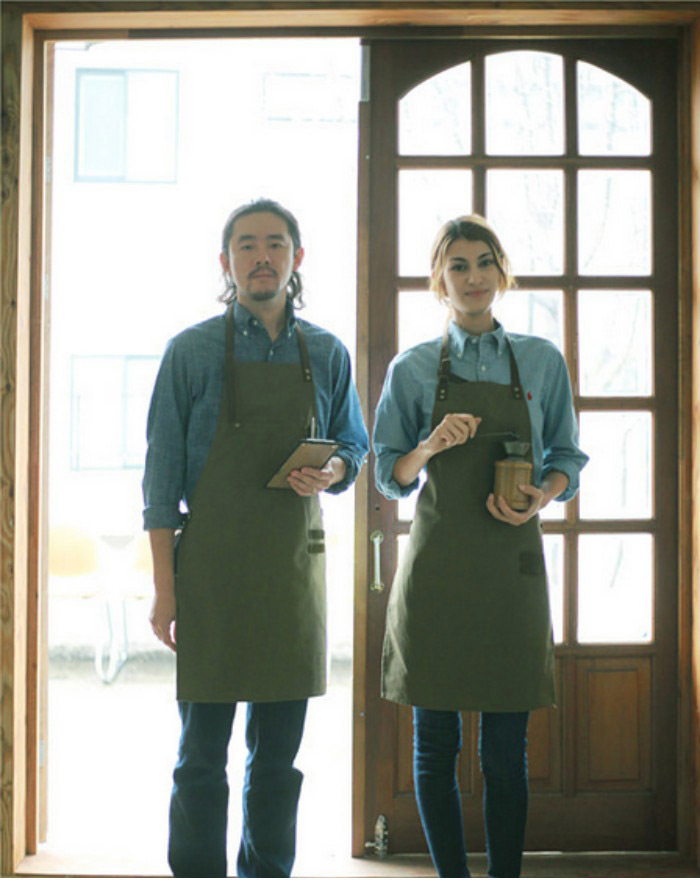 Delantal verde logotipo personalizado fábrica al por mayor sala de arte sala de pintura cafetería trajes delantal lienzo personalizado
