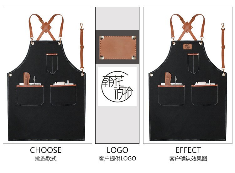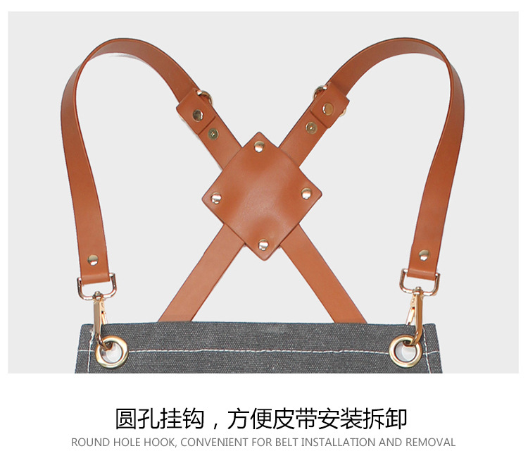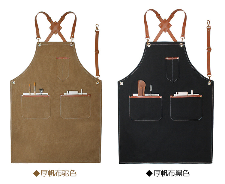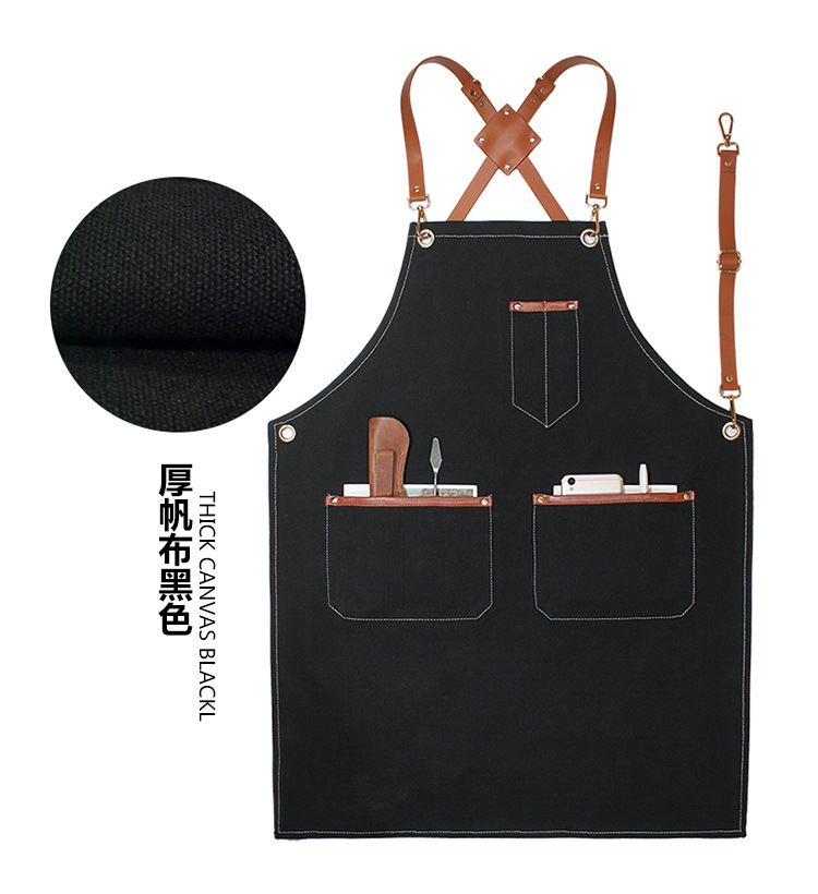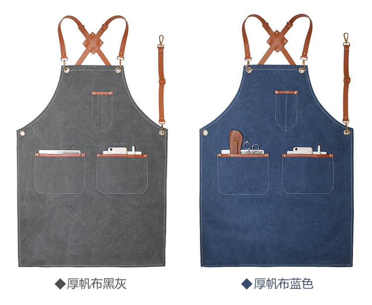 Denim delantal bolsillo tira de cuero decorativo creativo Correa overoles peluquero lona gruesa delantal por mayor