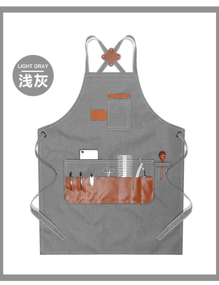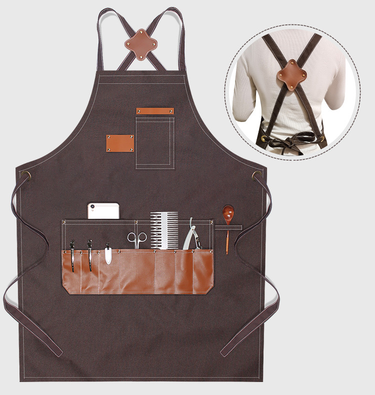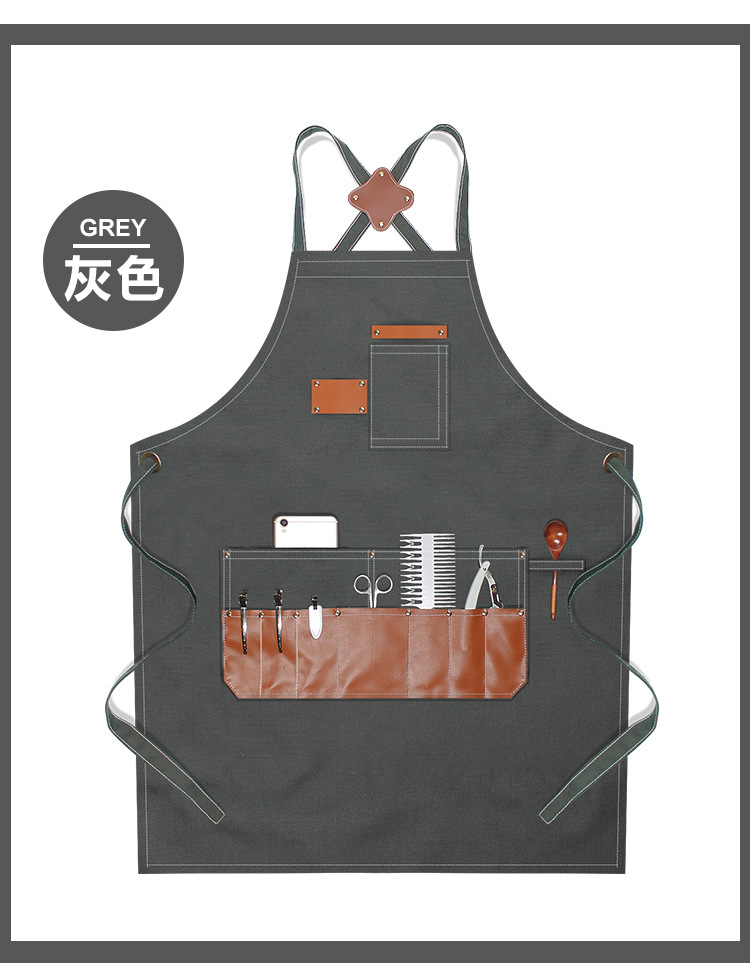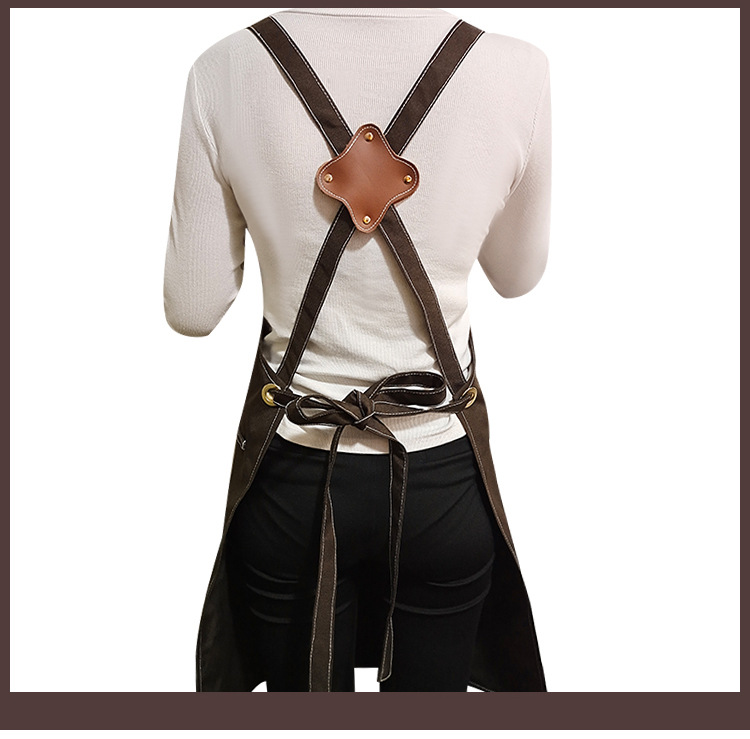 Comercio exterior lienzo delantal logotipo personalizado arte leche cruda tienda de té restaurante cafetería guardapolvos delantal al por mayor personalizado