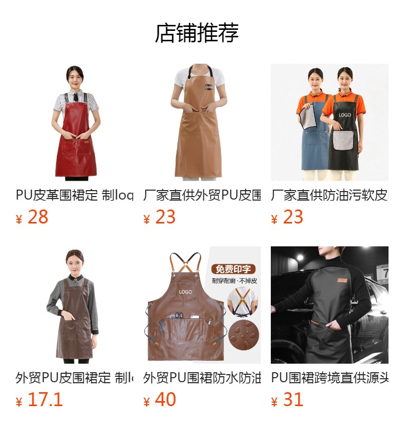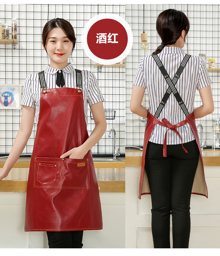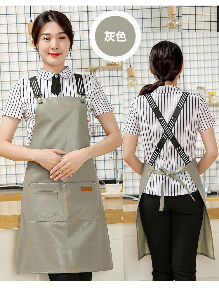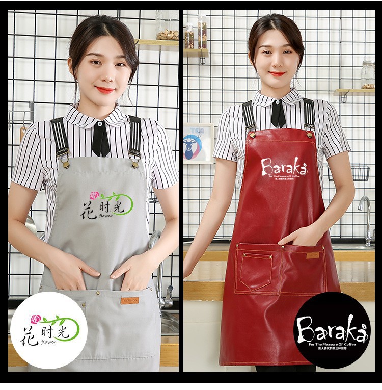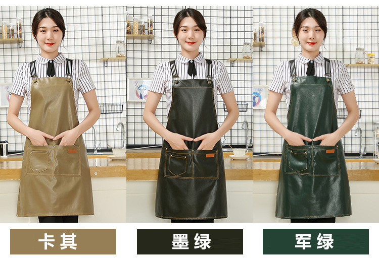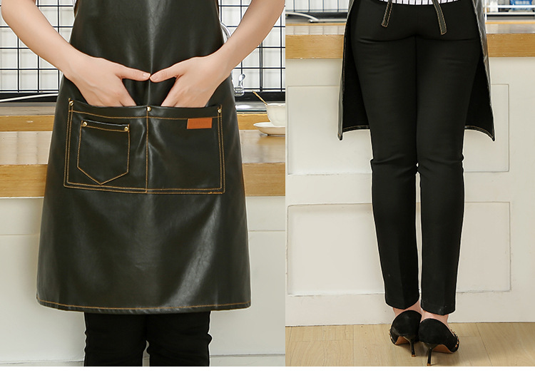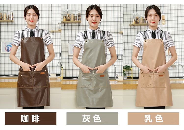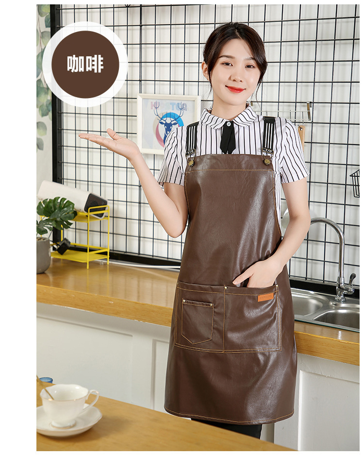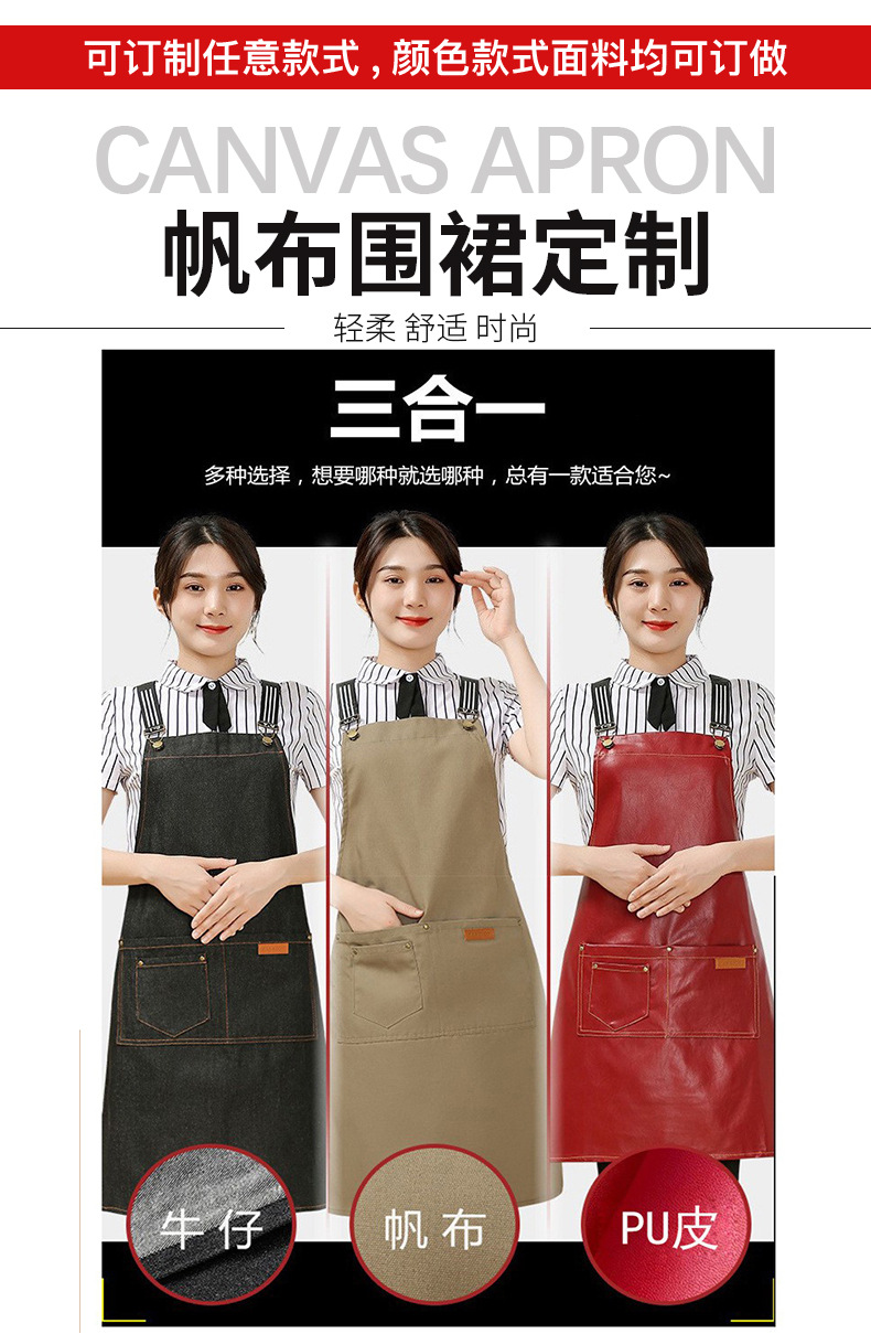 Comercio exterior pu cuero delantal lienzo logotipo personalizado hogar cocina lavado de coches acuático a prueba de aceite Denim delantal al por mayor personalizado