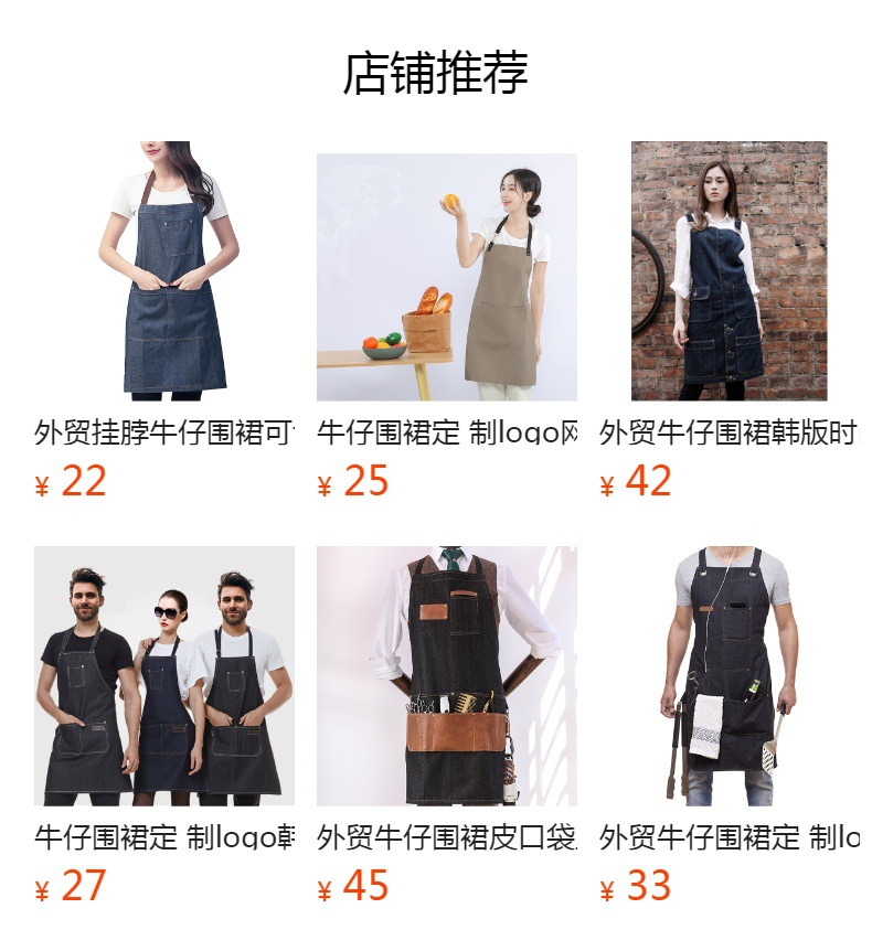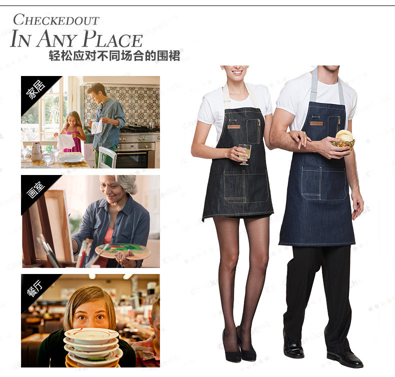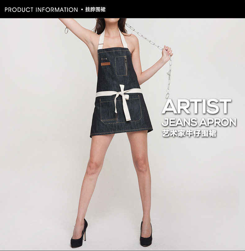 Largo corto Denim delantal moda cremallera café restaurante panadería ropa de trabajo peluquero delantal al por mayor