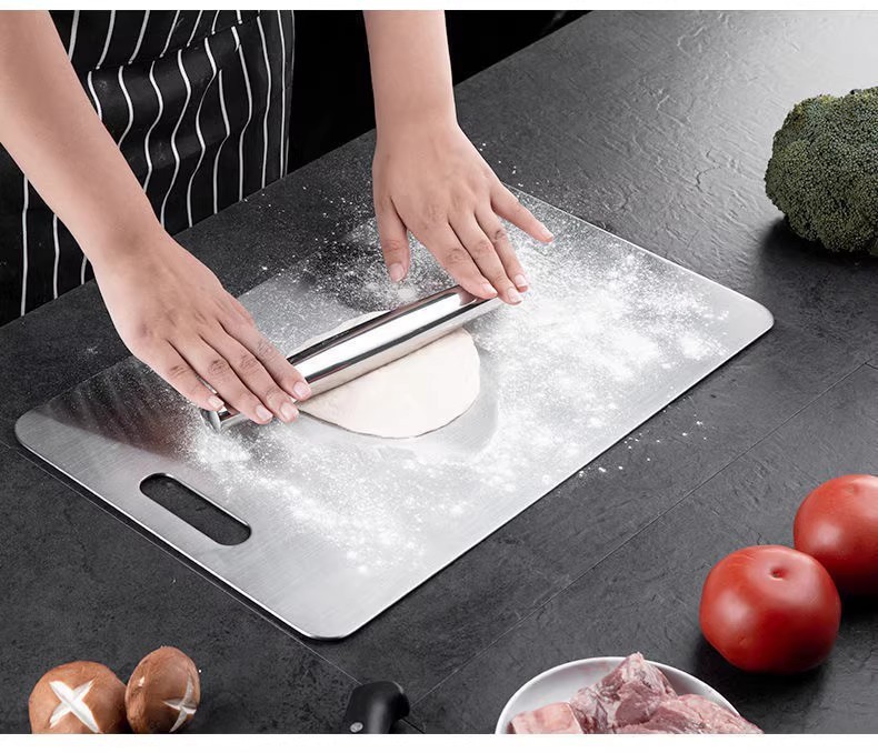 304 tablero de verduras de acero inoxidable de grado alimenticio tablero de corte de verduras doméstico comercial tablero de corte de doble cara antifungal antibacteriano tablero de corte grueso tablero