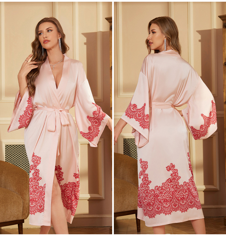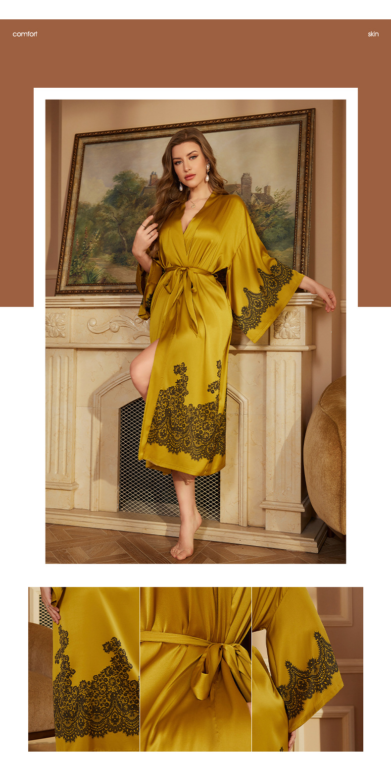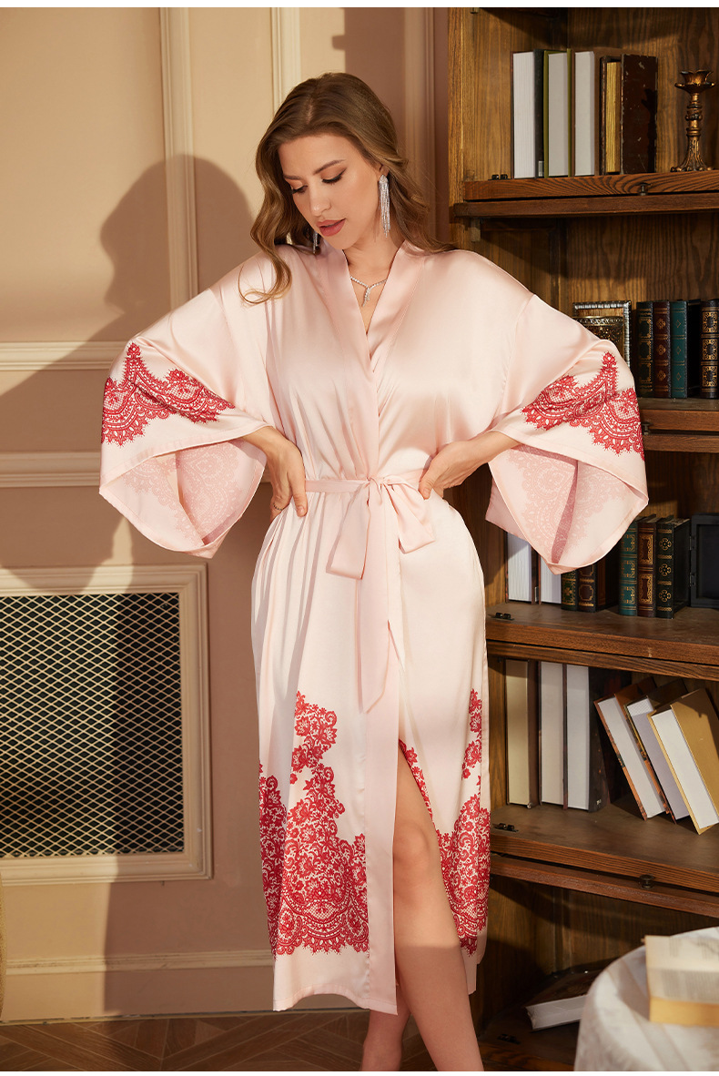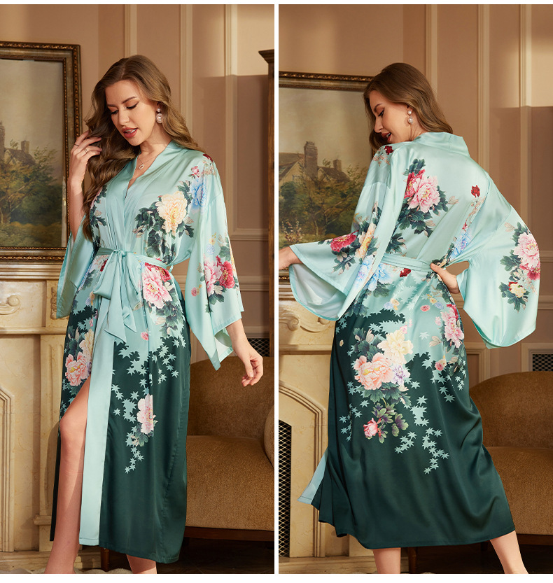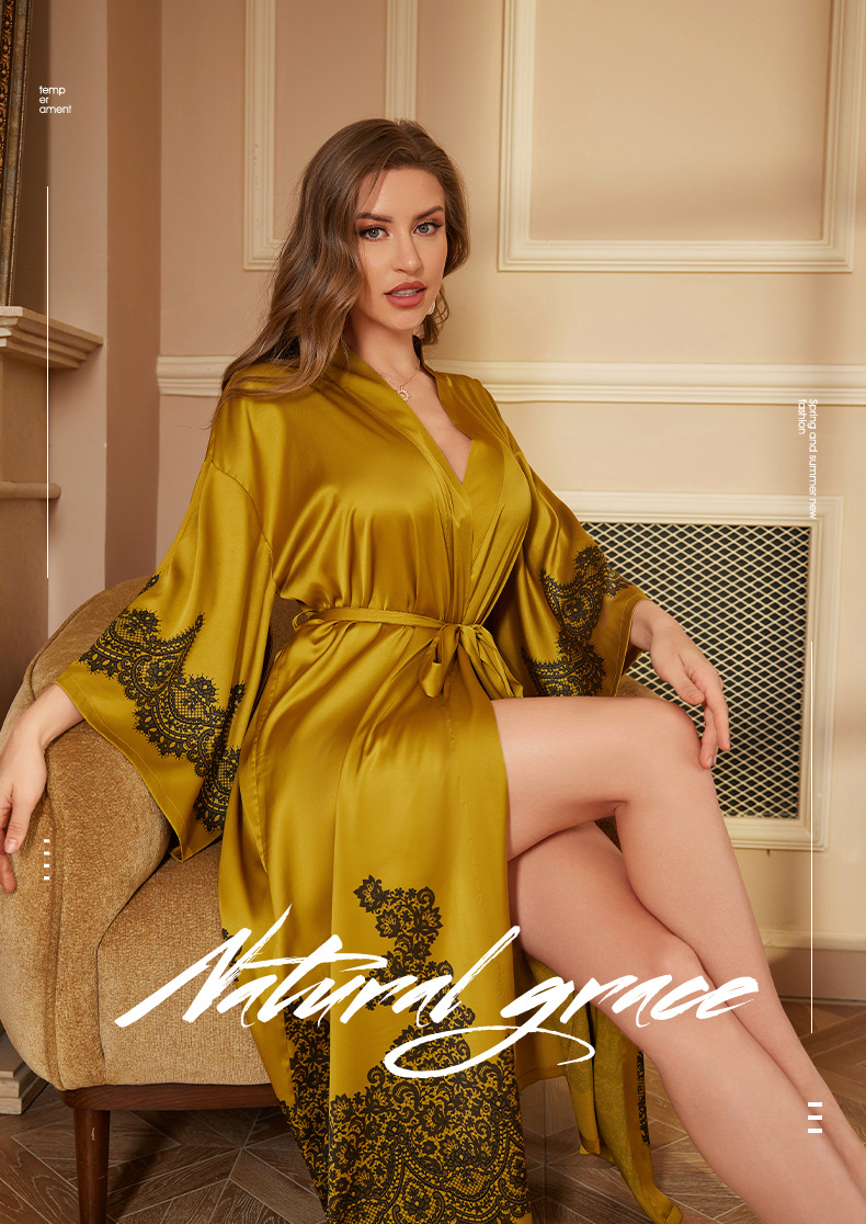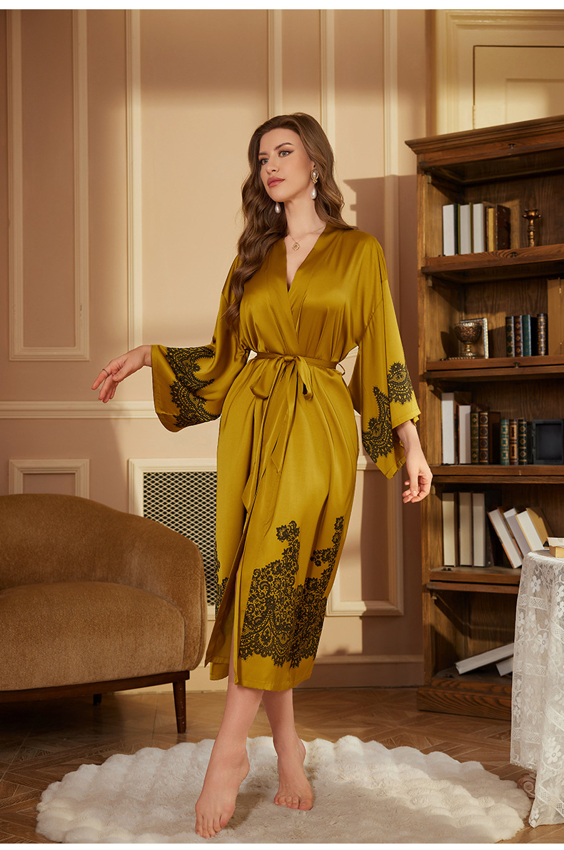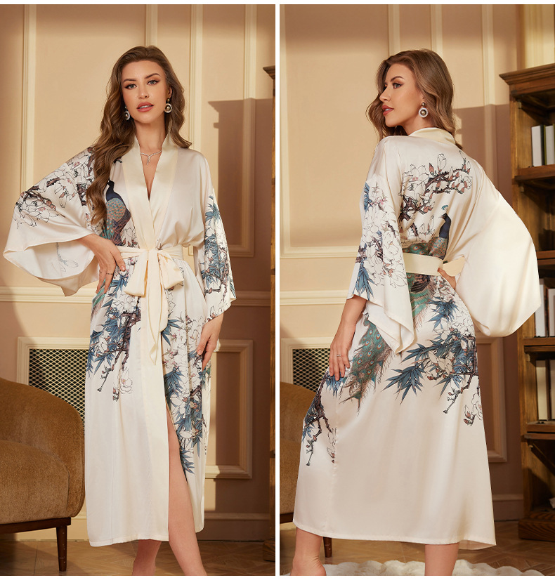 Nuevo camisón de lujo transfronterizo para mujer, bata de baño larga de primavera y otoño, talla única, bata de la mañana de satén, bata de manga larga WP3383