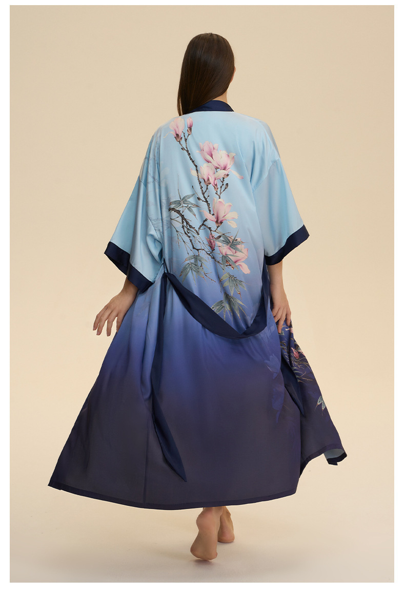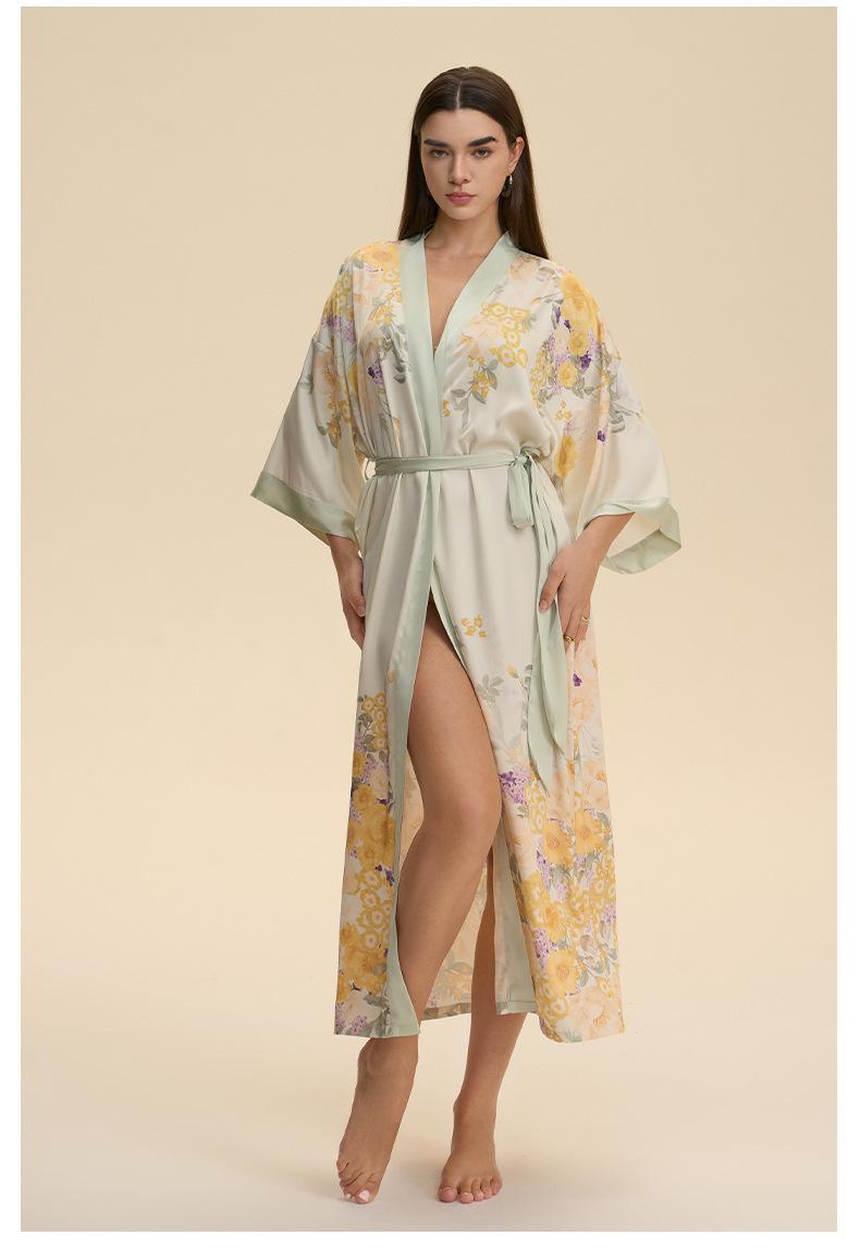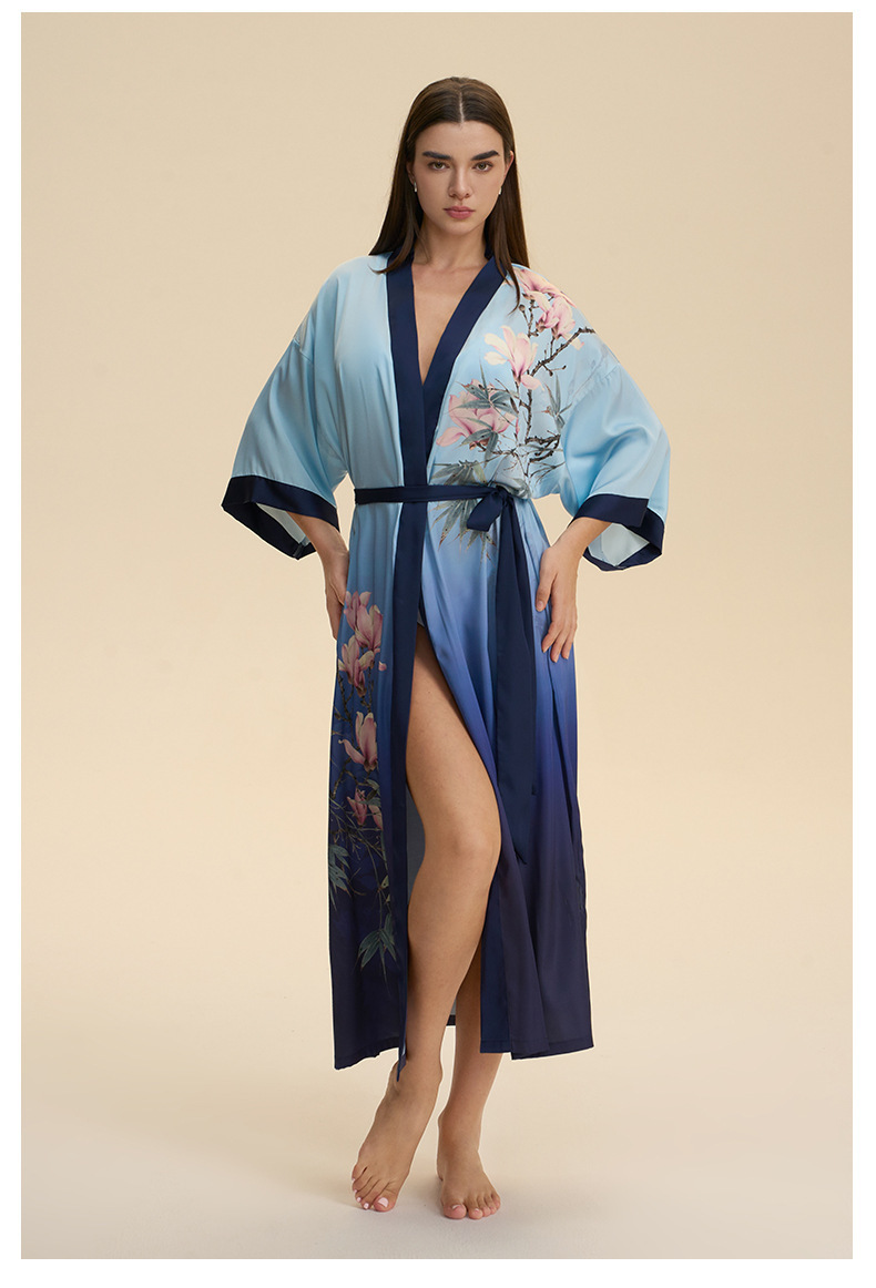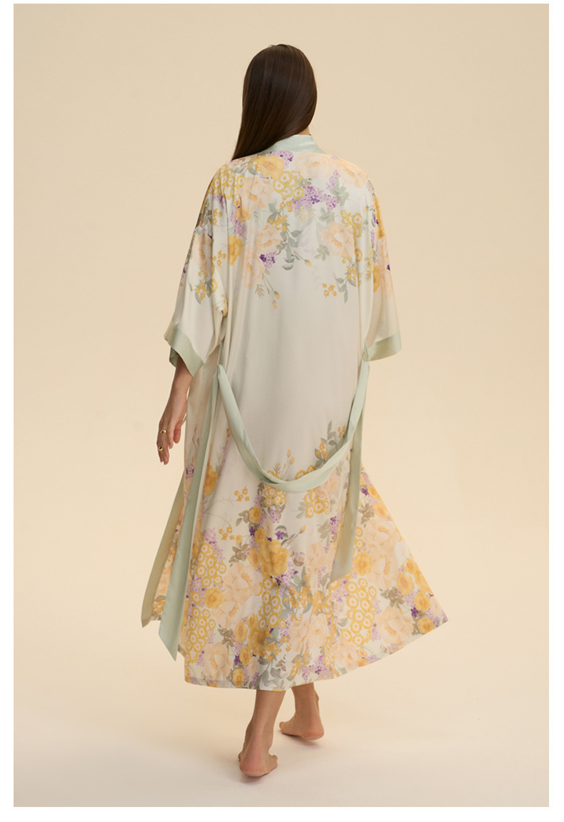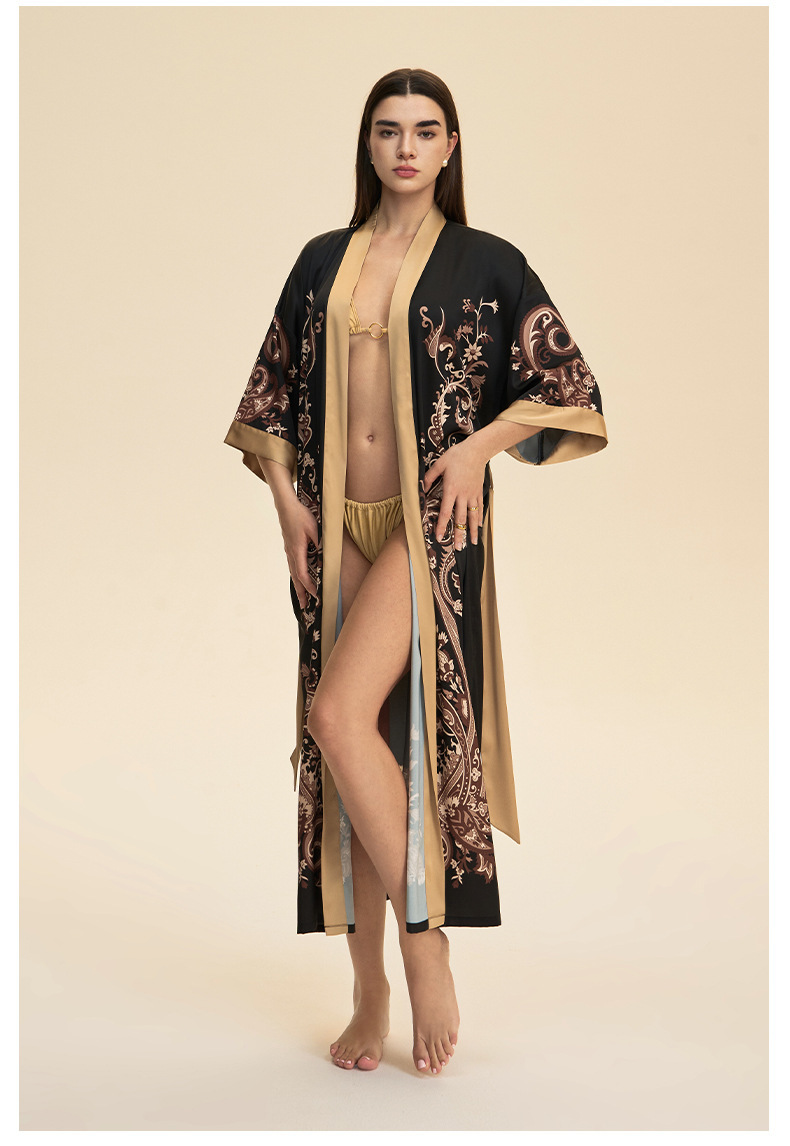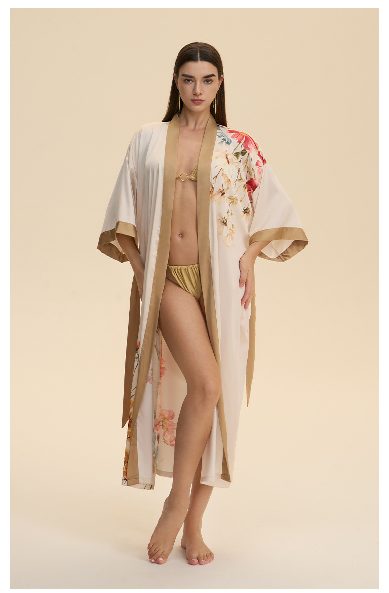 Moda transfronteriza nueva impresión floral satin chiffon camisa kimono damas cuello bata elegante ropa WP3978