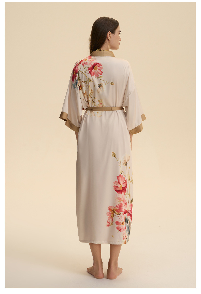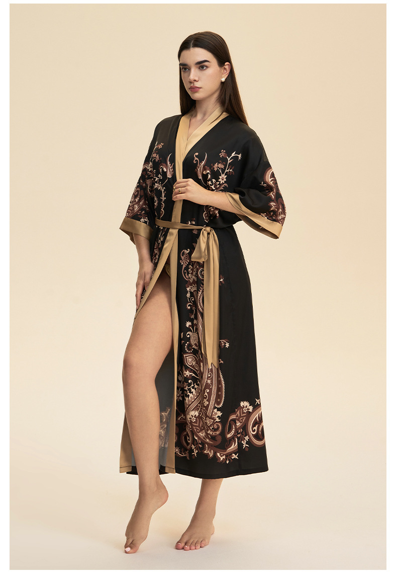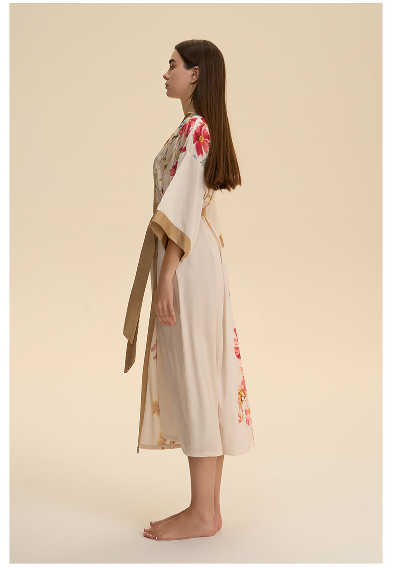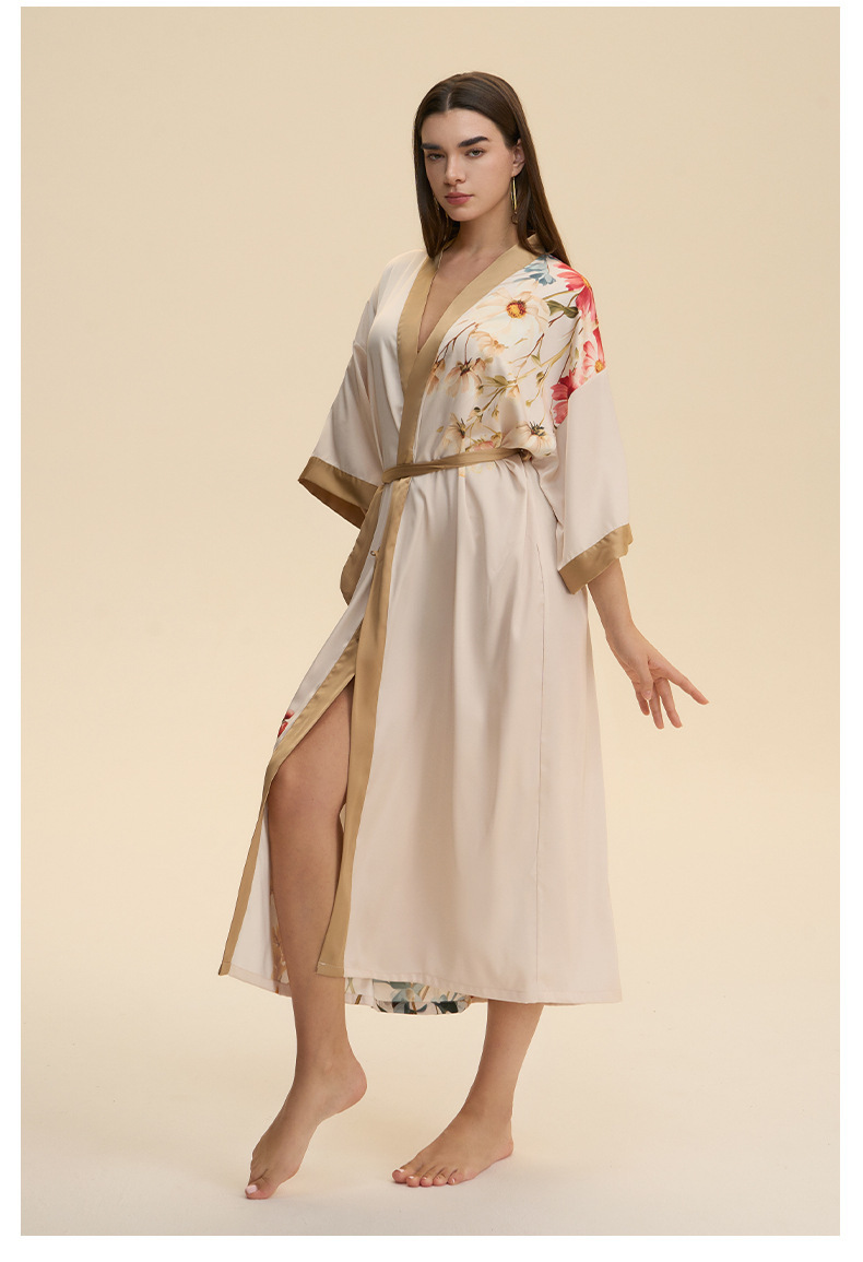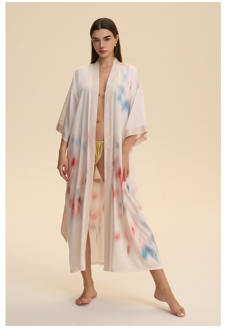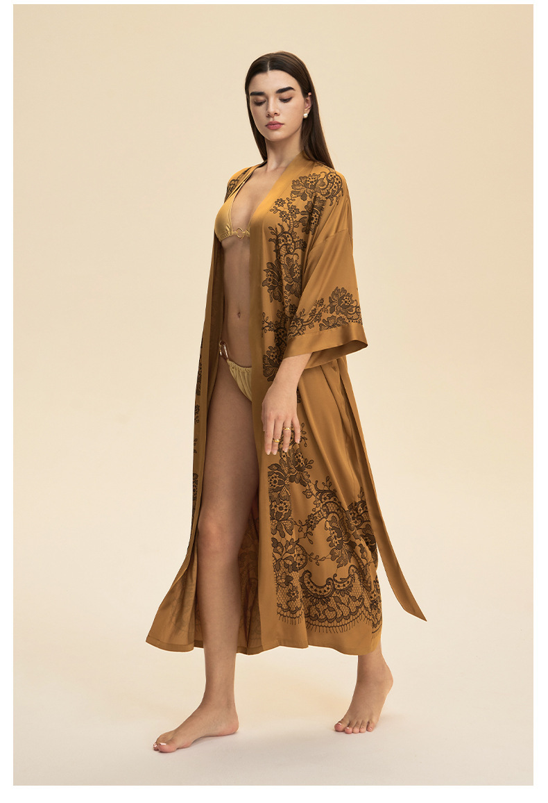Moda transfronteriza nueva impresión floral satin chiffon camisa kimono damas cuello bata elegante ropa WP3978