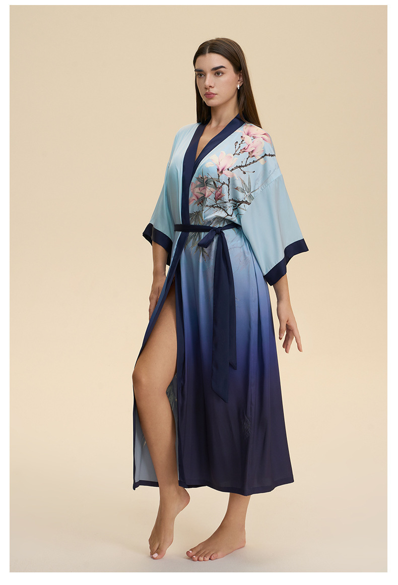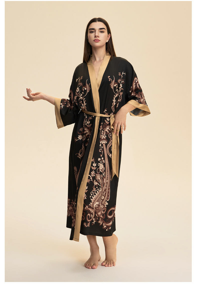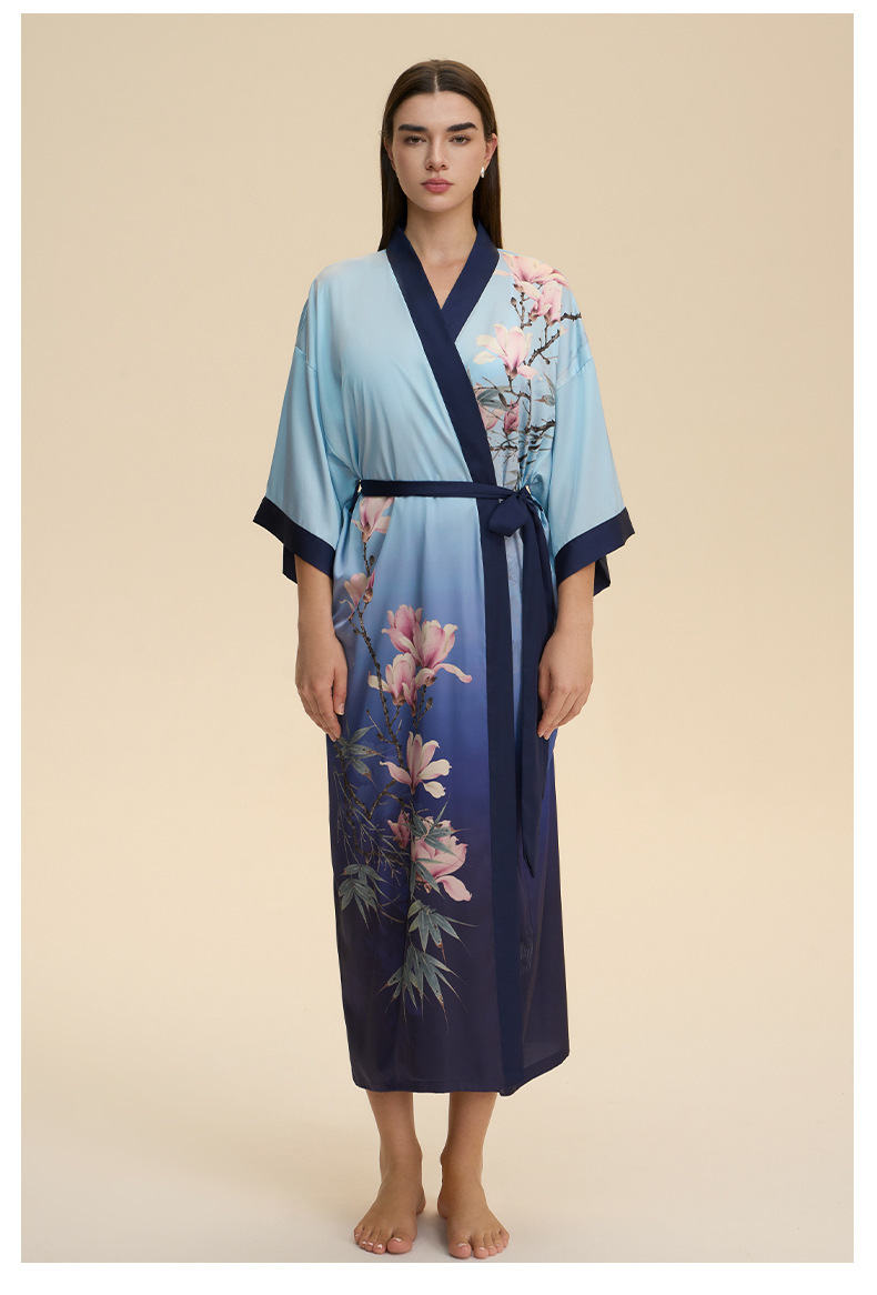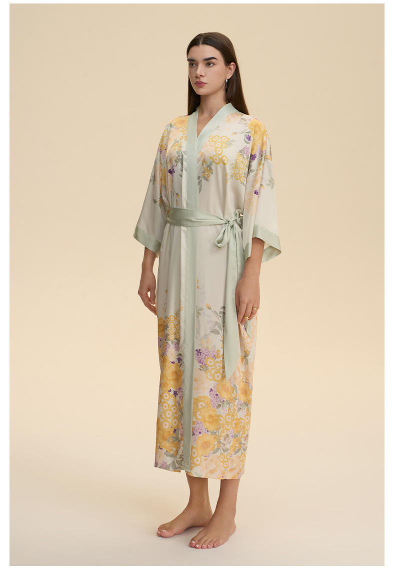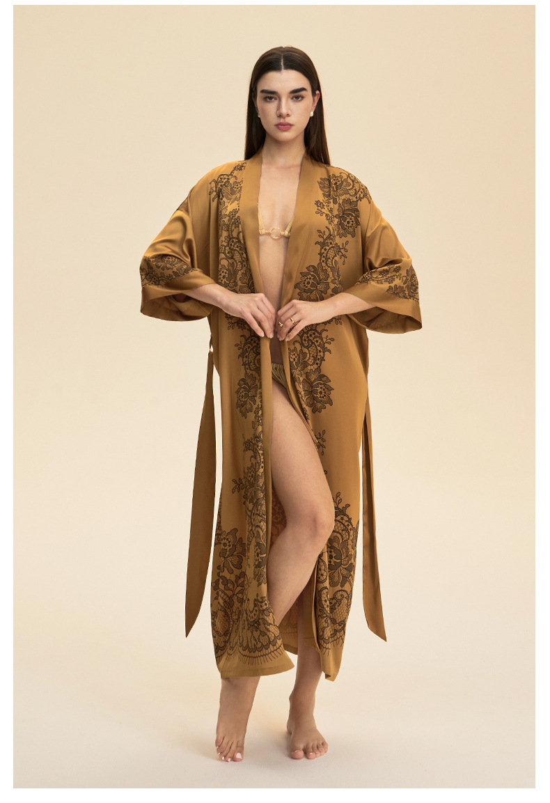 Moda transfronteriza nueva impresión floral satin chiffon camisa kimono damas cuello bata elegante ropa WP3978
