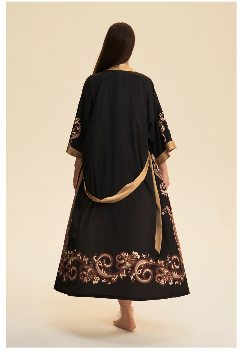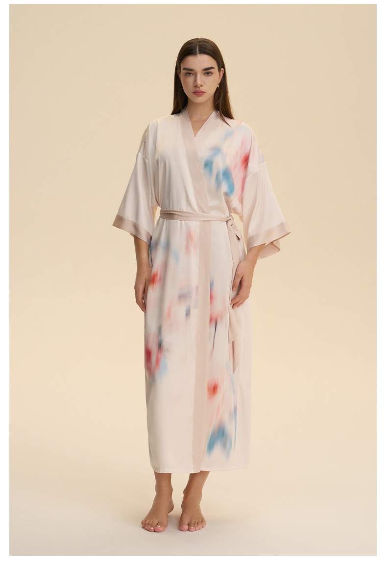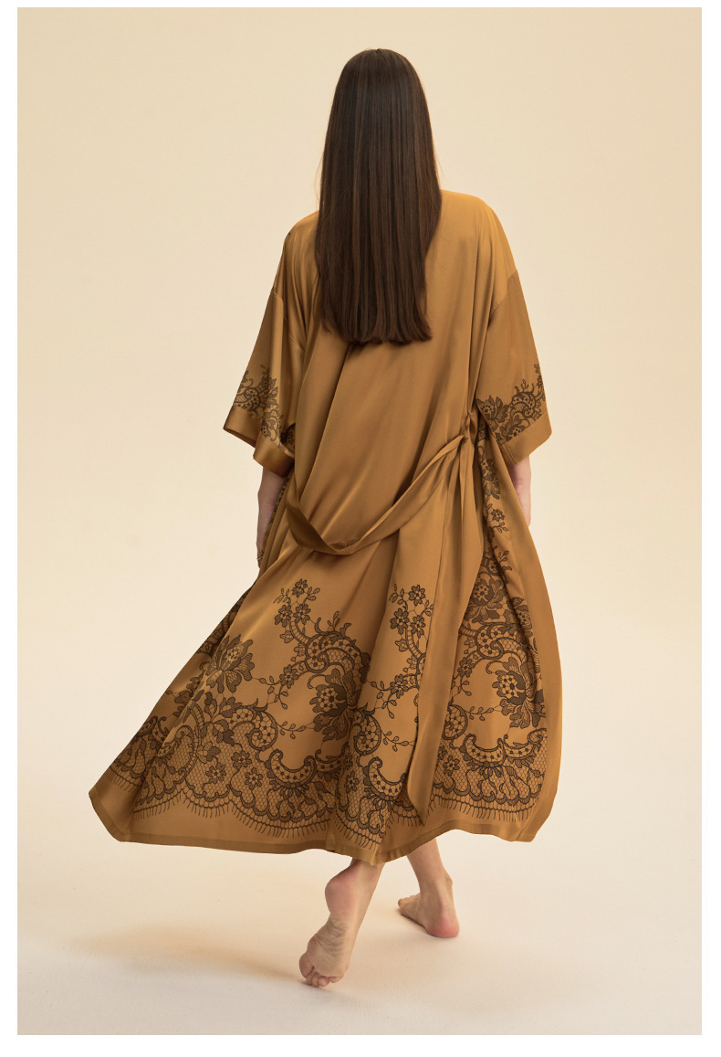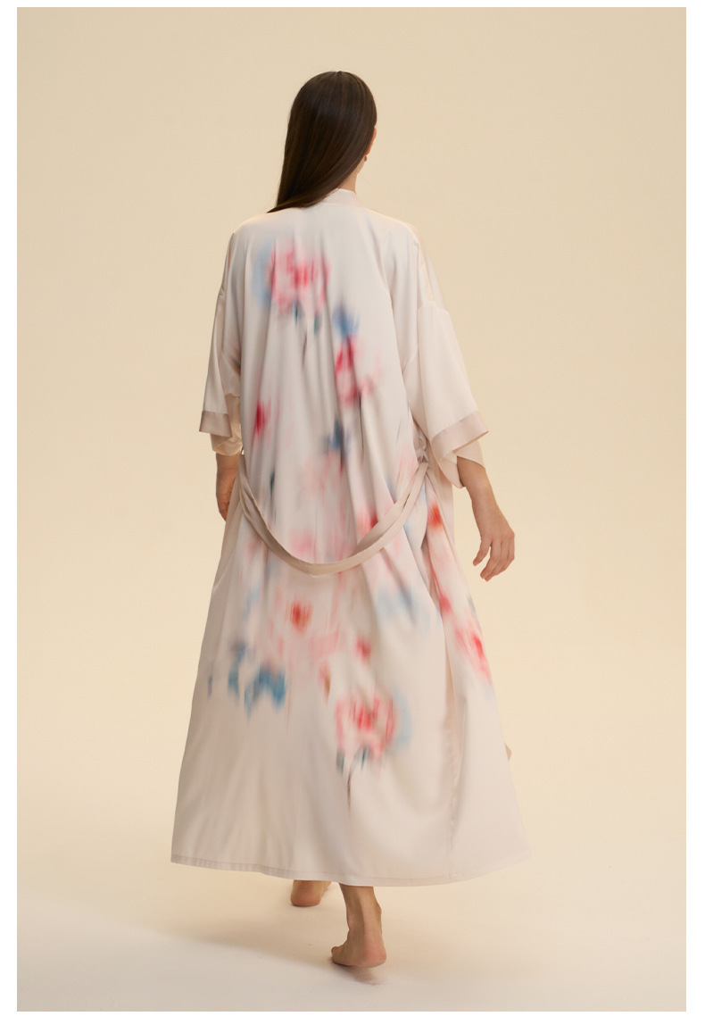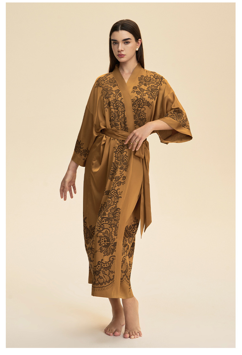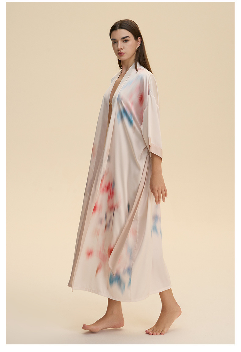 Moda transfronteriza nueva impresión floral satin chiffon camisa kimono damas cuello bata elegante ropa WP3978