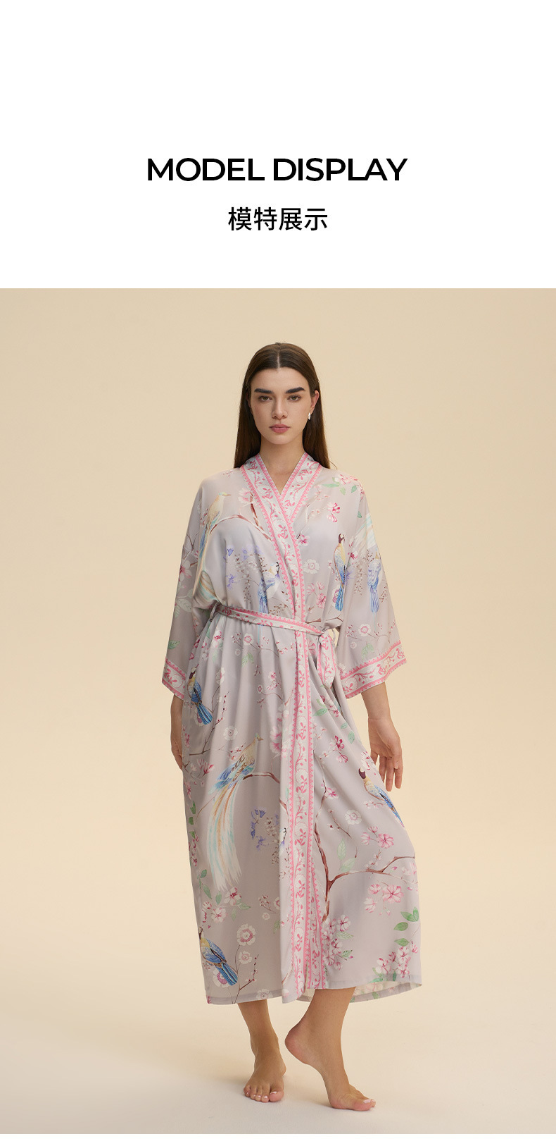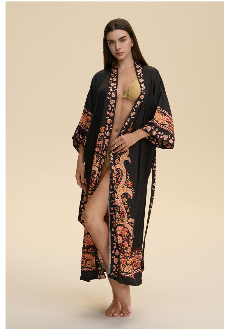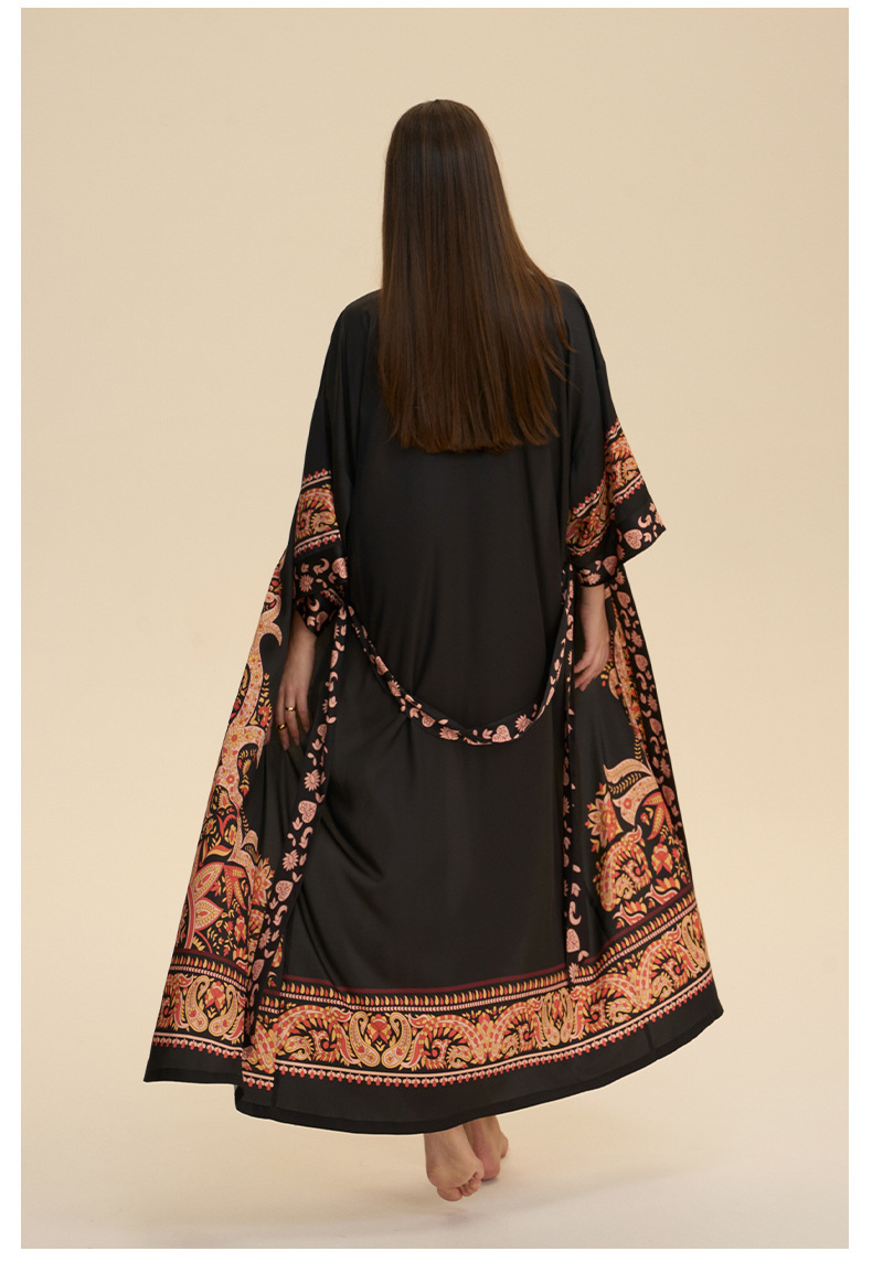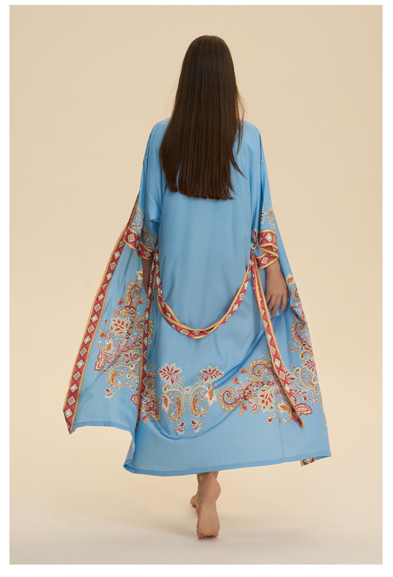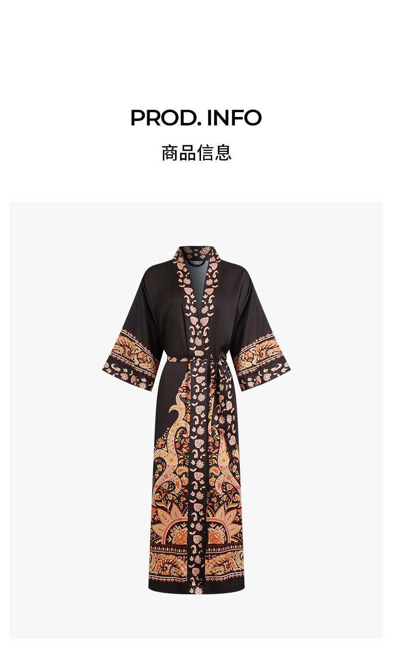 Nuevo europeo y americano transfronterizo larga manga larga larga larga suelta y cómoda kimono ropa de cama impresa para mujeres WP3982