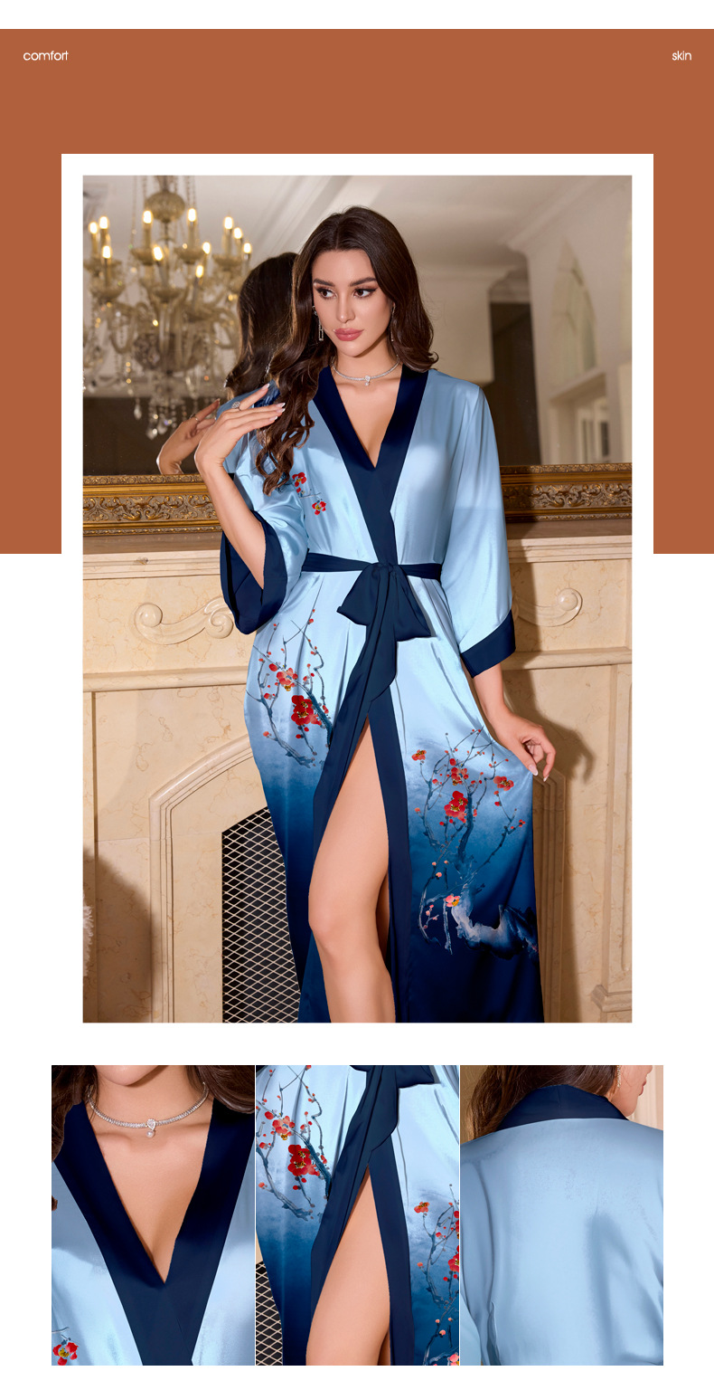 Pijamas transfronterizos de talla grande para mujer, verano, hielo, seda, estilo de lujo ligero, camisón suelto, albornoz, servicio a domicilio WP22317