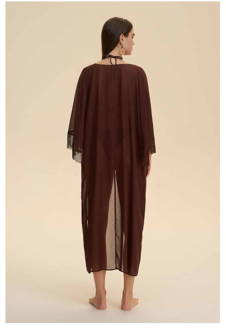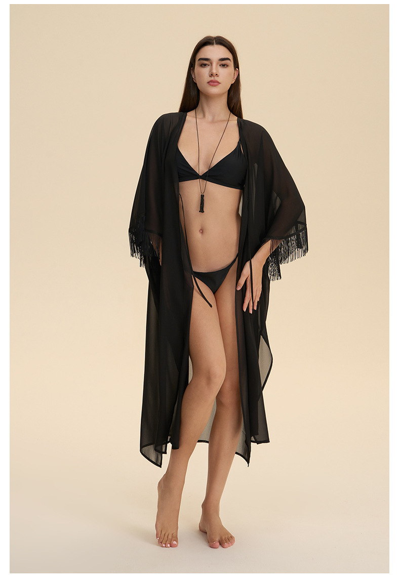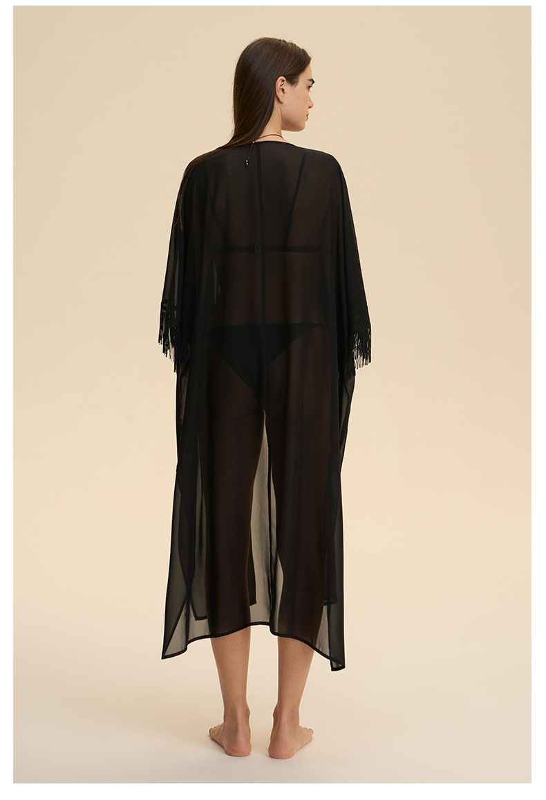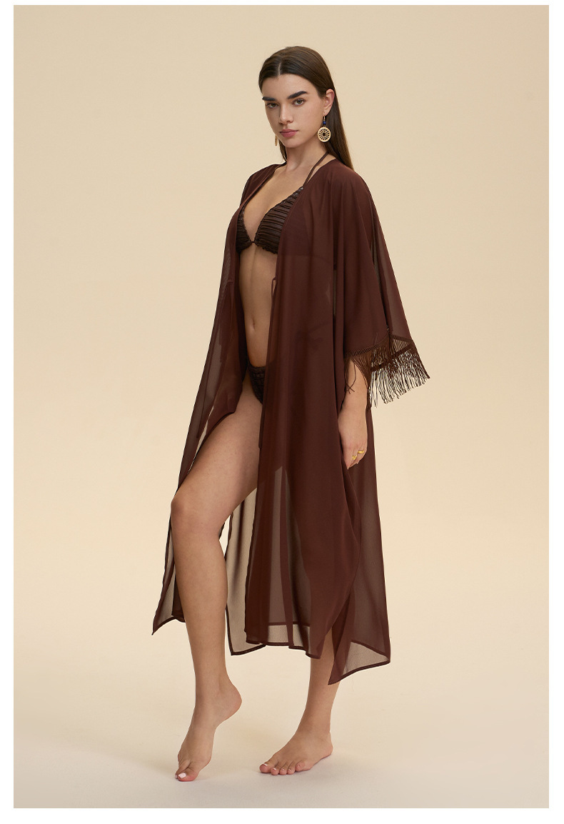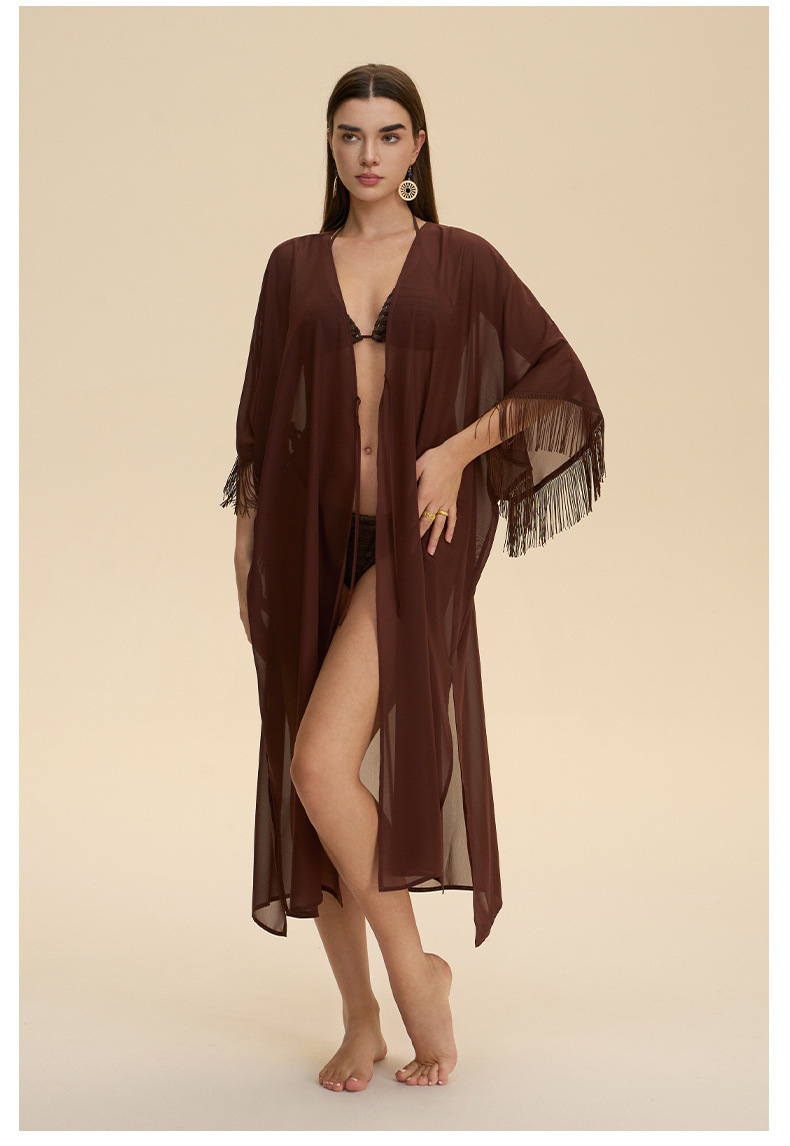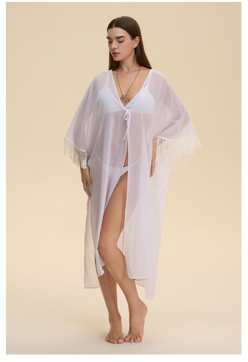 Nuevo Amazon Europa y los Estados Unidos transfronterizos ropa de dormir de malla sexy chiffon camisa de camisa de bordillo abrigo de pijama de perspectiva suelta 3990