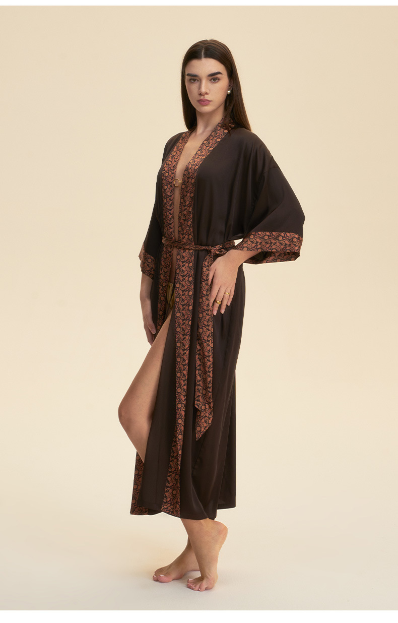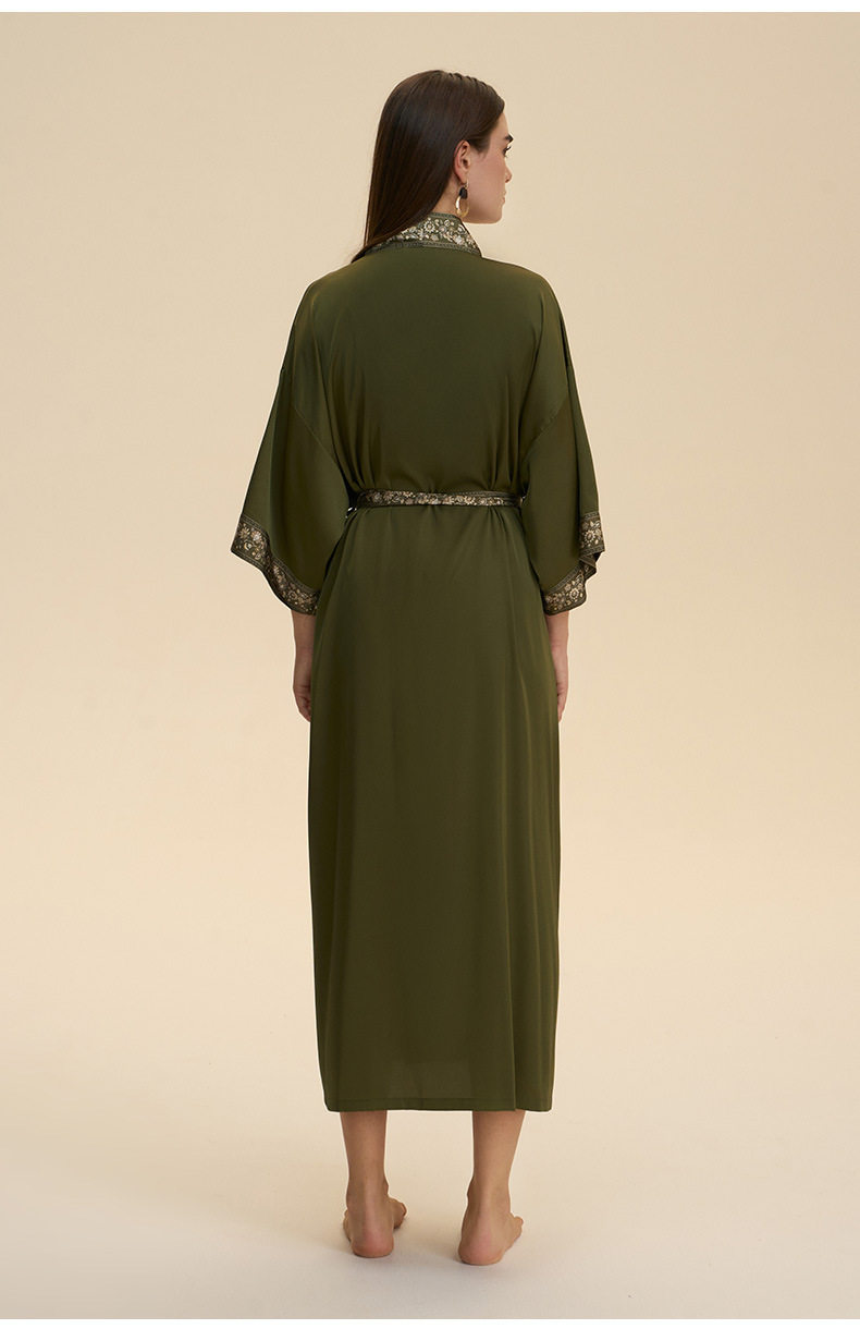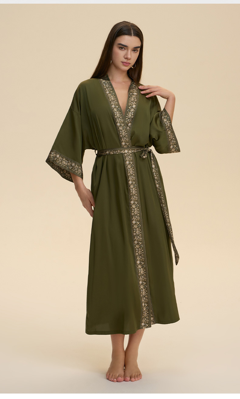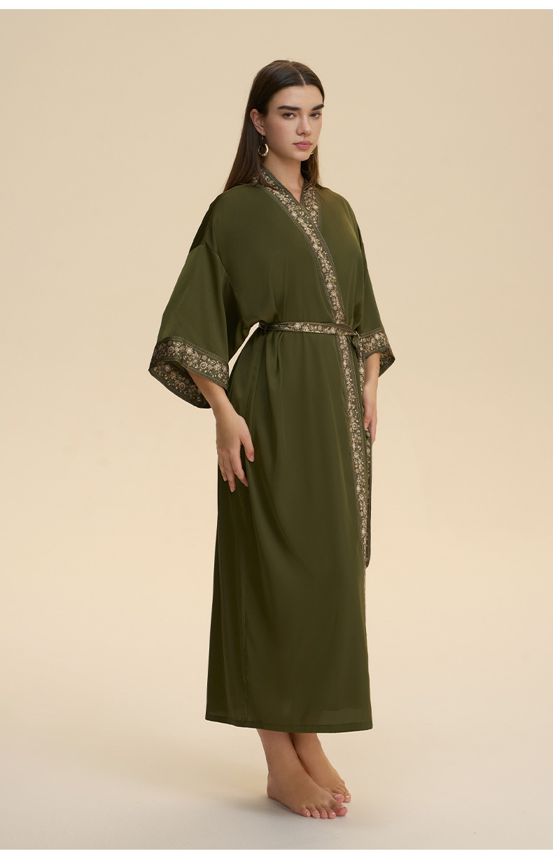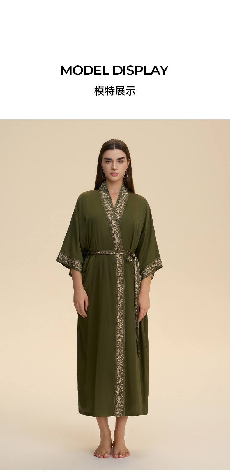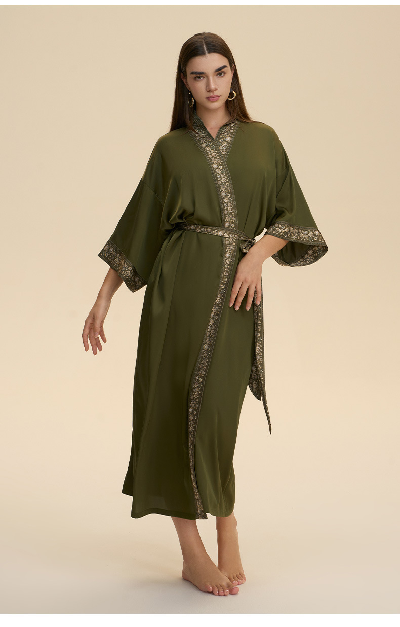 Amazon nuevo pijama transfronterizo damas moda cardigan ropa de encaje sólido ropa de ropa de casa WP3977