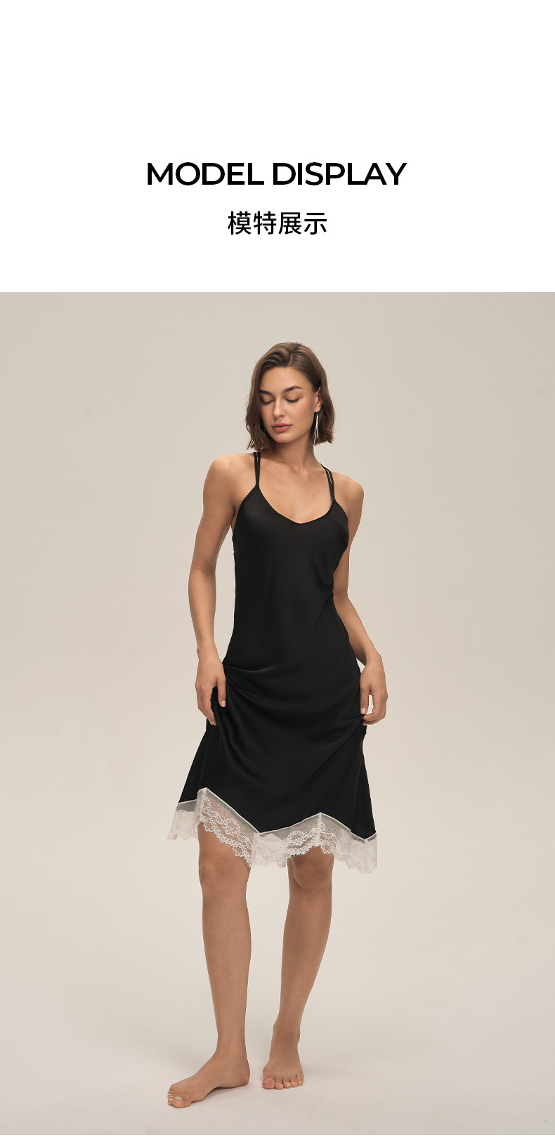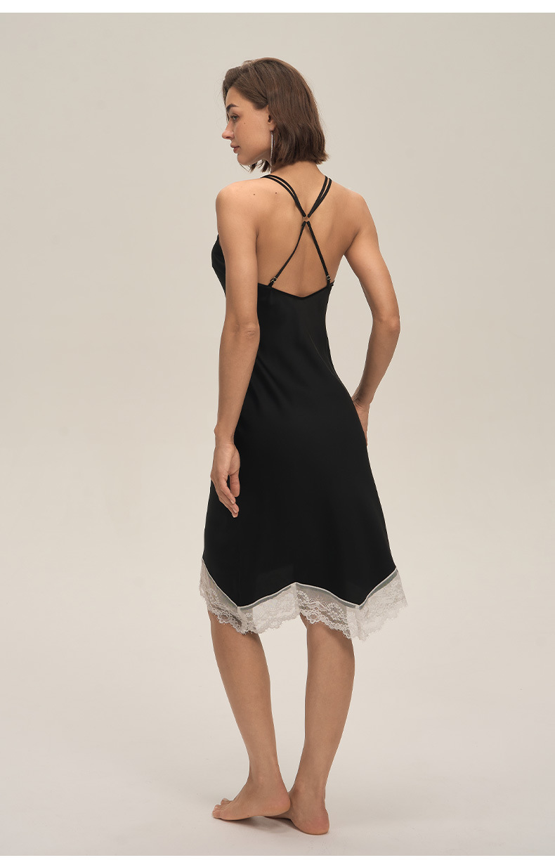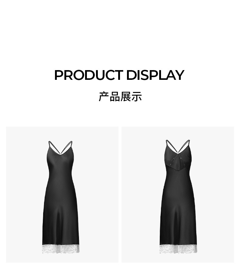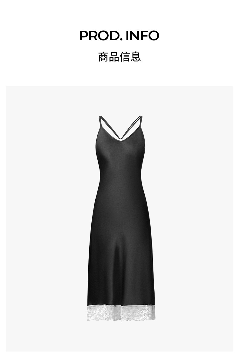 Nuevo satén sólido, encaje blanco, ropa casera larga, ropa de cama sexy, cinturón, pijama DQ3917