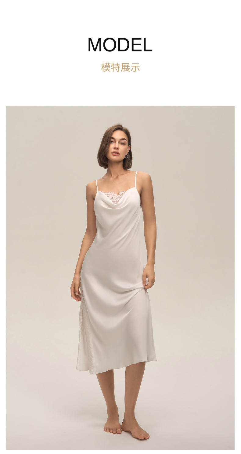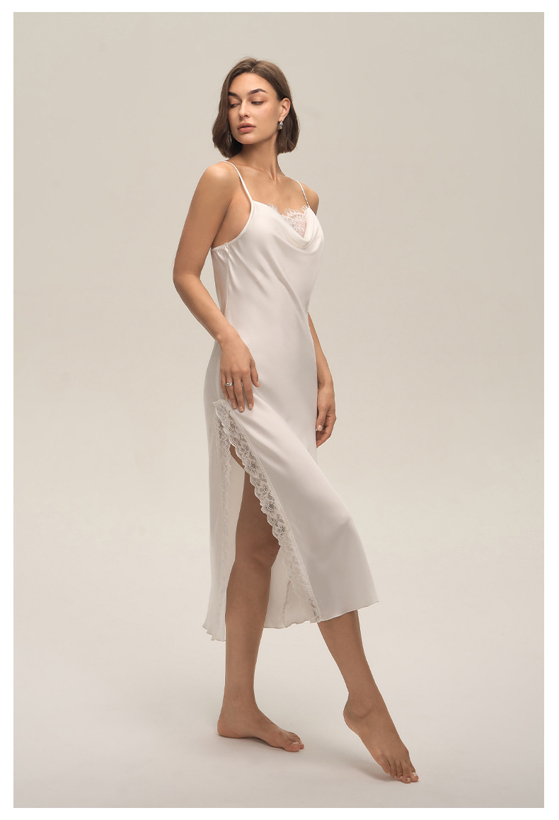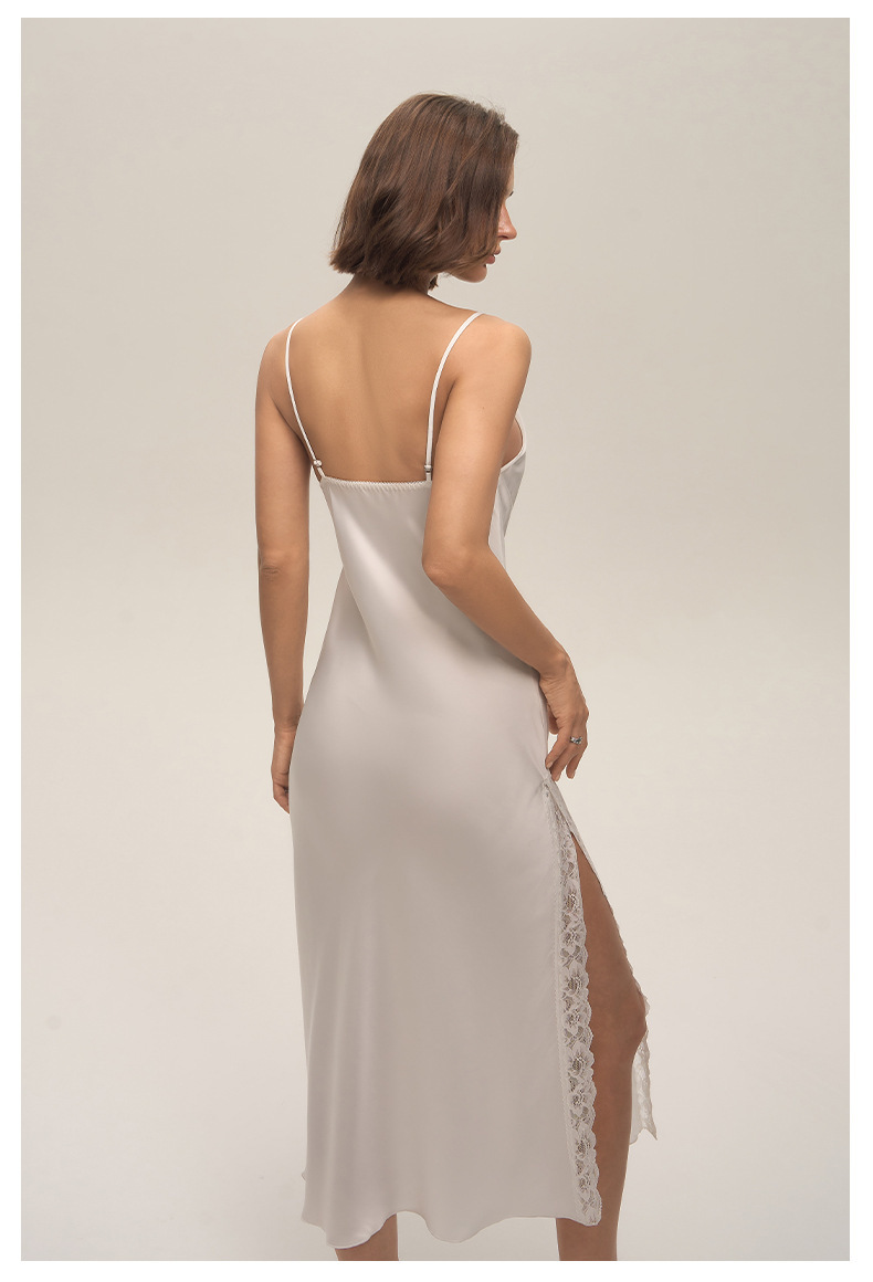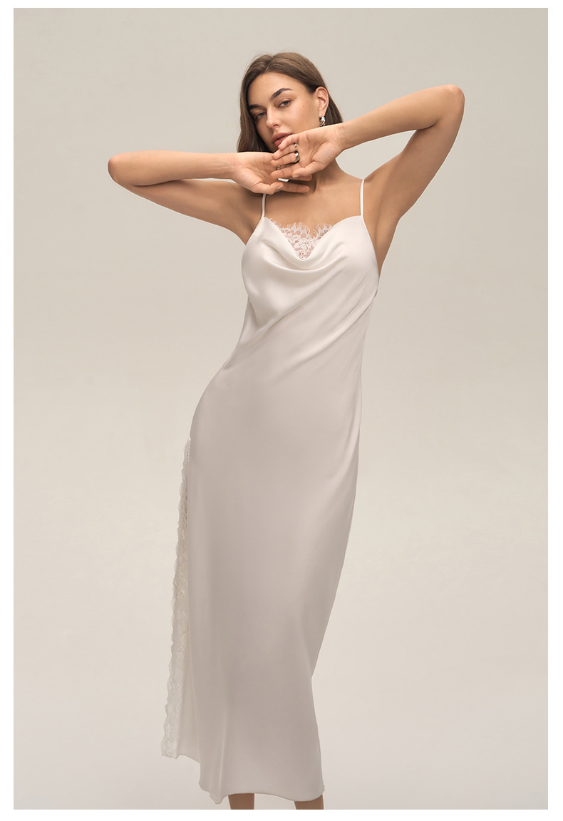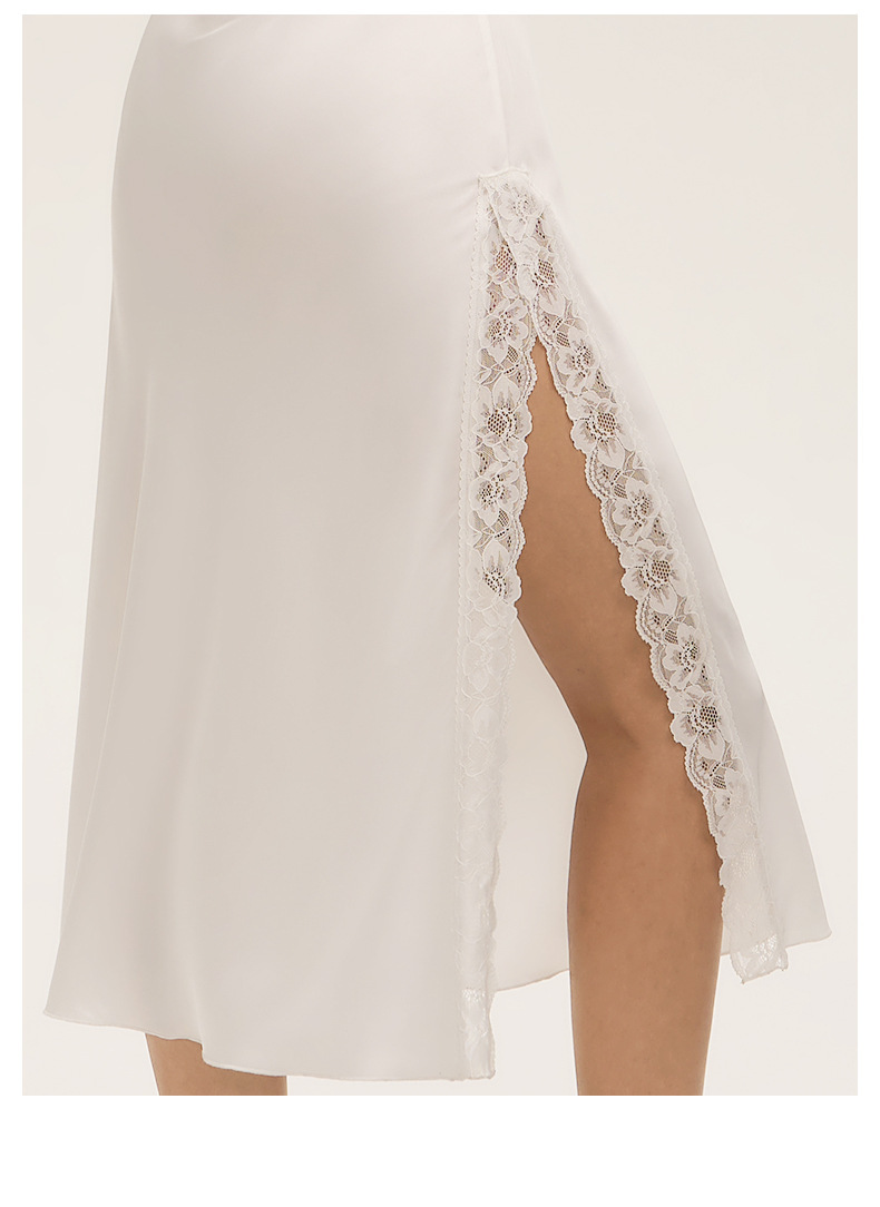Verano cuello swing satén chiffon encaje sexy de color sólido esling vestido larga ropa para el hogar pijamas mujeres verano SQ3910
