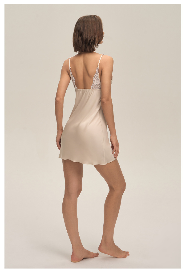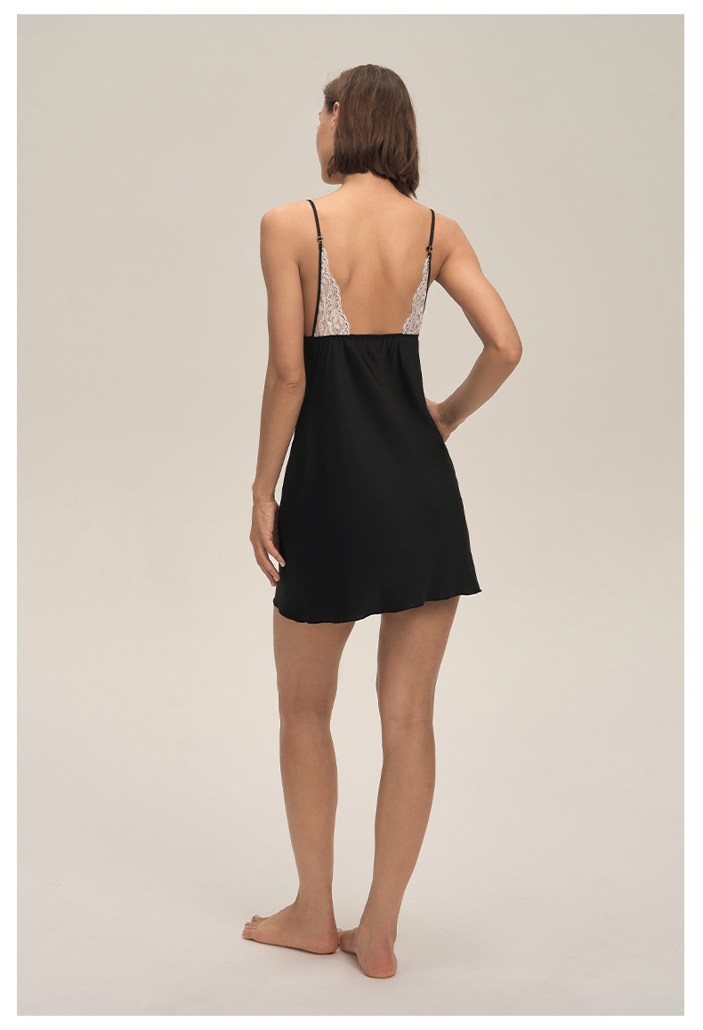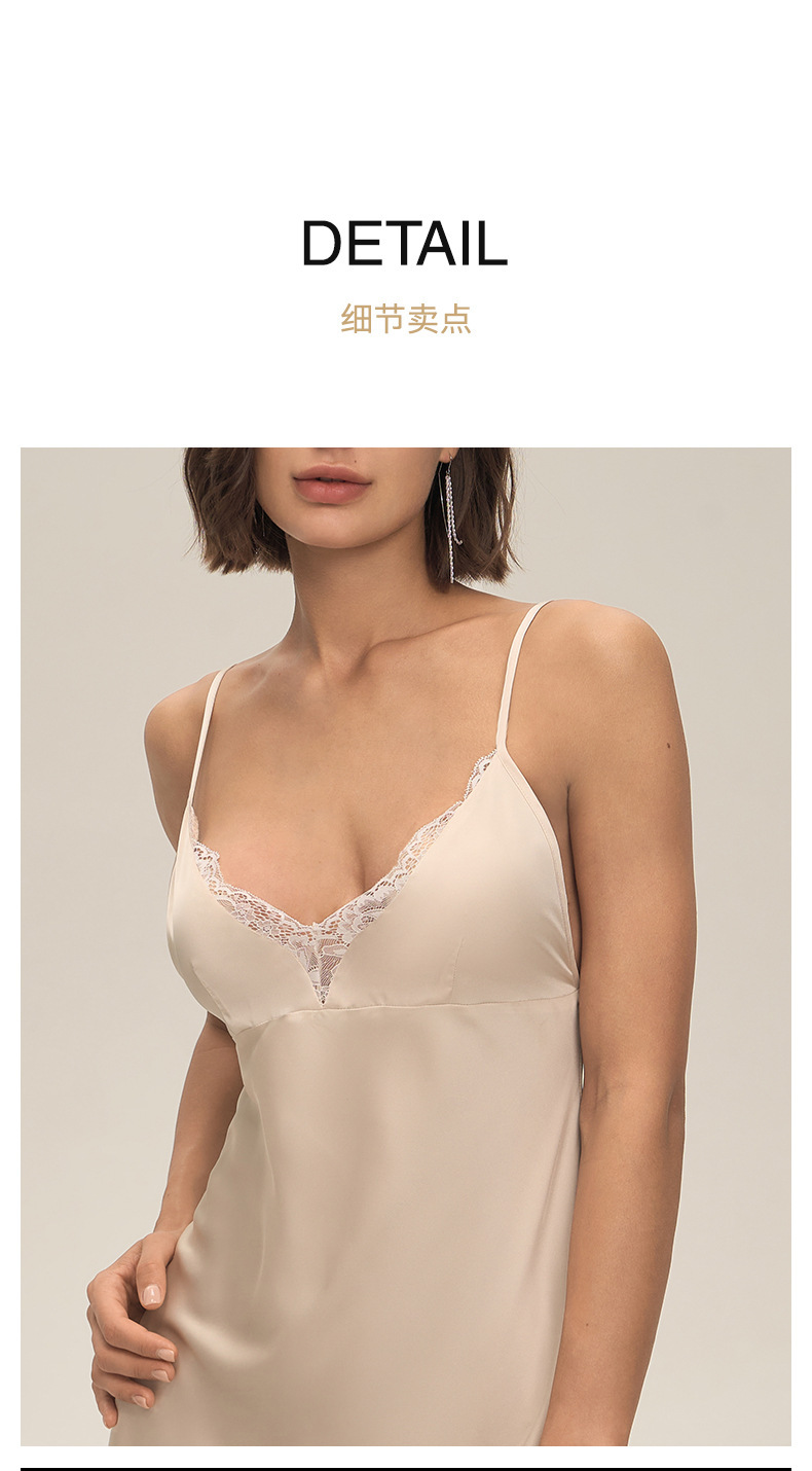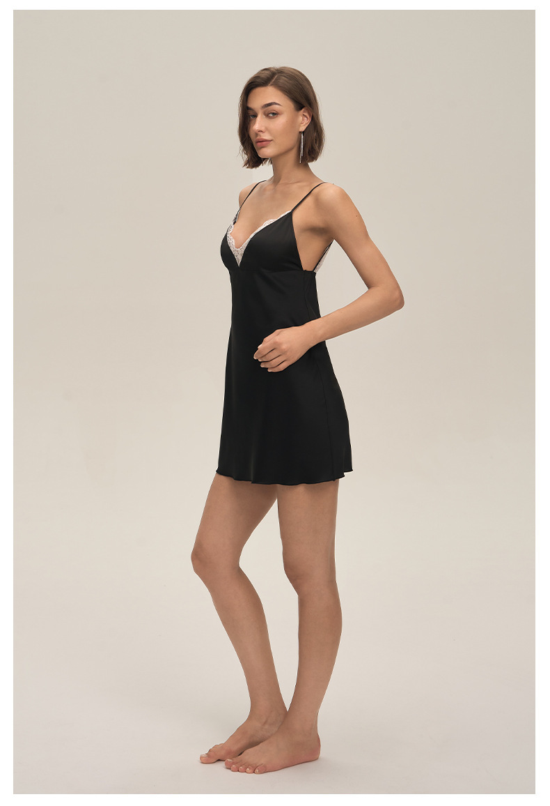 Europa y América transfronterizos nuevos encaje sexy satén chiffon esbelto vestido de dormir DQ3919