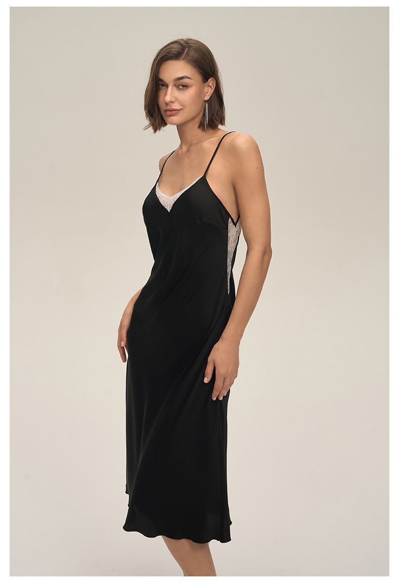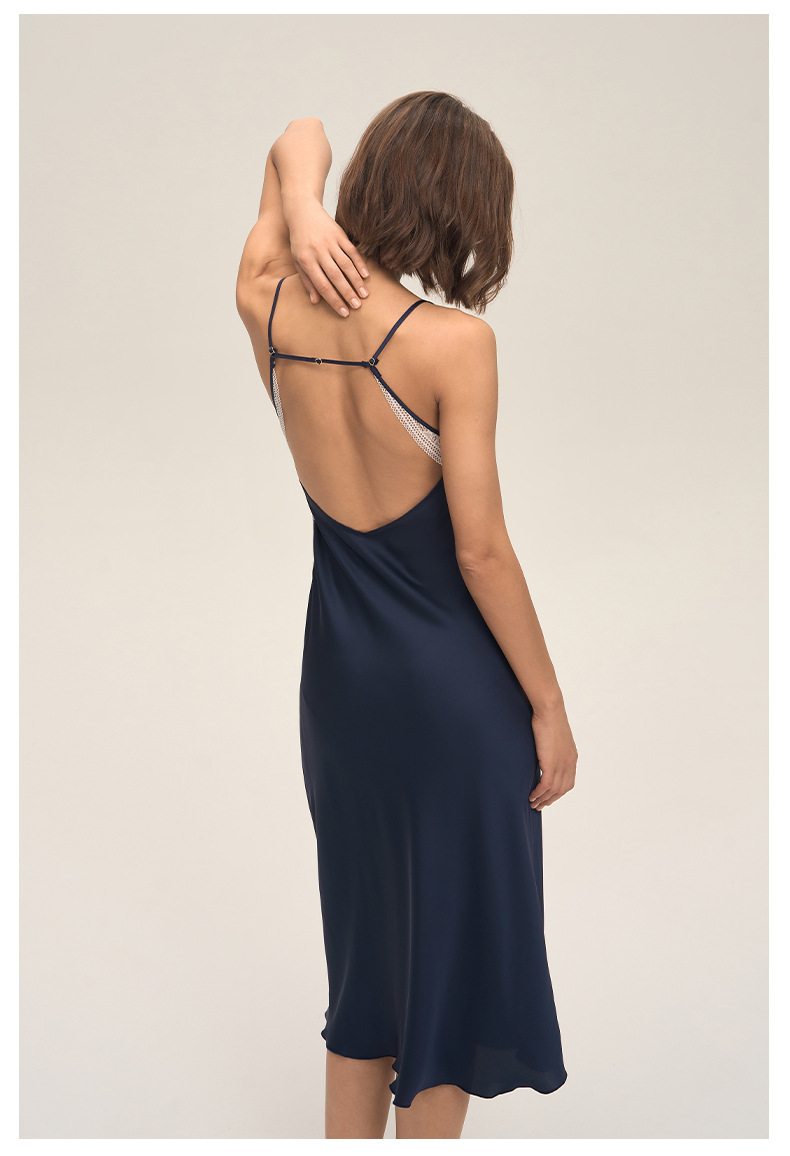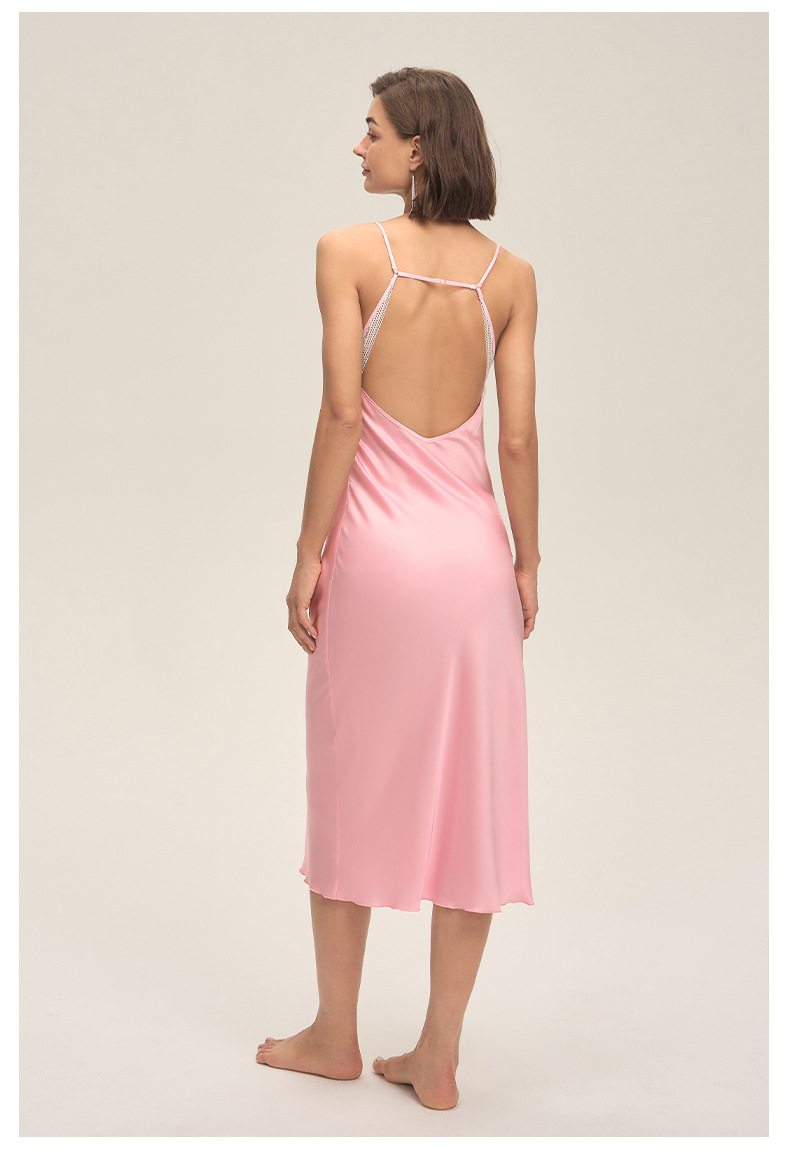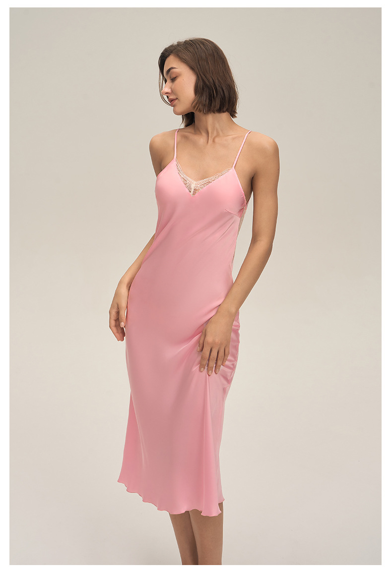 Amazon transfronterizo nuevo satén de chiffón de espalda de encaje vestido de dormir largo verano sexy ropa para el hogar CQ3923
