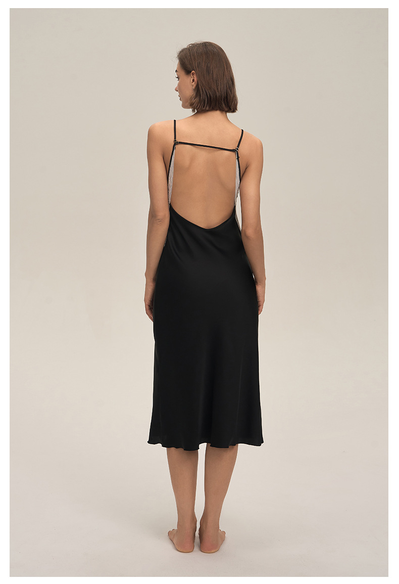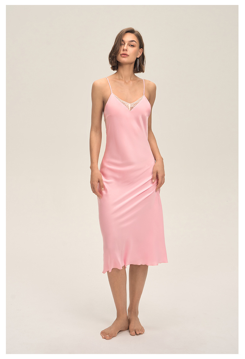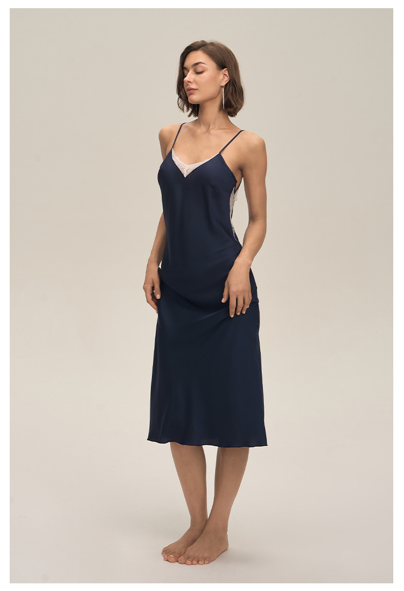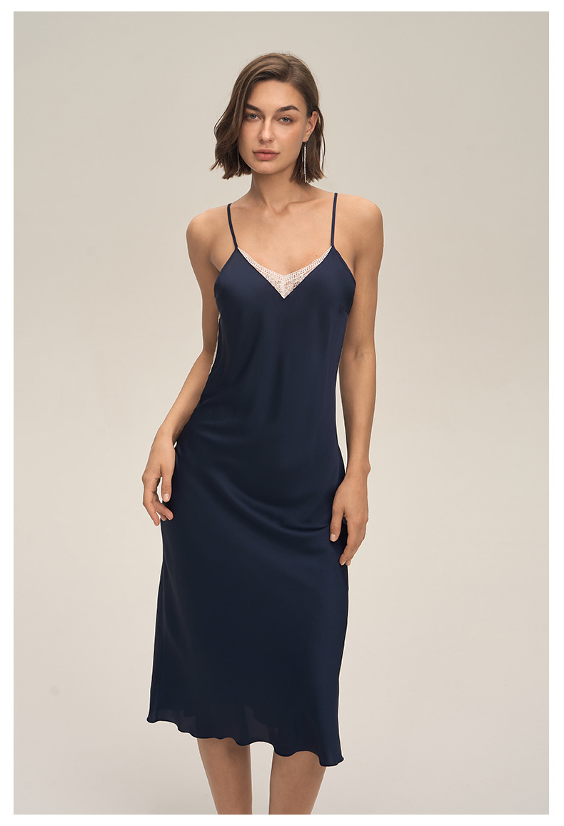 Amazon transfronterizo nuevo satén de chiffón de espalda de encaje vestido de dormir largo verano sexy ropa para el hogar CQ3923