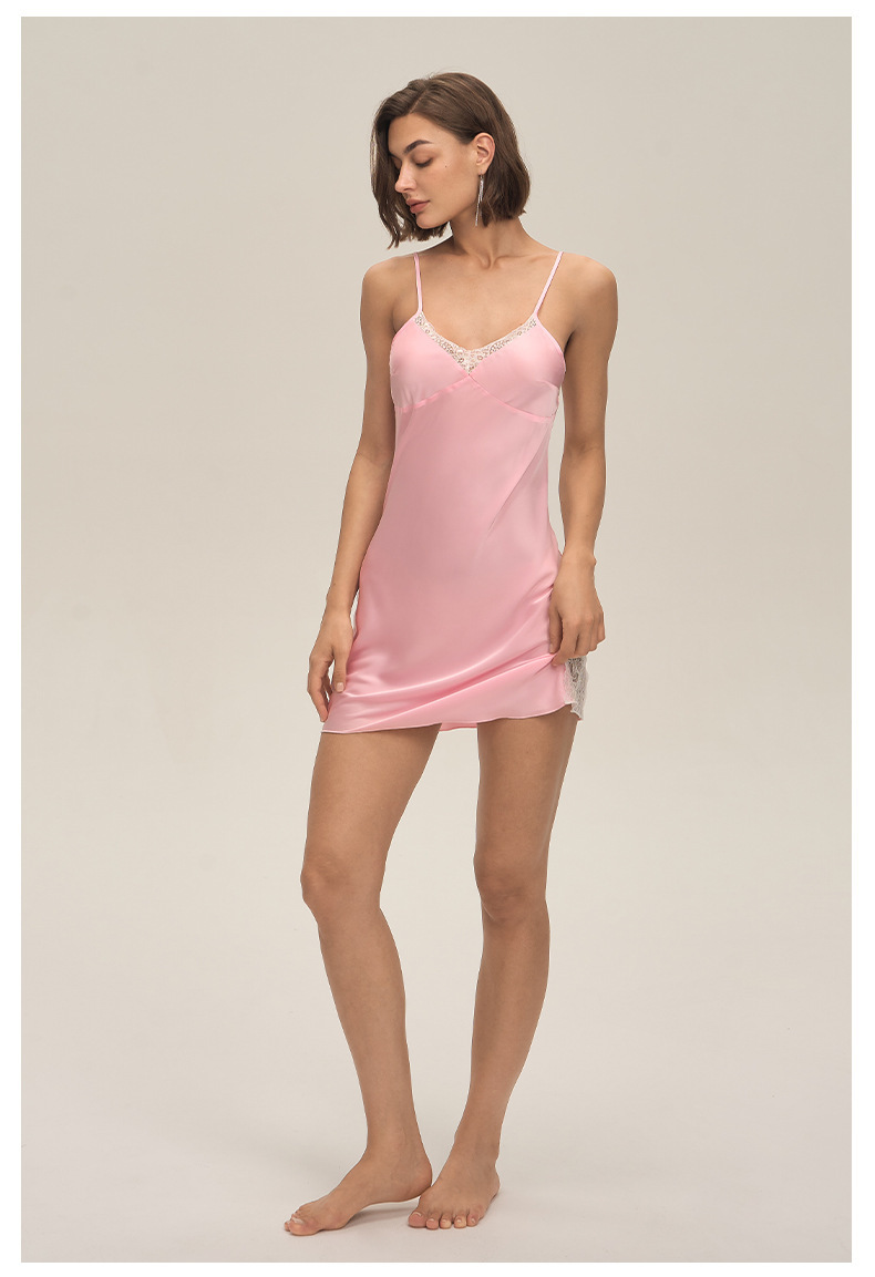 Nuevo comercio exterior de encaje de Europa y Estados Unidos sexy satén chiffon cabina de dormir ropa casera cómodo DQ3920