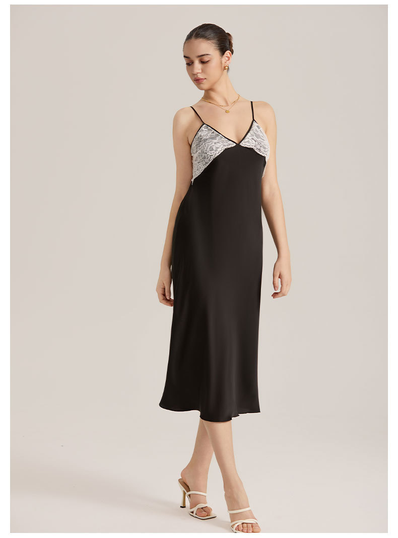 encaje de nuevo tipo de cabina de cabina larga, pijama de chiffón, pijama de espalda abierta sexy, ropa de casa de mujer CQ3915