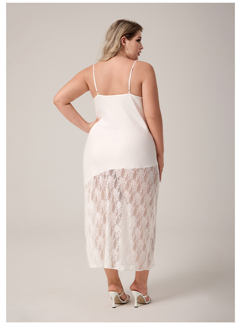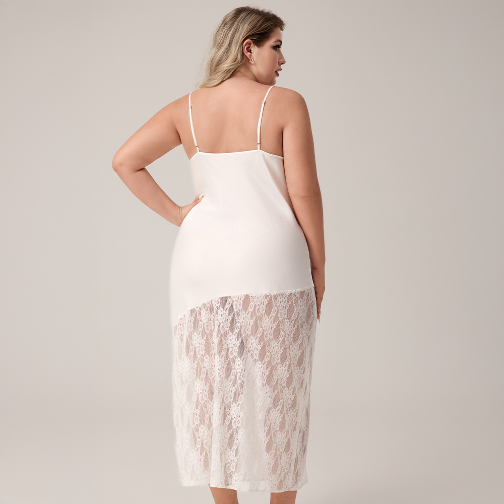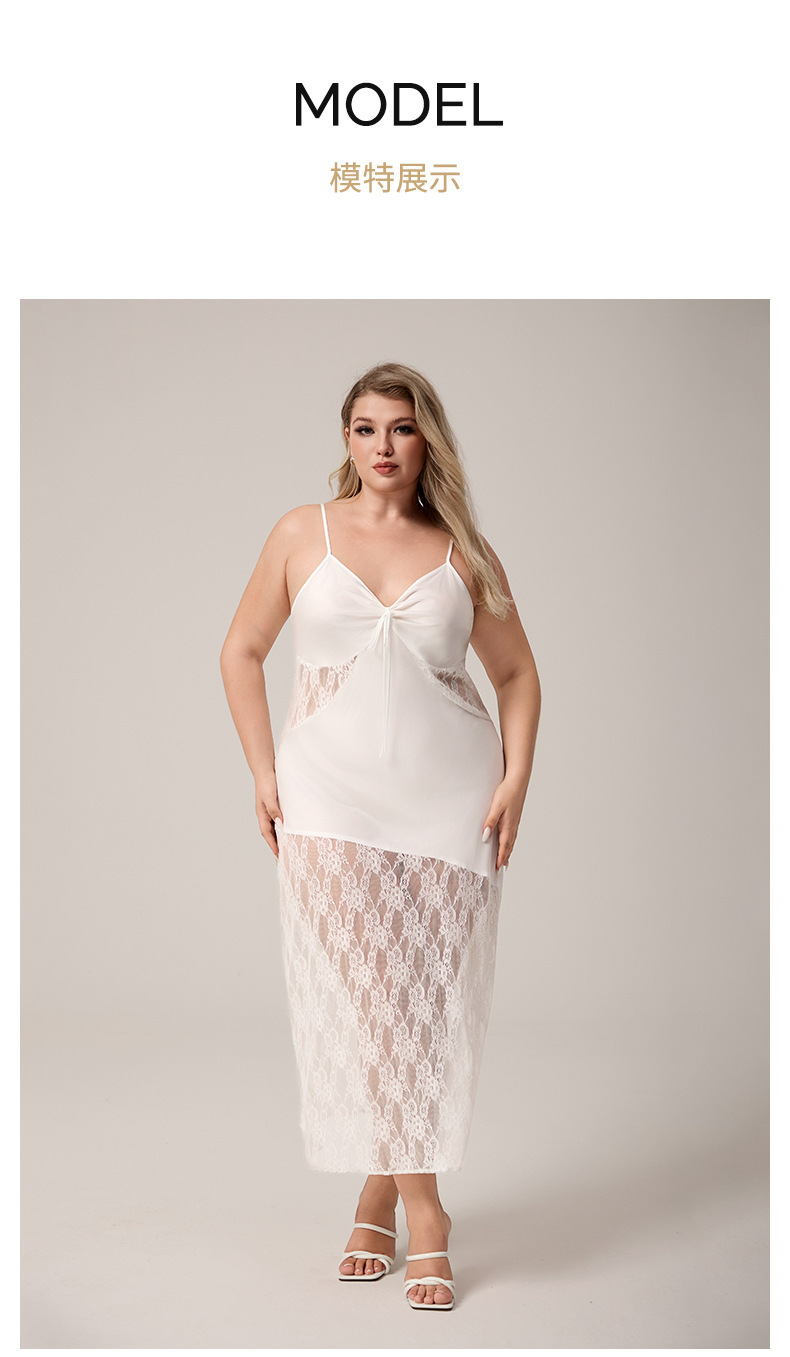 Yaoting nuevo pijama de seda de hielo de tamaño grande europeo y americano, encaje de empalme, vestido de pijama de mujer largo sexy SQ7004
